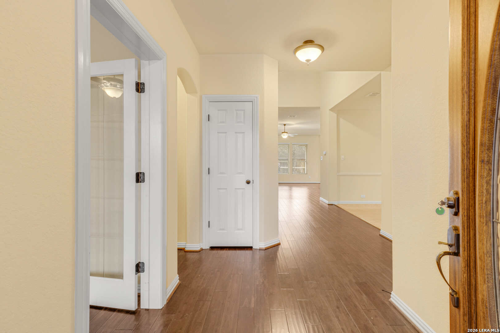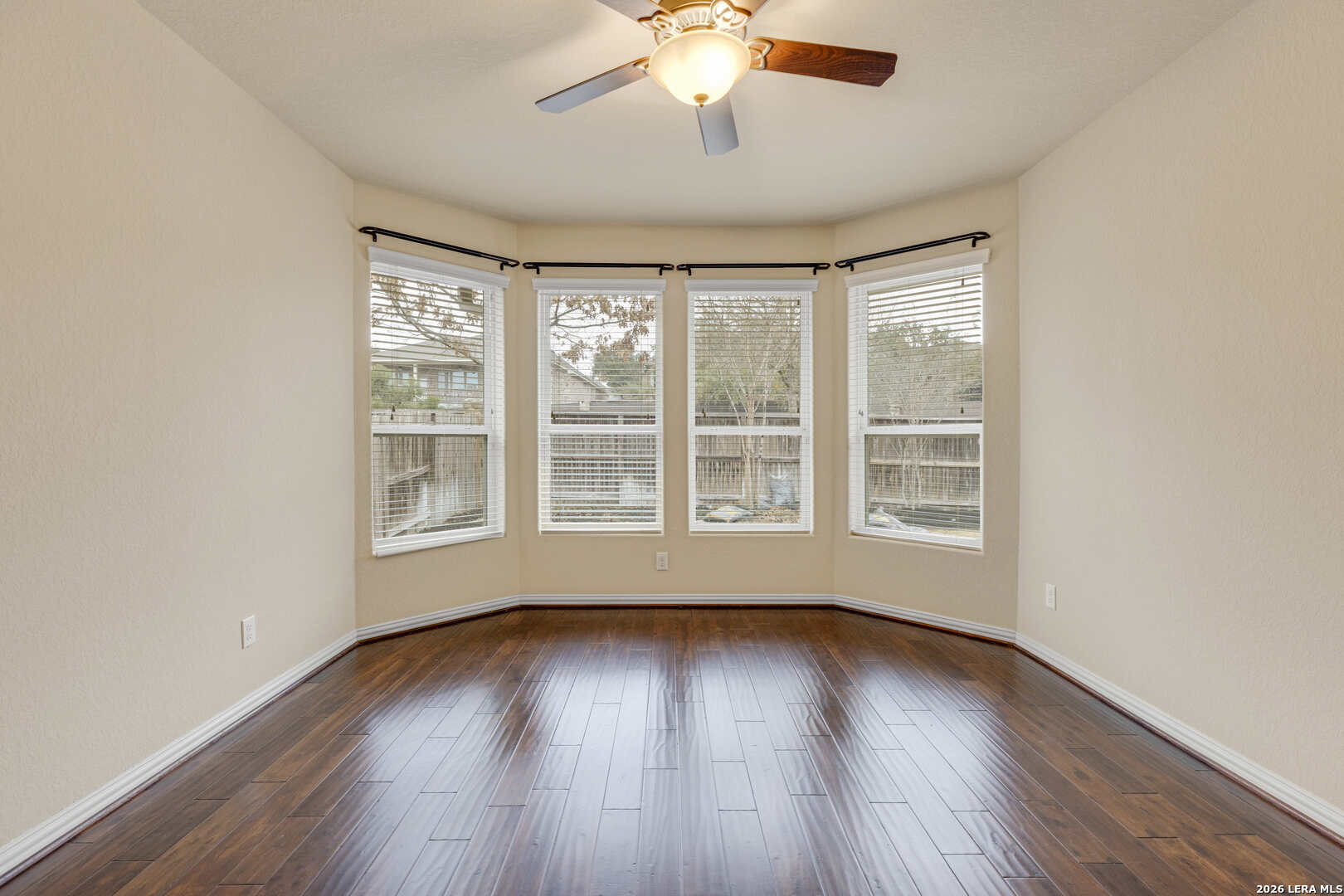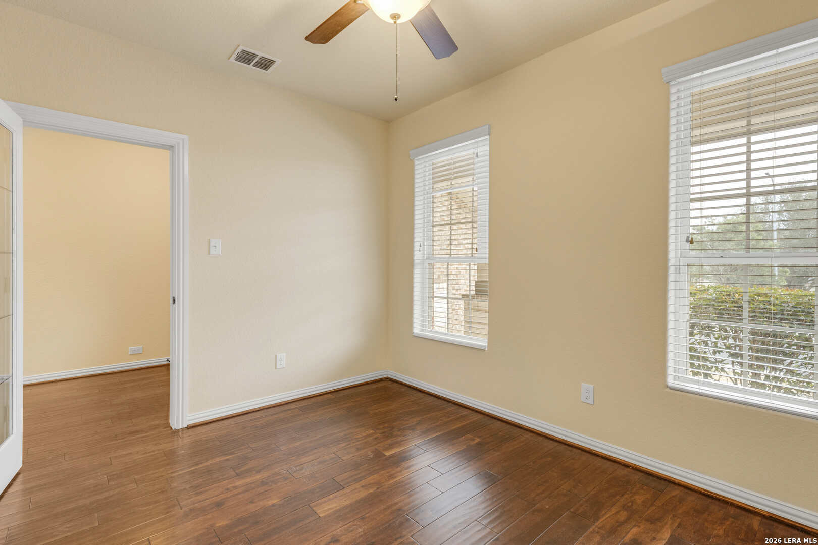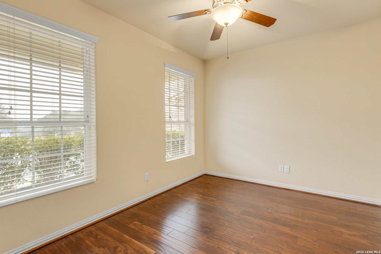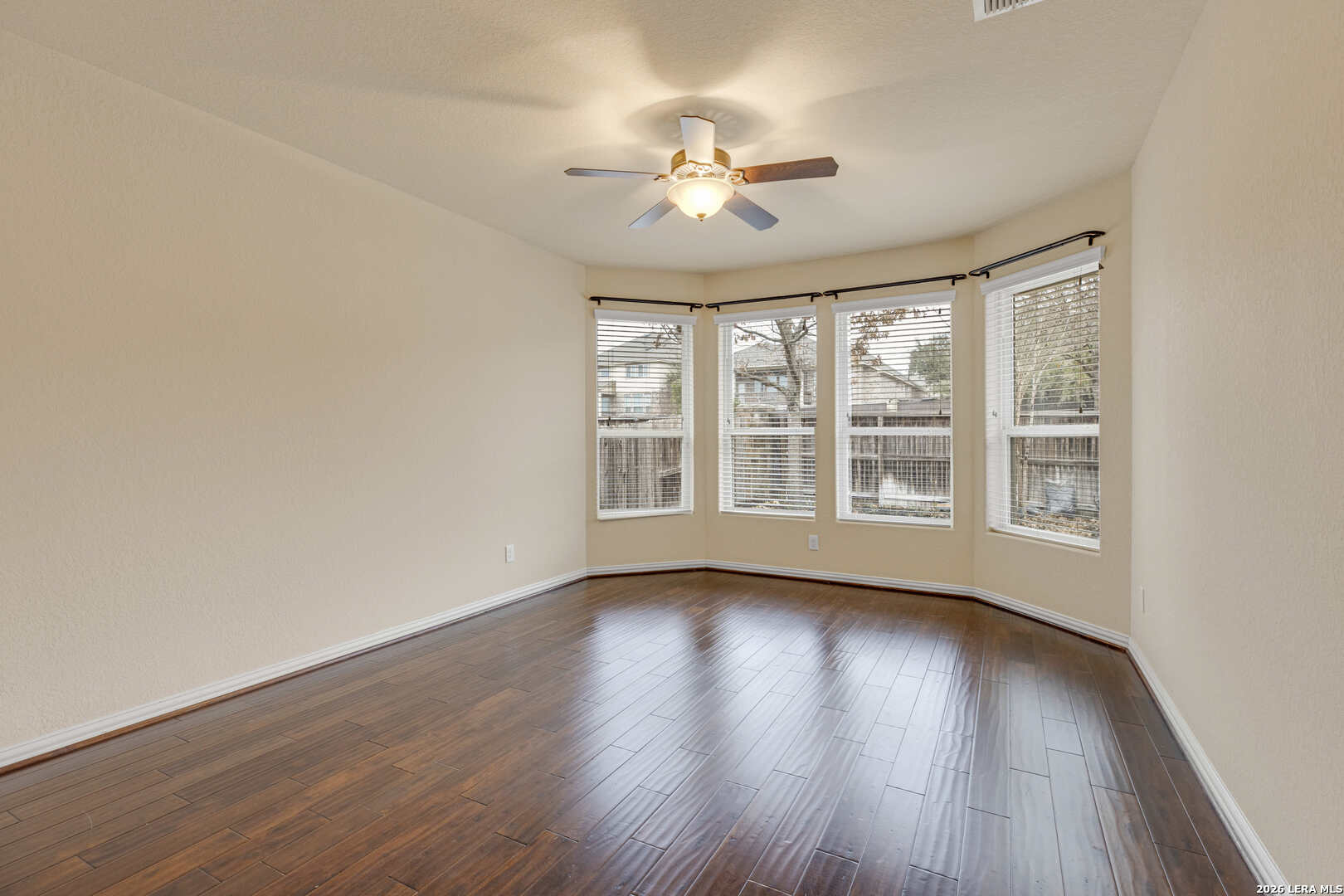 Prime Location, The Park at Two Creeks is Nestled in a serene, gated community just off Boerne Stage Road, this beautifully David Weekley home combines comfort, style, and unbeatable convenience. Located just minutes from The Shops at La Cantera, Six Flags Fiesta Texas, and a wide array of dining and entertainment options, this beautiful home is perfectly positioned for vibrant San Antonio living. Step inside to an open-concept layout with a soaring cathedral ceiling that's ideal for both daily living and entertaining. Enjoy a spacious kitchen featuring a large island, seamlessly flowing into an even more spacious living area. The primary suite, located on the main floor, includes a cozy owner's retreat-perfect for reading, working, or simply relaxing. Upstairs offers three additional bedrooms and a large flex space that can be used as a home office, media room, or game area to suit your lifestyle. Enjoy stunning views from the comfort of a covered porch at the top of a hill-ideal for morning coffee or evening relaxation. Efficient design is certified to use 1/3 less energy than comparable homes. A formal dining room provides versatility and can easily be converted into a second office or additional living area. The Central Air/Heat system is Zoned so you have a thermostat at both levels of the home which is very energy efficient. As a resident, you'll enjoy access to a private recreation center featuring a sparkling pool, playground, sports courts, and scenic hiking and biking trails that wind through the neighborhood. Aue Elementary is just a short walk from your front door. This home offers the best of both comfort and community in one of San Antonio's most sought-after neighborhoods.