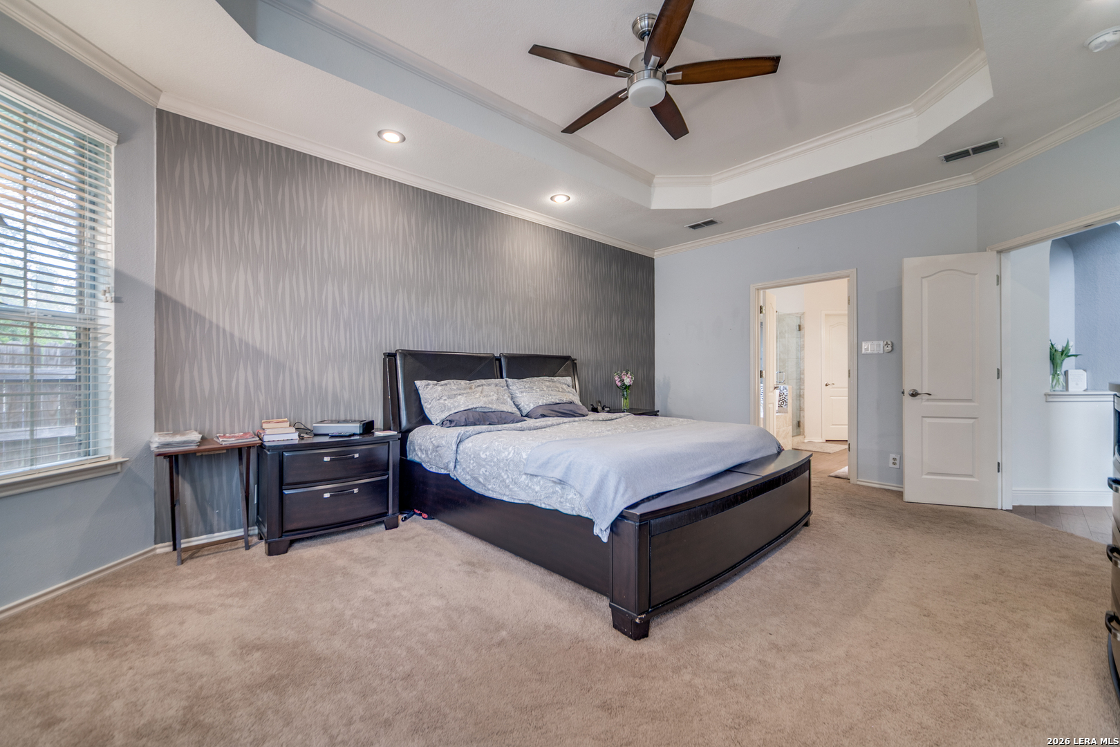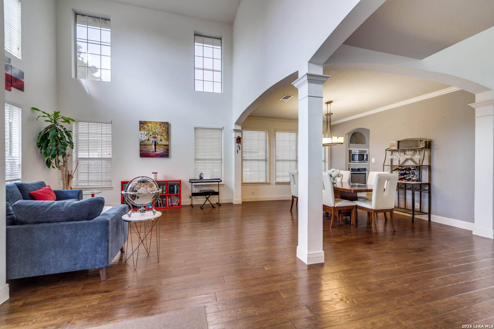 Welcome to 2519 Ox Eye Trail in the heart of San Antonio, nestled in the highly desirable gated community, Crosstimbers of Rogers Ranch. If you like to entertain, the space in this well appointed home makes it perfect for large gatherings. This spacious and thoughtfully designed home offers exceptional flexibility with two primary suites, perfect for multigenerational living or hosting long term guests in comfort. Downstairs is the primary master suite, two living areas, two dining areas, kitchen, half bath and a private office providing the ideal work from home setup. Upstairs, you will find the second master suite with an en suite bathroom, 3 additional secondary bedrooms, full bath and a large game room ready for movie nights, play space, or a second retreat. This game room has a closet and could be considered a 6th bedroom if needed. The home is equipped with a central vacuum system and sprinkler system, adding convenience and ease to daily living. The kitchen has granite countertops, stainless steel appliances and plenty of cabinet space. Residents of Rogers Ranch have access to outstanding neighborhood amenities including a community pool, tennis courts, and park, offering recreation just steps from your door. Centrally located with easy access to shopping, dining, highly acclaimed schools and major highways, this home truly combines comfort, functionality, and prime location. A rare opportunity to own a versatile, amenity rich home in one of San Antonio's most sought after communities.