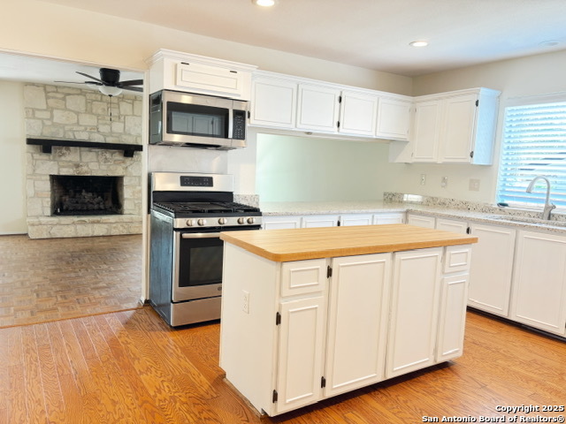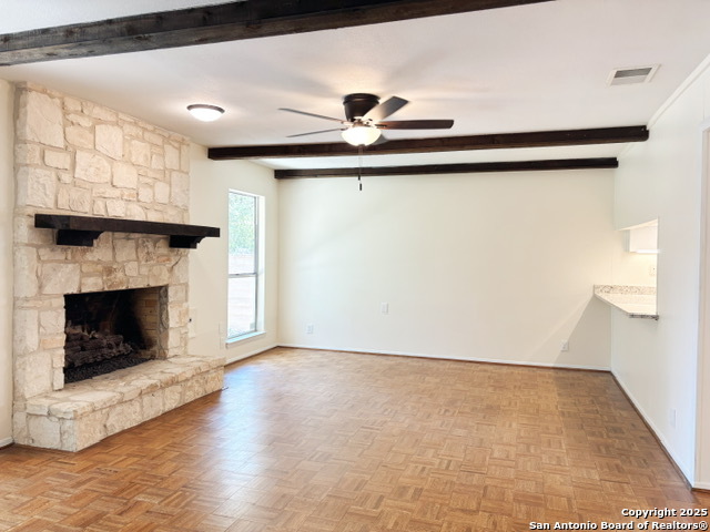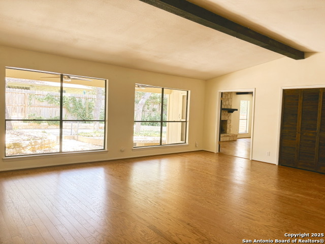 Newly UPDATED! Tucked beneath a canopy of mature trees, this 3-bedroom, 2-full and 2-half baths single-story home blends natural charm with city convenience. Featuring a metal roof, stone fireplace, new granite kitchen counter tops and no carpet throughout. The spacious circular driveway and front landscaping create strong curb appeal, but the true highlight lies in the serene backyard oasis. Featuring, thoughtfully designed landscaping and a tranquil water feature making the outdoor space a peaceful escape for morning coffee or evening gatherings. Inside, the living room centers around a stone fireplace, adding warmth and character to the heart of the home. The kitchen and bedrooms offer space and a layout that can adapt to your lifestyle. Enjoy a location that keeps you connected - just minutes from HEB, dining, parks, and major roads including 281, 1604, and Wurzbach Parkway. Whether you're searching for a peaceful place to unwind or a great neighborhood, this home offers the best of both. Create your perfect retreat in a prime San Antonio setting.