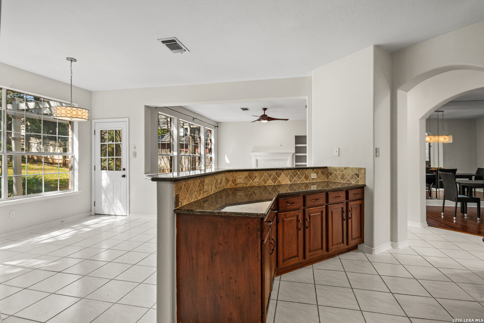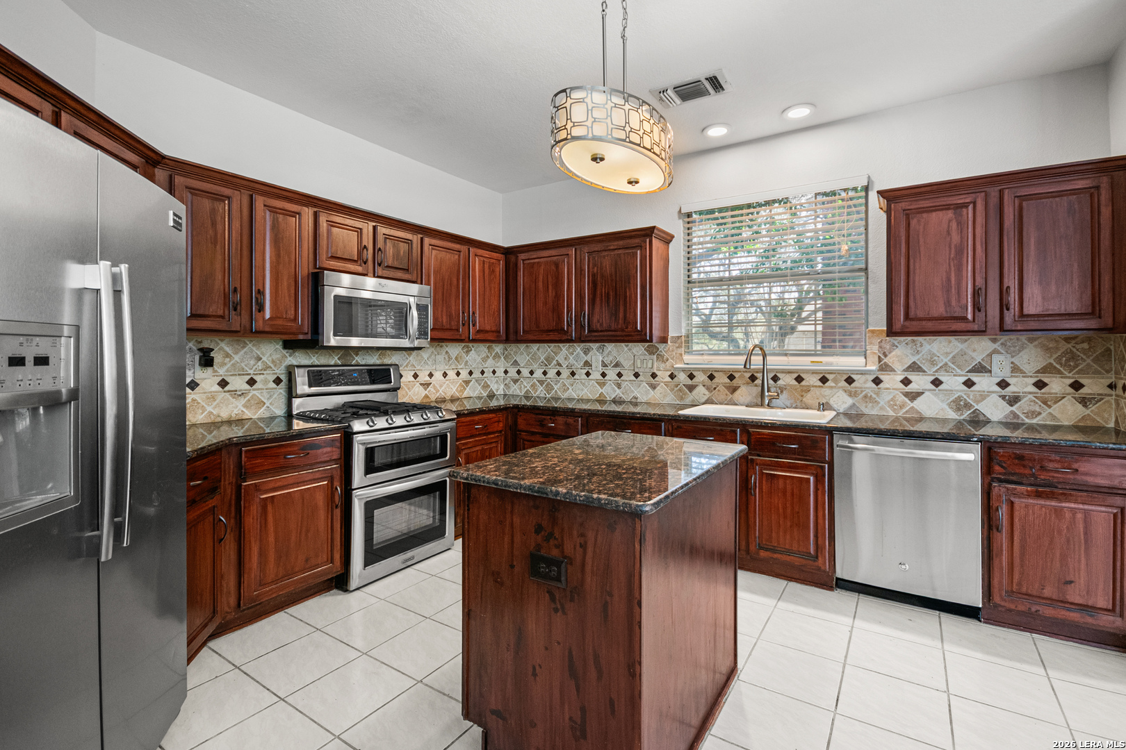 Located in the prestigious Summerfield community, this home offers 4 bedrooms and 3 full baths. The updated kitchen features refinished cabinetry, granite countertops, tumbled marble backsplash, gas cooking, and a center island. Hardwood floors highlight the main living areas, including the family room with fireplace and formal dining room. Downstairs bedroom with full bath. Upstairs includes a spacious loft living area. Enjoy gated HOA access to Hardberger Park walking trails and beautifully landscaped front and back yards with sprinkler system.