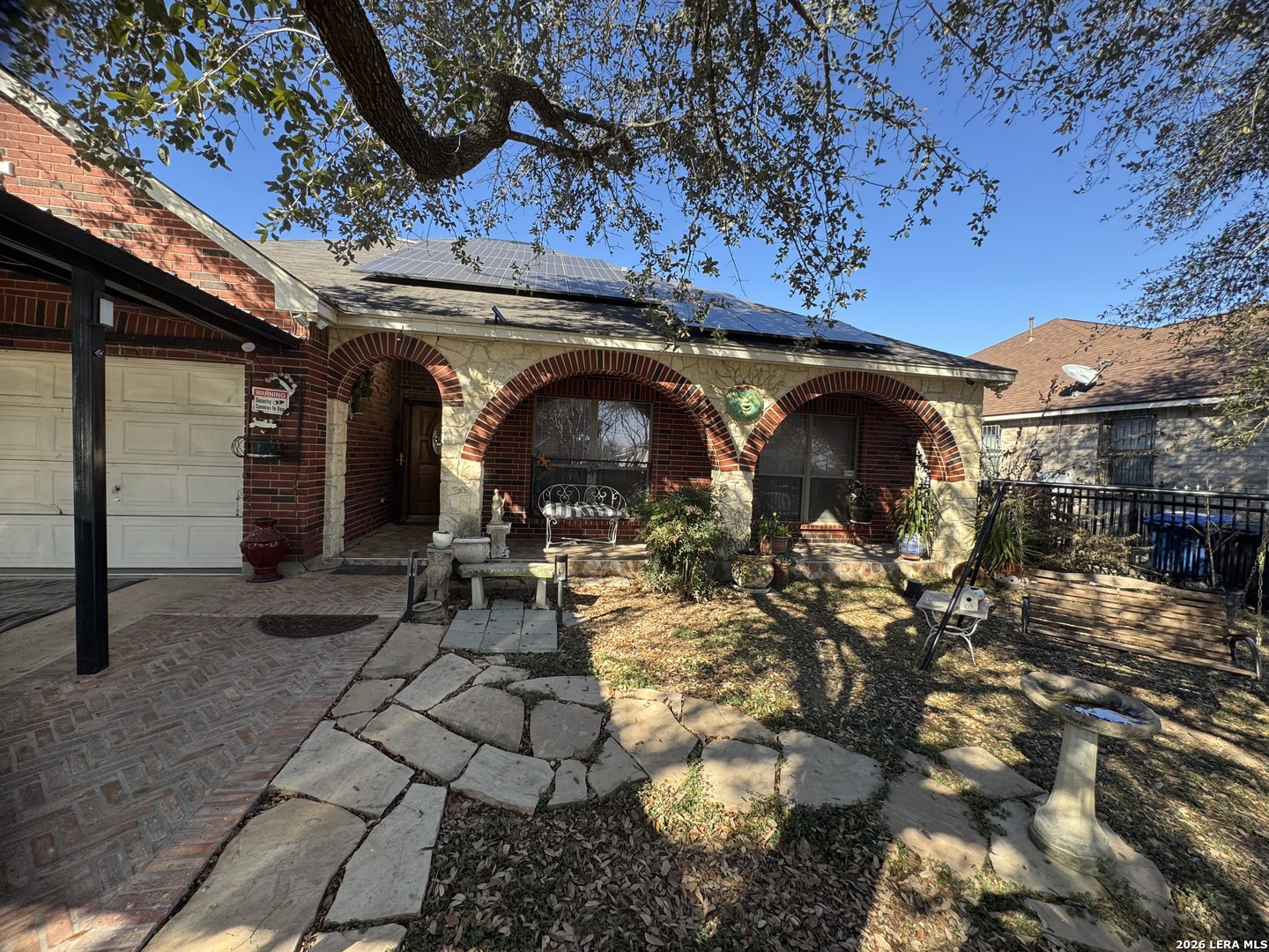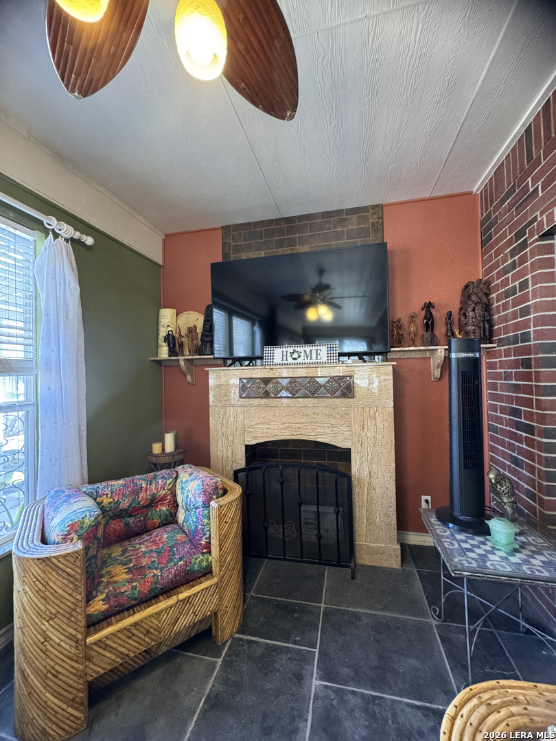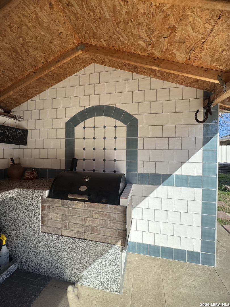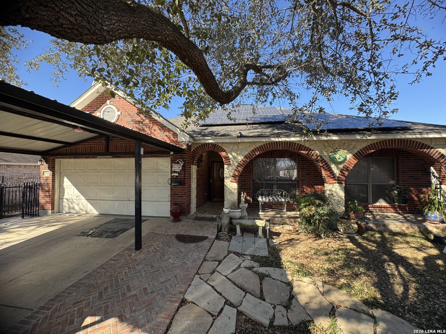 Discover this beautifully upgraded 3-bedroom, 2-bath home with a dedicated office, offering comfort, functionality, and exceptional value. The interior features numerous upgrades throughout, along with a spacious Florida room-perfect for relaxing evenings with family, complete with an electric fireplace for added ambiance. Recent improvements include a brand-new garage door and overhead garage door opener installed this month. The seller will also install a new roof with a 50-year transferable warranty upon execution of a new contract after the option period expires. Enjoy outdoor living at its best with a covered patio featuring built-in air, ideal for entertaining, along with an outdoor kitchen setup that includes a sink and BBQ/smoke pit. The property also offers a standalone barbecue area and two outdoor storage sheds for added convenience. Energy efficiency is a major plus - with 40 fully solar panels, helping significantly reduce electricity costs. Additional features include a two-car garage and a lighted metal roof carport, providing ample covered parking. Conveniently located near Downtown San Antonio and priced below market value, this property is a rare opportunity you don't want to miss!