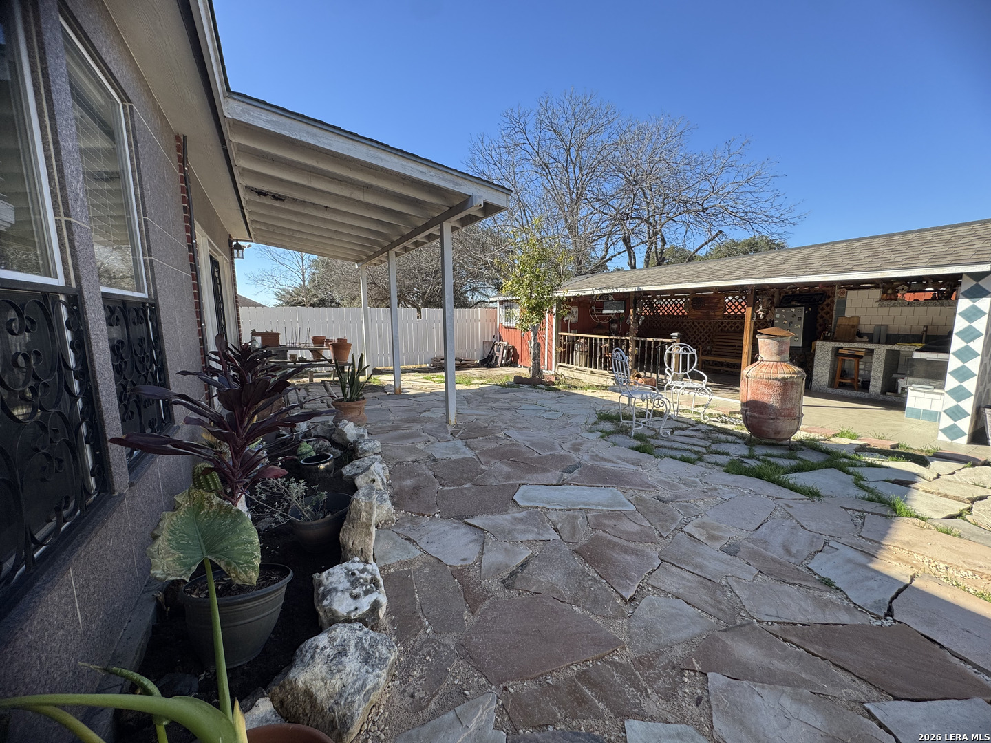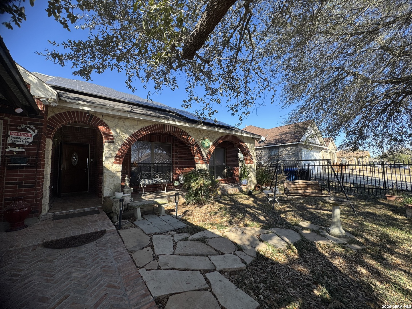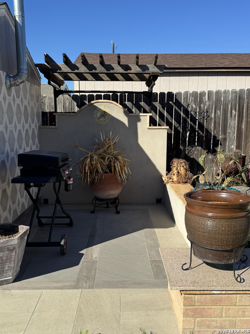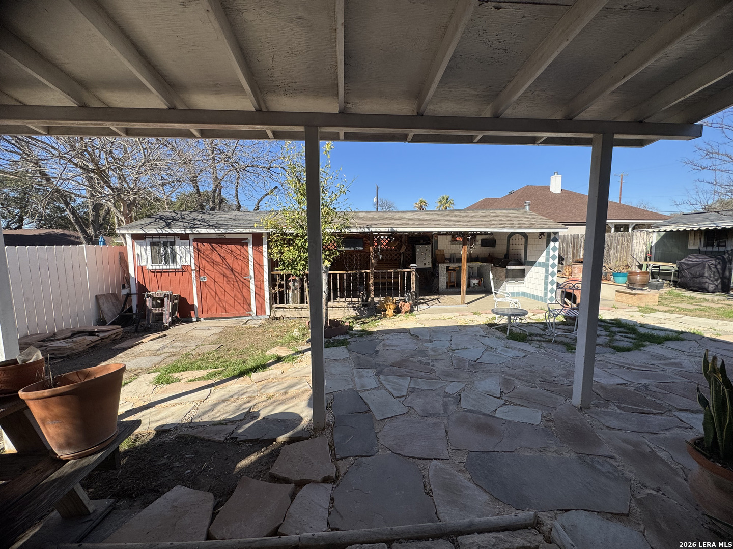 Discover this beautifully upgraded 3-bedroom, 2-bath home with a dedicated office, offering comfort, functionality, and exceptional value. The interior features numerous upgrades throughout, along with a spacious Florida room-perfect for relaxing evenings with family, complete with an electric fireplace for added ambiance. Recent improvements include a brand-new garage door and overhead garage door opener installed this month. The seller will also install a new roof with a 50-year transferable warranty upon execution of a new contract after the option period expires. Enjoy outdoor living at its best with a covered patio featuring built-in air, ideal for entertaining, along with an outdoor kitchen setup that includes a sink and BBQ/smoke pit. The property also offers a standalone barbecue area and two outdoor storage sheds for added convenience. Energy efficiency is a major plus - with 40 fully solar panels, helping significantly reduce electricity costs. Additional features include a two-car garage and a lighted metal roof carport, providing ample covered parking. Conveniently located near Downtown San Antonio and priced below market value, this property is a rare opportunity you don't want to miss!