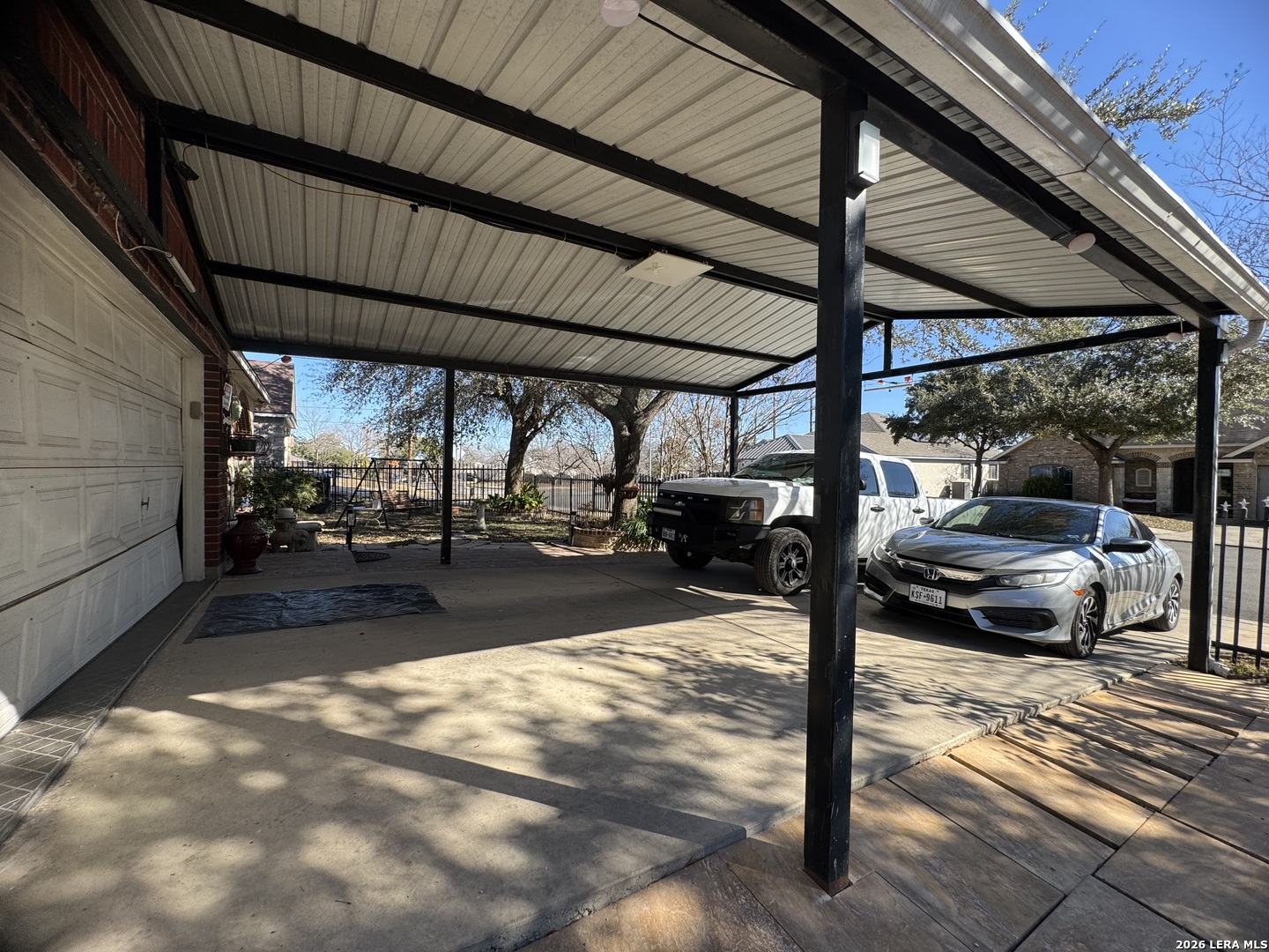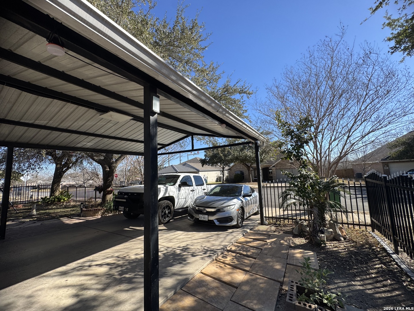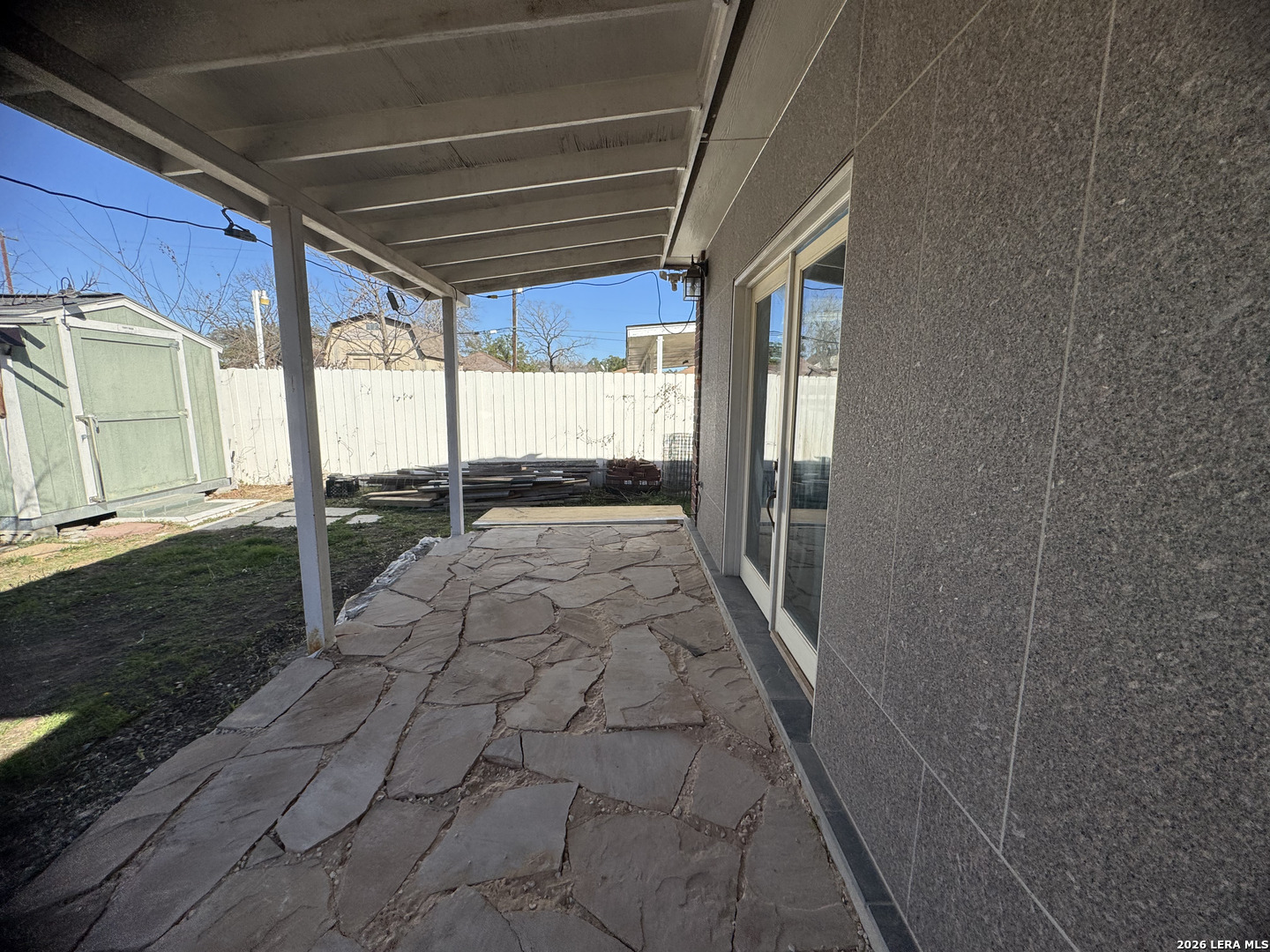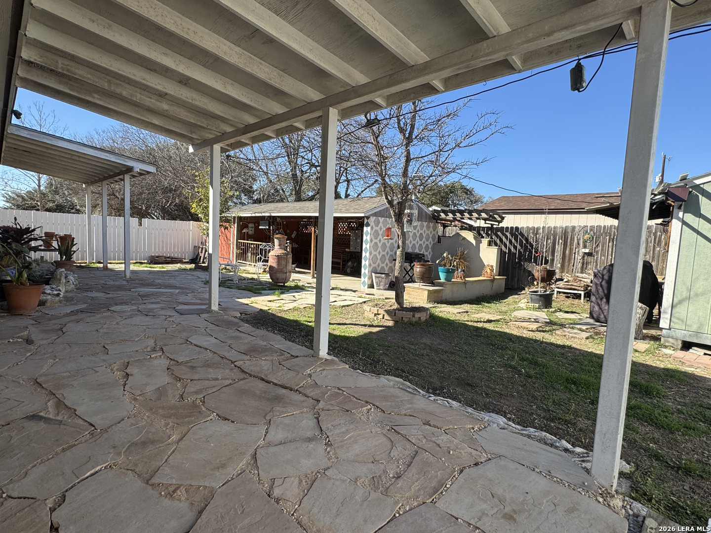 Discover this beautifully upgraded 3-bedroom, 2-bath home with a dedicated office, offering comfort, functionality, and exceptional value. The interior features numerous upgrades throughout, along with a spacious Florida room-perfect for relaxing evenings with family, complete with an electric fireplace for added ambiance. Recent improvements include a brand-new garage door and overhead garage door opener installed this month. The seller will also install a new roof with a 50-year transferable warranty upon execution of a new contract after the option period expires. Enjoy outdoor living at its best with a covered patio featuring built-in air, ideal for entertaining, along with an outdoor kitchen setup that includes a sink and BBQ/smoke pit. The property also offers a standalone barbecue area and two outdoor storage sheds for added convenience. Energy efficiency is a major plus - with 40 fully solar panels, helping significantly reduce electricity costs. Additional features include a two-car garage and a lighted metal roof carport, providing ample covered parking. Conveniently located near Downtown San Antonio and priced below market value, this property is a rare opportunity you don't want to miss!