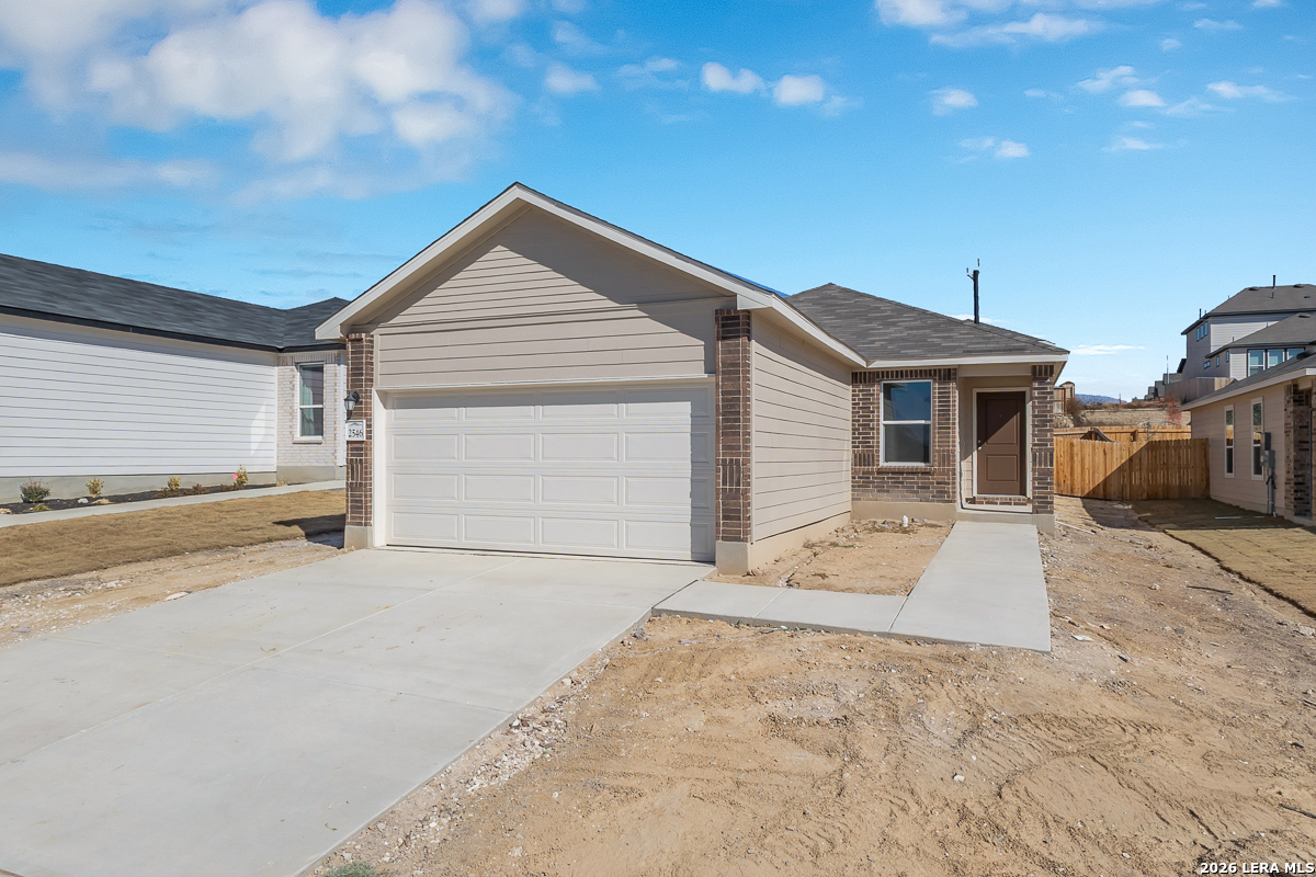 This inviting home features a bright, open-floor plan designed for comfortable everyday living and easy entertaining. The kitchen is equipped with Whirlpool stainless steel appliances, including a side-by-side refrigerator, Woodmont Cody 42-inch upper cabinets, and a stylish Daltile tile backsplash. The primary bath offers a raised vanity and a 42-inch garden tub/shower with a Daltile tile surround for a relaxing retreat. Decorative touches include a Carrara-style entry door, Kwikset Polo interior door hardware, and durable Stone Theory ceramic tile flooring throughout the bathrooms, kitchen, and great room. Additional highlights include a wireless security system. Outdoors, enjoy a fully sodded yard with an automatic sprinkler system, perfect for low-maintenance living.