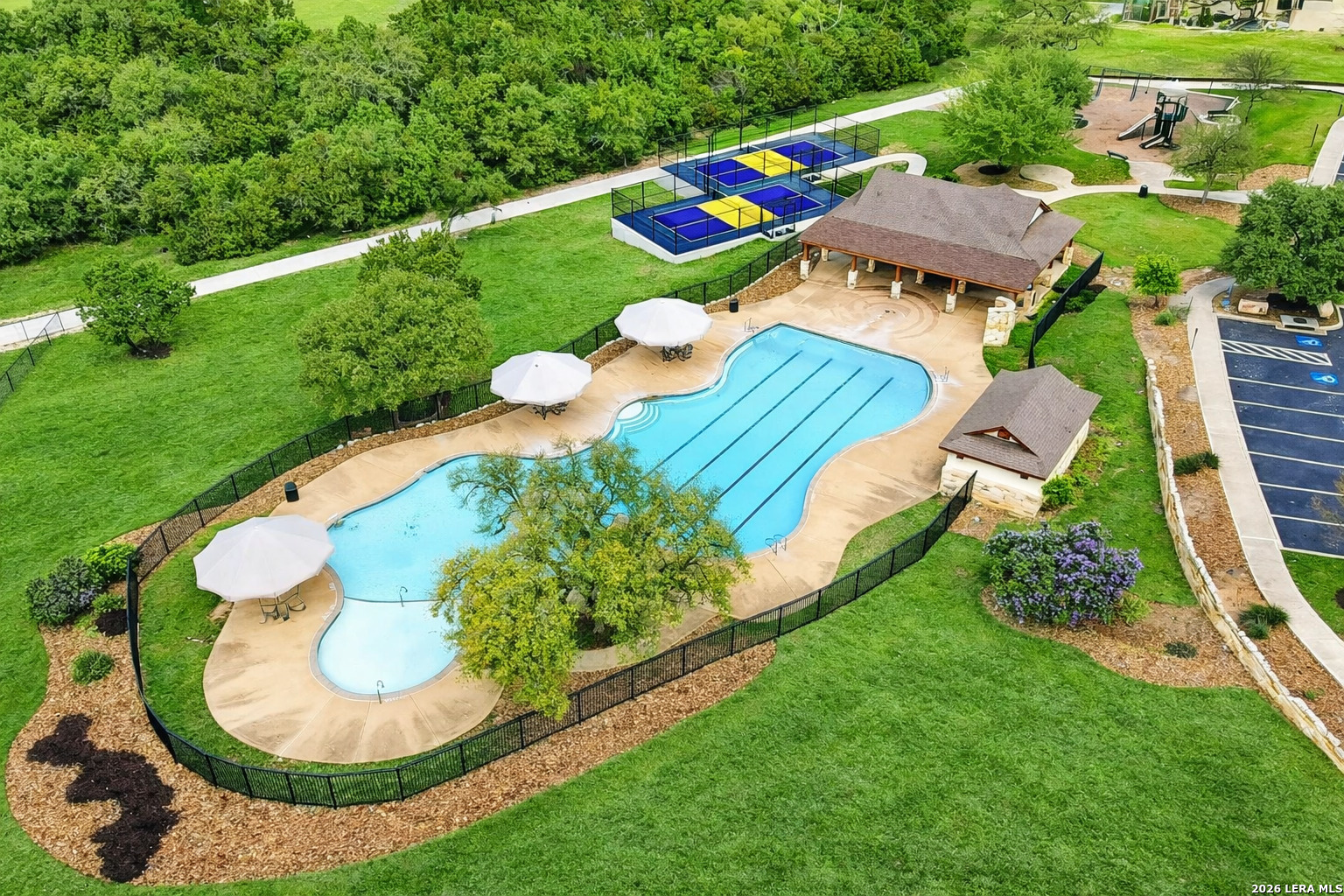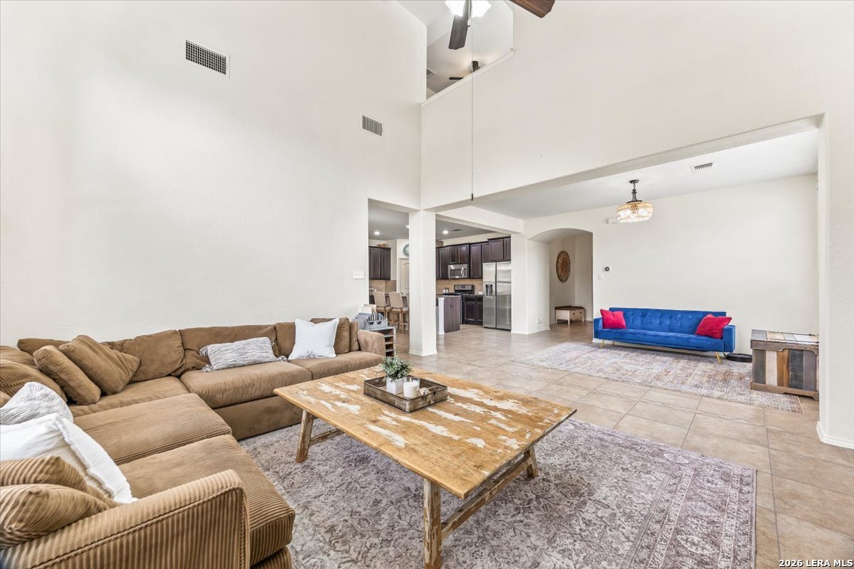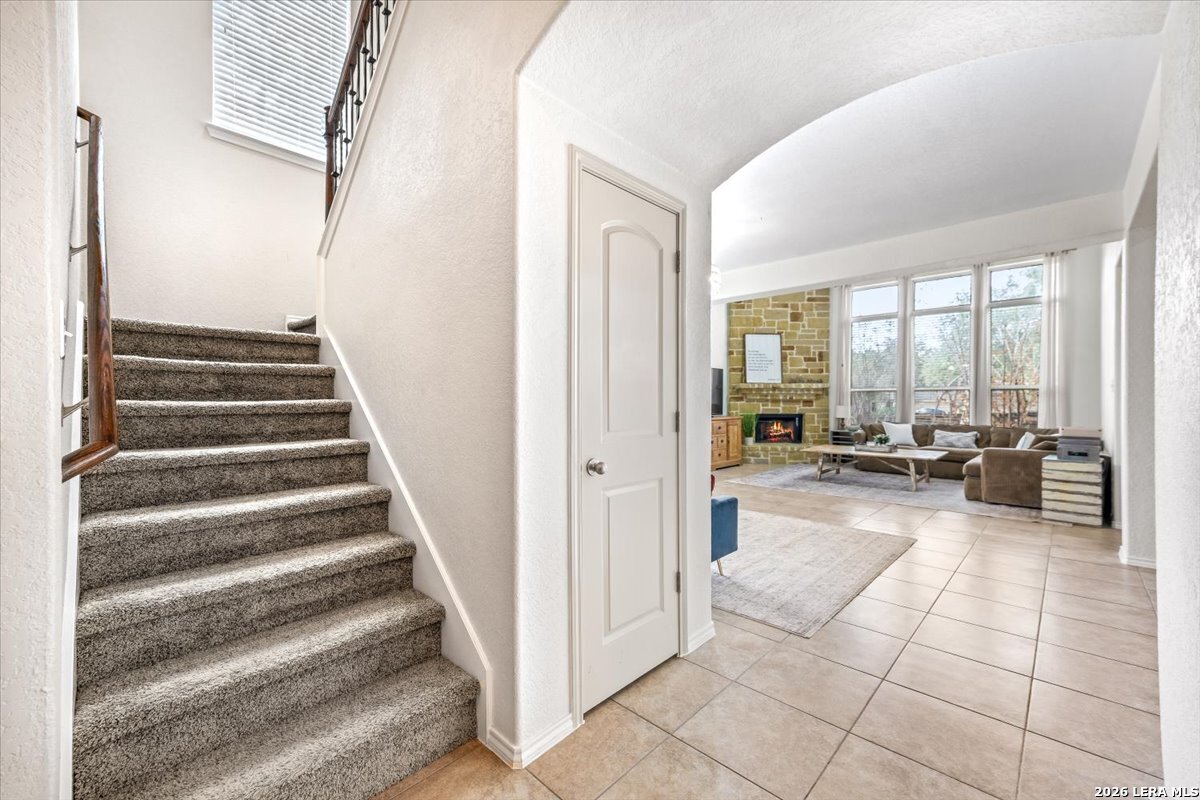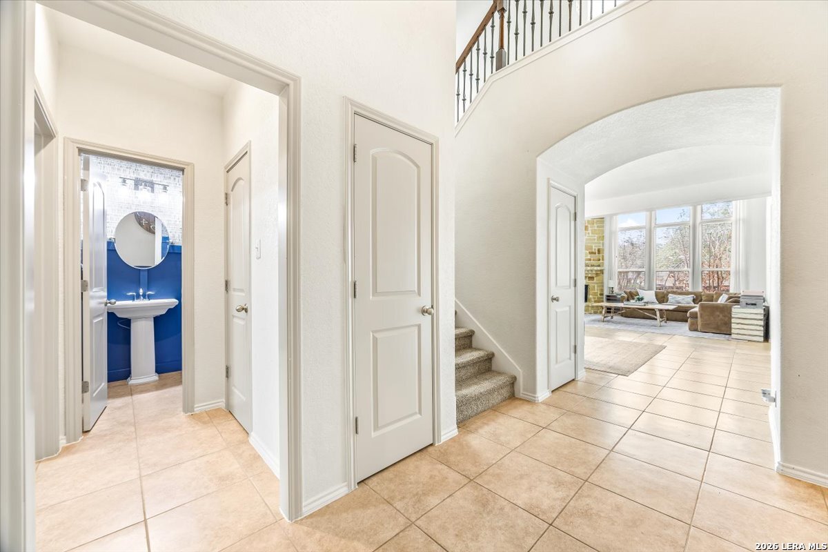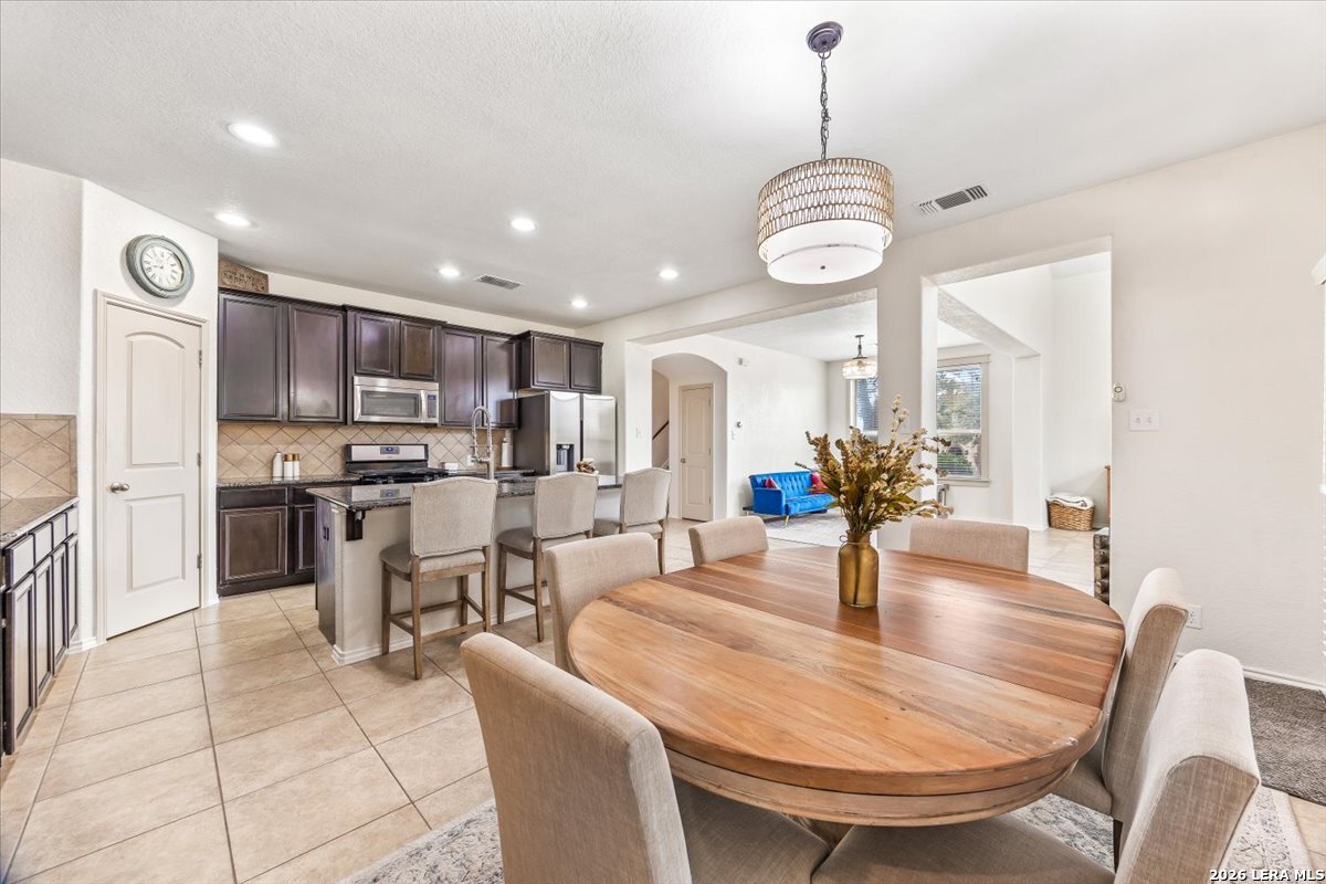 Welcome to 25511 Hopi Dawn! Situated on a spacious 1/4+ acre corner lot in the highly desirable front section of The Colony at Indian Springs, this impressive Highland Home of nearly 3,000 sqft features 4 bedrooms, 3.5 baths, a dedicated study with double French doors, a 3-car garage & pool. The thoughtfully designed open floor plan seamlessly connects the kitchen, breakfast nook, dining area, and living room, creating an ideal space for everyday living and entertaining. The kitchen boasts a large center island with bar seating, gas stove, abundant counter space, and generous storage, all overlooking the inviting living room with a beautiful stone fireplace. The downstairs primary suite is a private retreat with plentiful natural light, plush carpet, separate vanities, garden tub, separate shower, and a walk-in closet with custom built-ins. Upstairs features a spacious game room, three additional bedrooms, including one ensuite bath and a shared hall bath. Step outside to your private backyard oasis with a sparkling POOL, covered patio, additional arbor-covered patio space, and mature trees-perfect for relaxing or entertaining. Easy access to Bulverde Rd and Hwy 281 makes for convenient to shopping & dining and quick commutes. Residents enjoy outstanding Indian Springs amenities including pools, parks, playgrounds, walking trails, pickle ball courts, and dog parks. Come see what Hopi Dawn has to offer to make your San Antonio living the perfect fit for you!