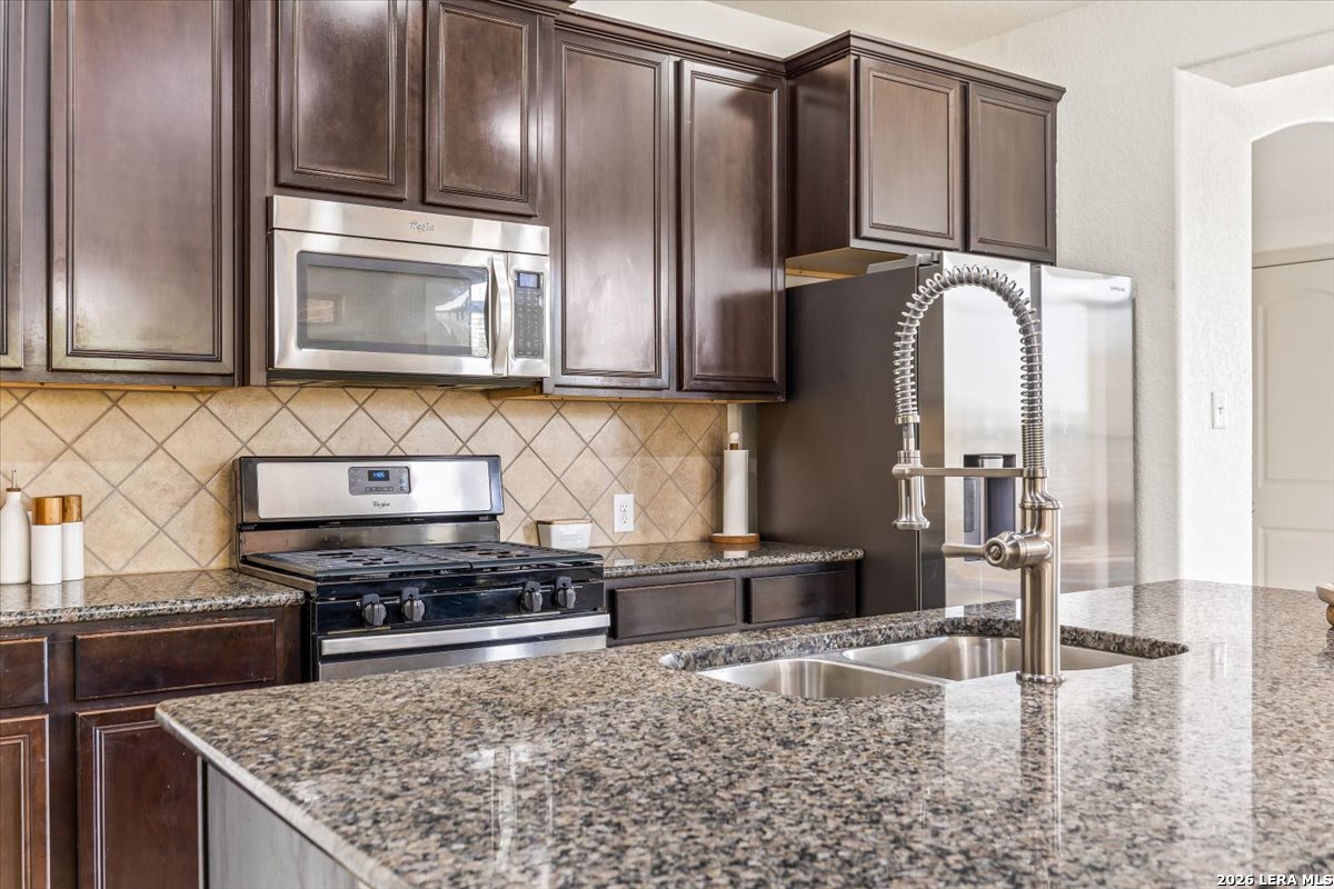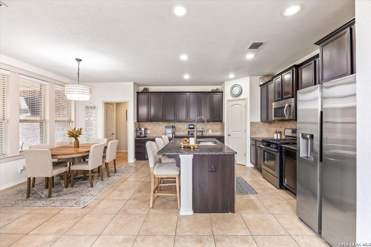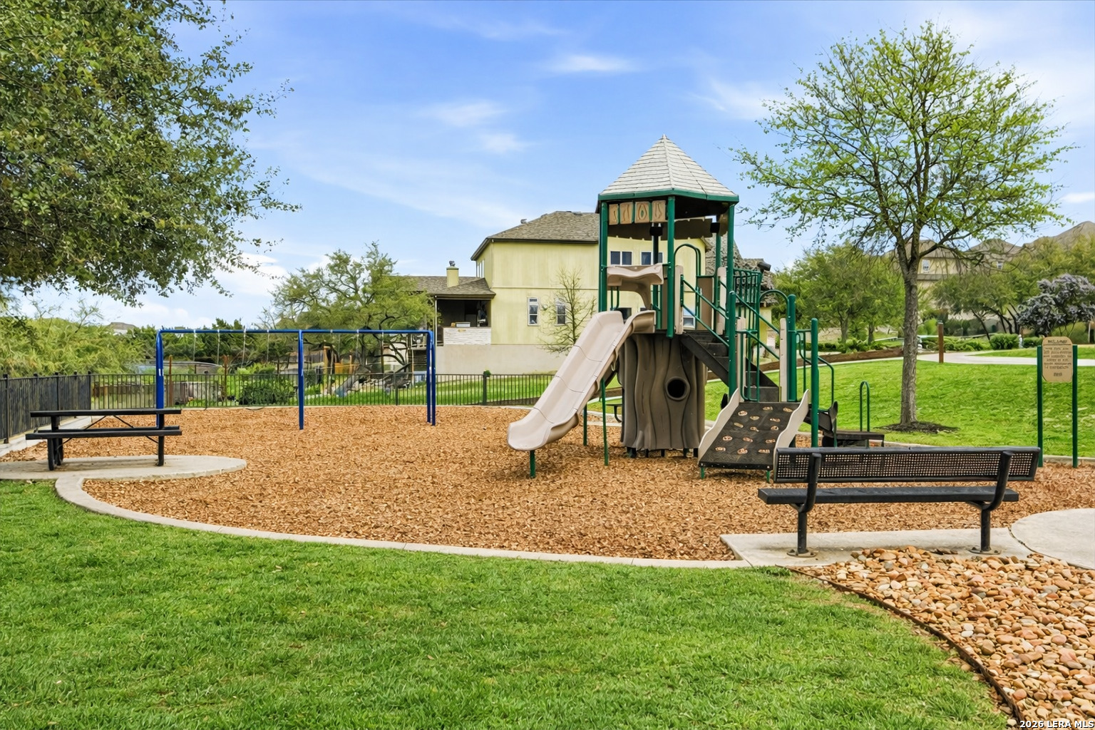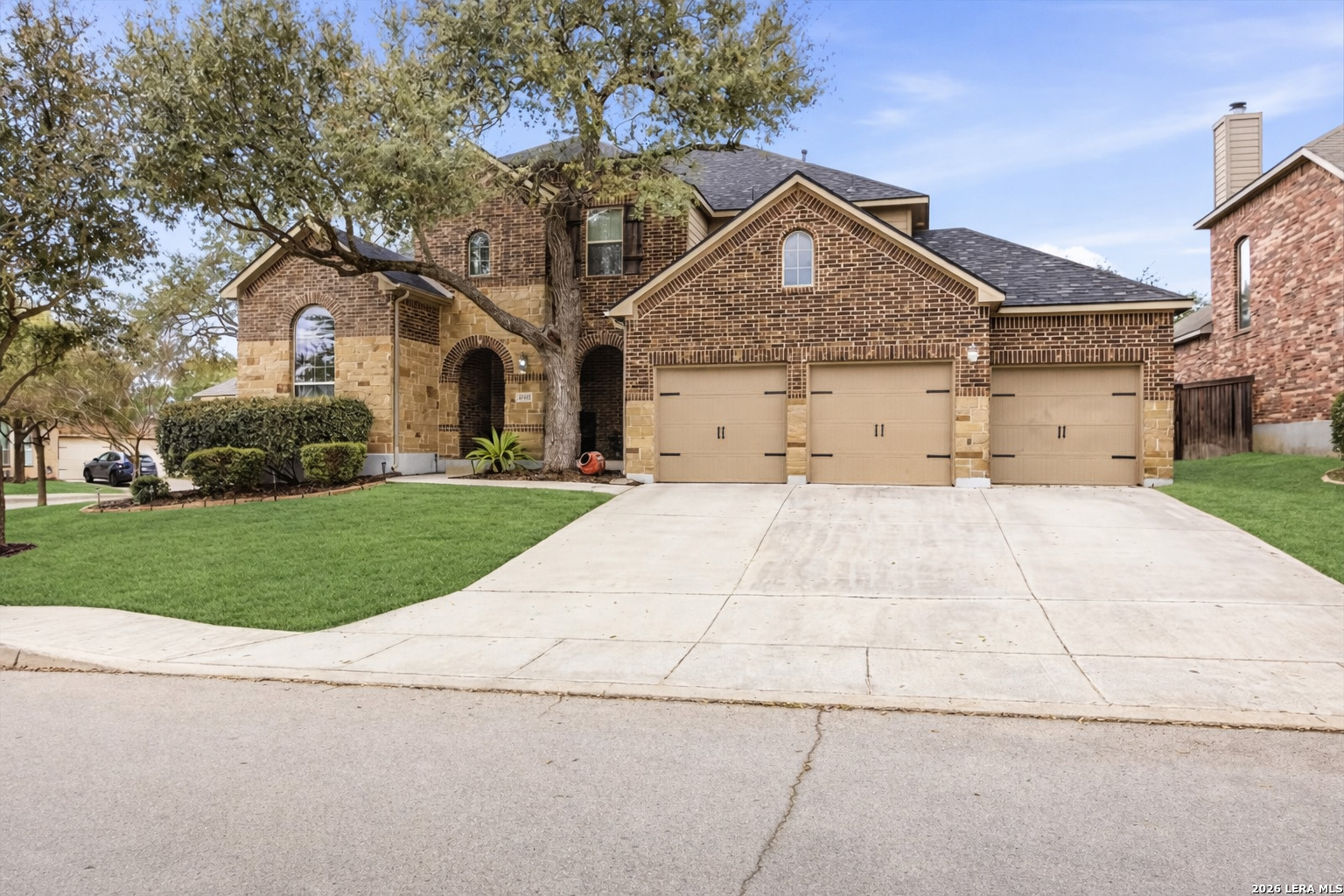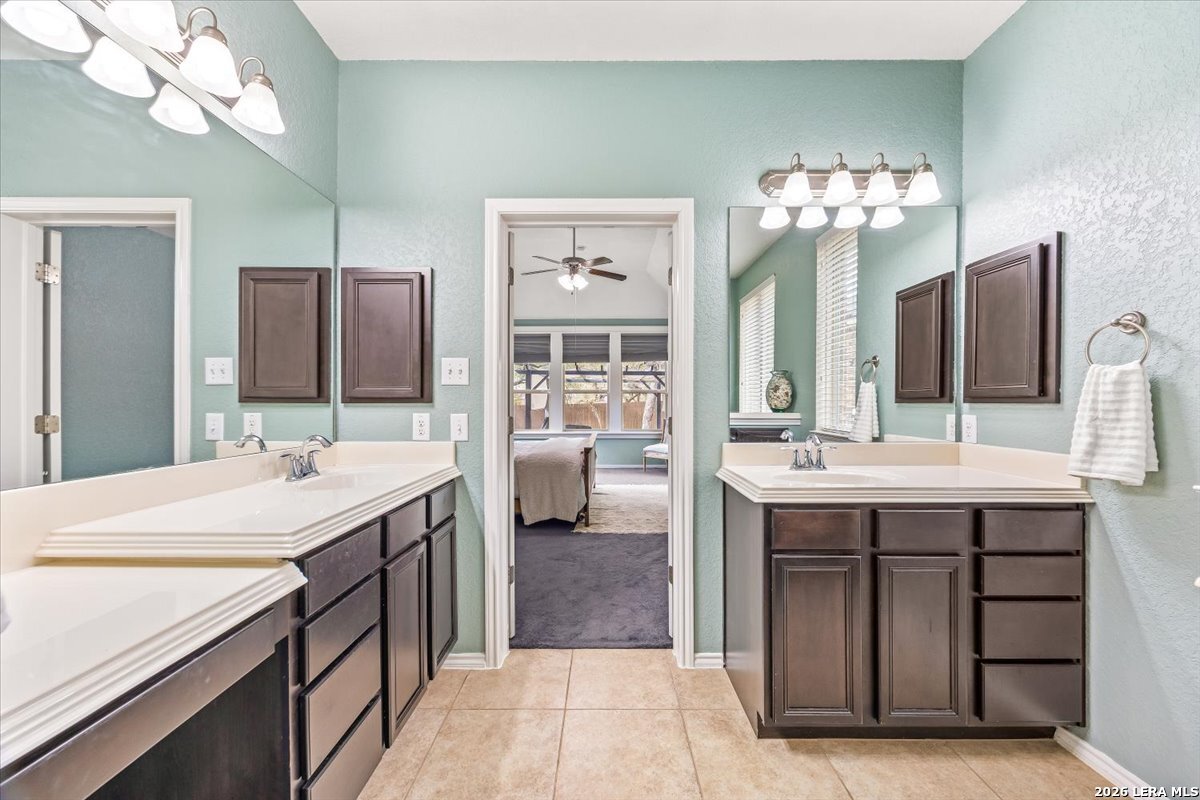 Welcome to 25511 Hopi Dawn! Situated on a spacious 1/4+ acre corner lot in the highly desirable front section of The Colony at Indian Springs, this impressive Highland Home of nearly 3,000 sqft features 4 bedrooms, 3.5 baths, a dedicated study with double French doors, a 3-car garage & pool. The thoughtfully designed open floor plan seamlessly connects the kitchen, breakfast nook, dining area, and living room, creating an ideal space for everyday living and entertaining. The kitchen boasts a large center island with bar seating, gas stove, abundant counter space, and generous storage, all overlooking the inviting living room with a beautiful stone fireplace. The downstairs primary suite is a private retreat with plentiful natural light, plush carpet, separate vanities, garden tub, separate shower, and a walk-in closet with custom built-ins. Upstairs features a spacious game room, three additional bedrooms, including one ensuite bath and a shared hall bath. Step outside to your private backyard oasis with a sparkling POOL, covered patio, additional arbor-covered patio space, and mature trees-perfect for relaxing or entertaining. Easy access to Bulverde Rd and Hwy 281 makes for convenient to shopping & dining and quick commutes. Residents enjoy outstanding Indian Springs amenities including pools, parks, playgrounds, walking trails, pickle ball courts, and dog parks. Come see what Hopi Dawn has to offer to make your San Antonio living the perfect fit for you!