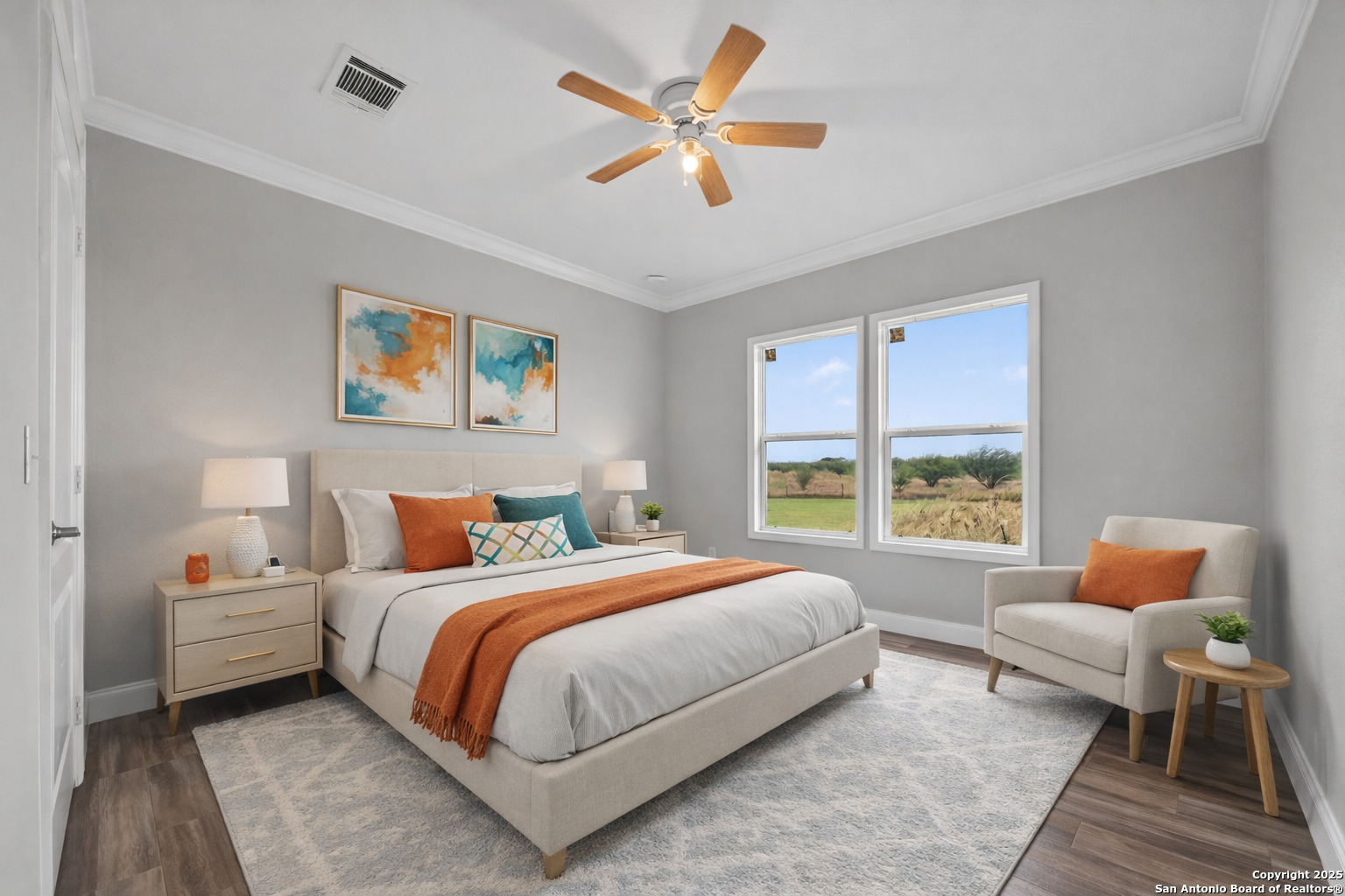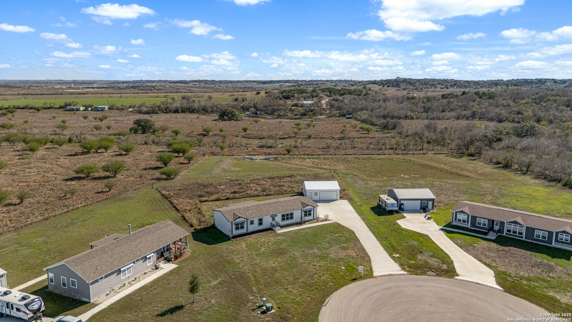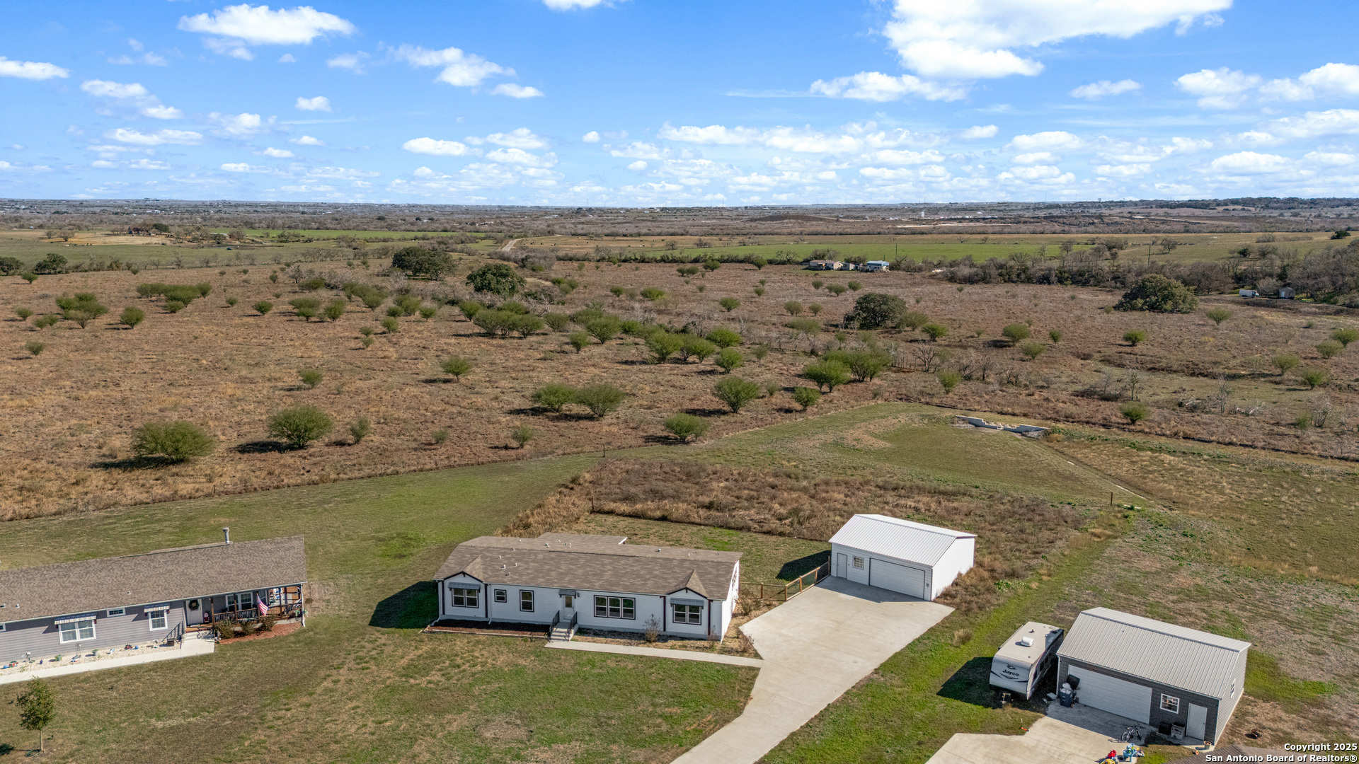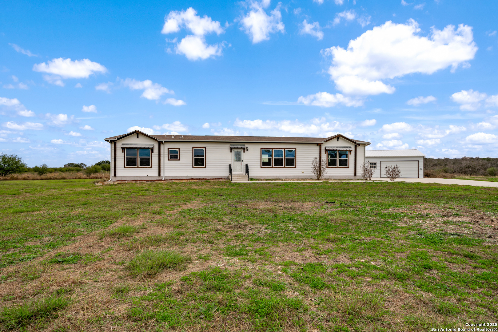 Built in 2022, this well-designed 2,190 sq ft modular home sits on a full 1-acre lot and offers a spacious, open layout with thoughtful separation of living spaces. Featuring 4 bedrooms and 2.5 baths, the home blends modern finishes with warm farmhouse-inspired accents throughout. The open-concept living area is anchored by an electric fireplace, creating a comfortable and inviting focal point. The living space flows seamlessly into the kitchen and dining area, ideal for both everyday living and entertaining. The kitchen features a large island, generous cabinetry, pantry storage, and clean, modern finishes. The primary suite is privately positioned away from the secondary bedrooms, offering a true retreat with a walk-in closet and a well-appointed en suite bath. Secondary bedrooms are well sized and versatile, suitable for guests, home office space, or multi-generational living. Additional highlights include a dedicated laundry room with utility sink, excellent storage, and abundant natural light throughout the home. A standout feature of the property is the detached 30x30 garage/workshop, equipped with electricity and water, making it ideal for hobbies, equipment storage, a home-based business, or future customization. With open space, modern construction, and functional outbuildings, this property offers the flexibility and privacy of country living with the comforts of a contemporary home. Ideally located near I-35, shopping, and a new Costco, while still offering the tranquility of country living. Come take a look!
