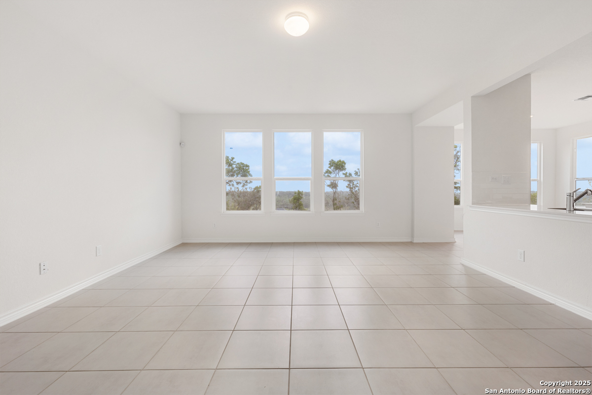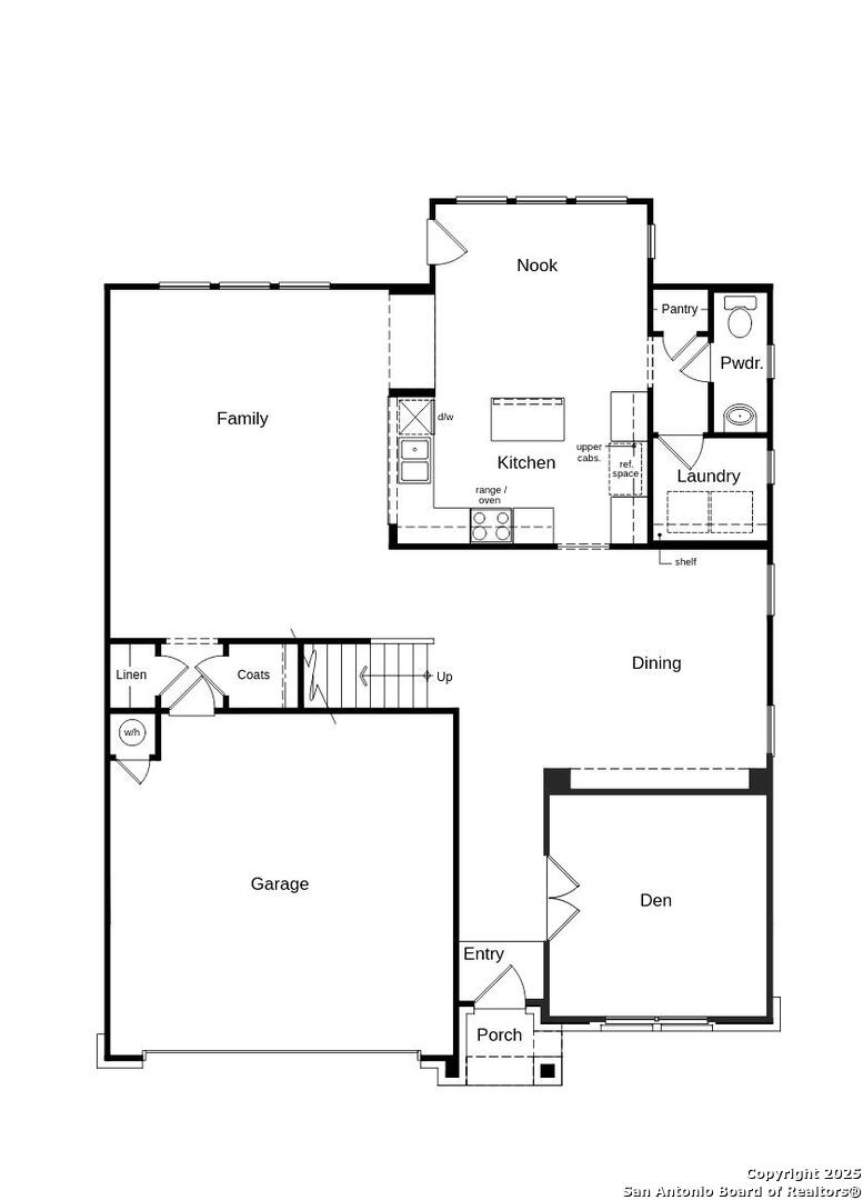 This beautifully designed home features 9-ft. first floor ceilings and a versatile den, ideal for work or relaxation. The kitchen is equipped with Whirlpool stainless steel appliances, Woodmont Dakota Shaker panel 42-in. upper cabinets, a Daltile tile backsplash, and Silestone Blanco Maple countertops. In the primary bath, enjoy upgraded cabinets and a 42-in. shower with a Daltile tile surround. Stylish touches include a Carrara-style entry door, Kwikset Polo interior hardware, and Stella Vista ceramic tile flooring in the kitchen, baths, and great room. A wireless security system, fully sodded yard, and automatic sprinkler system complete the package.