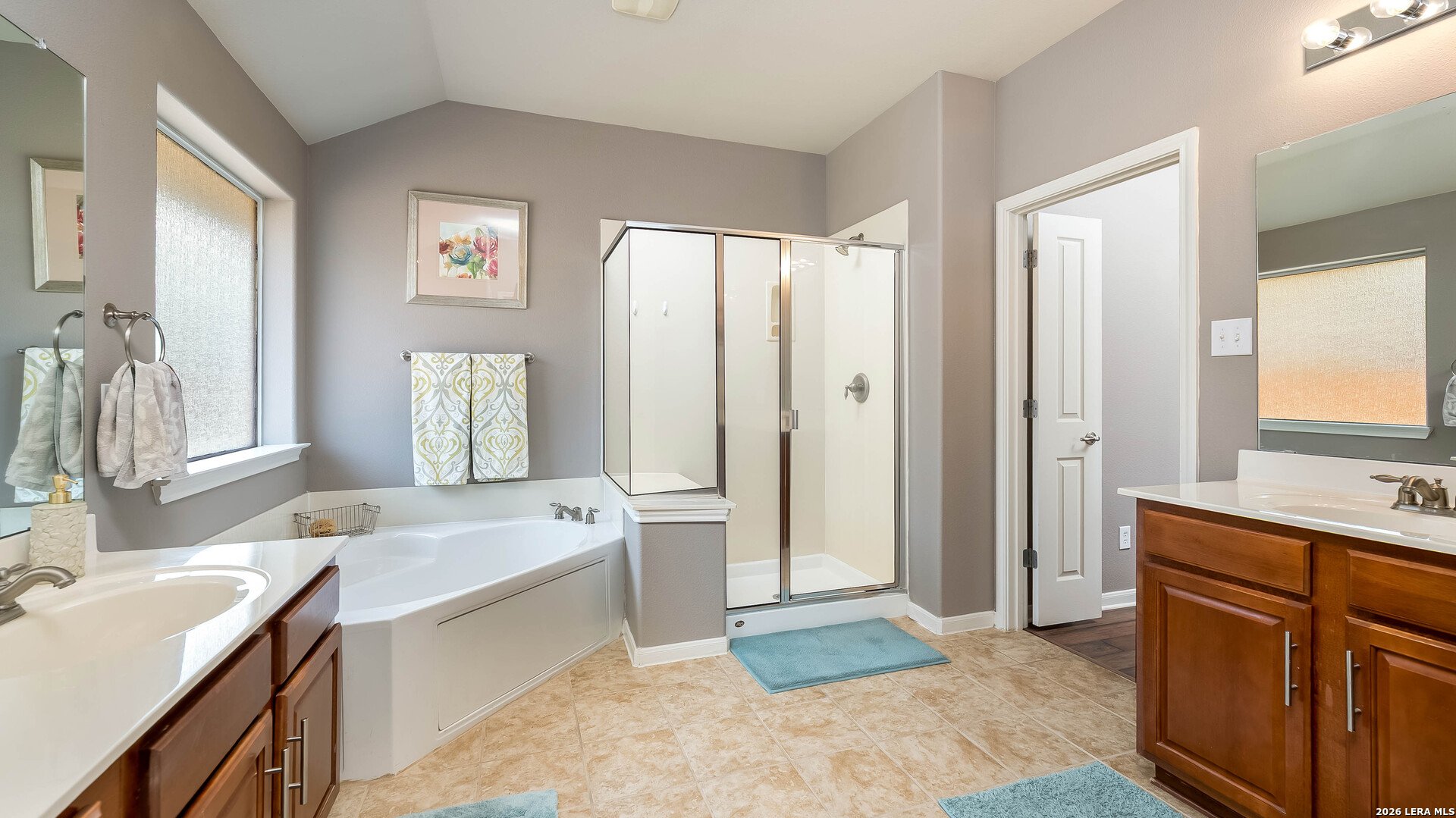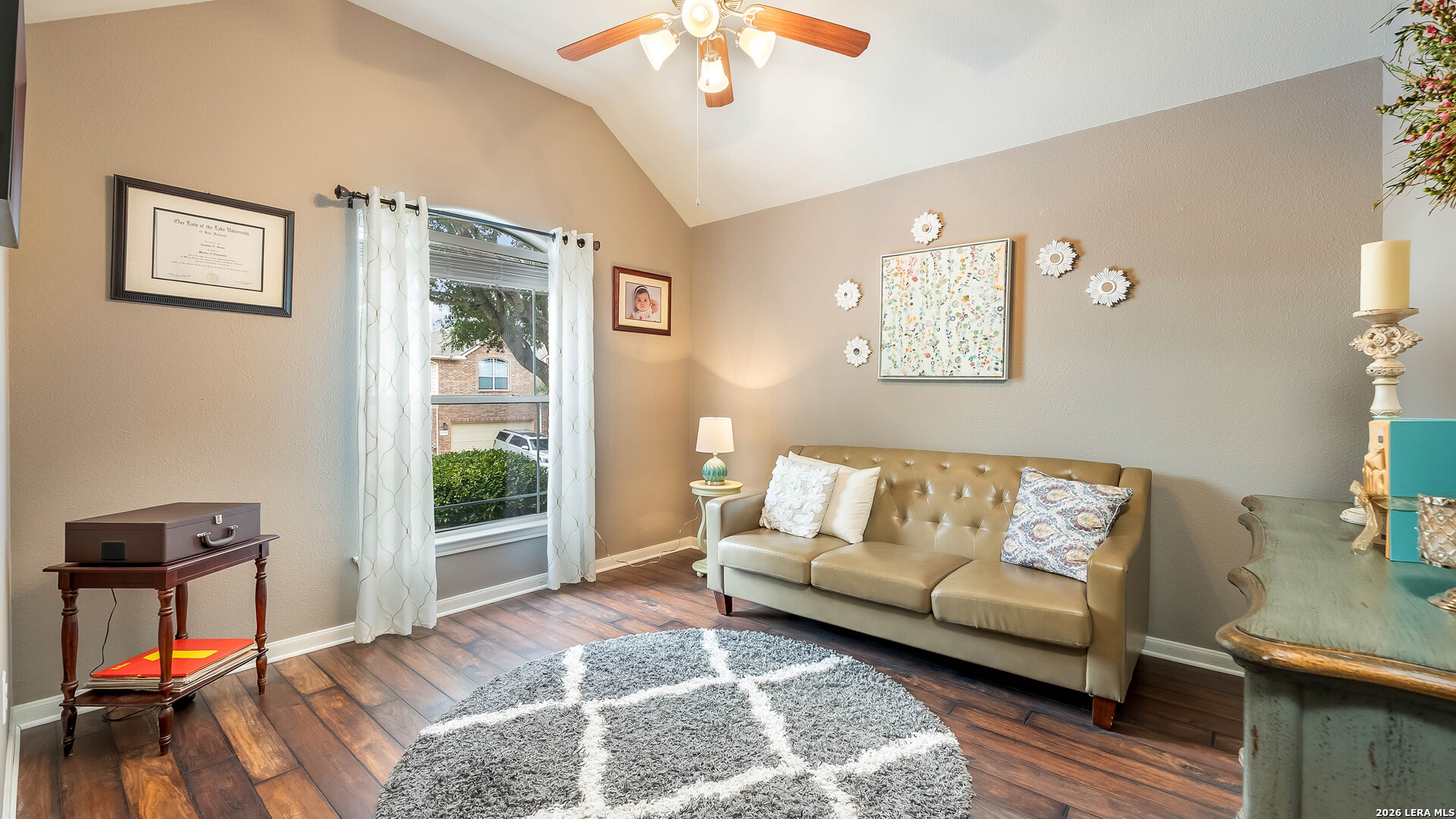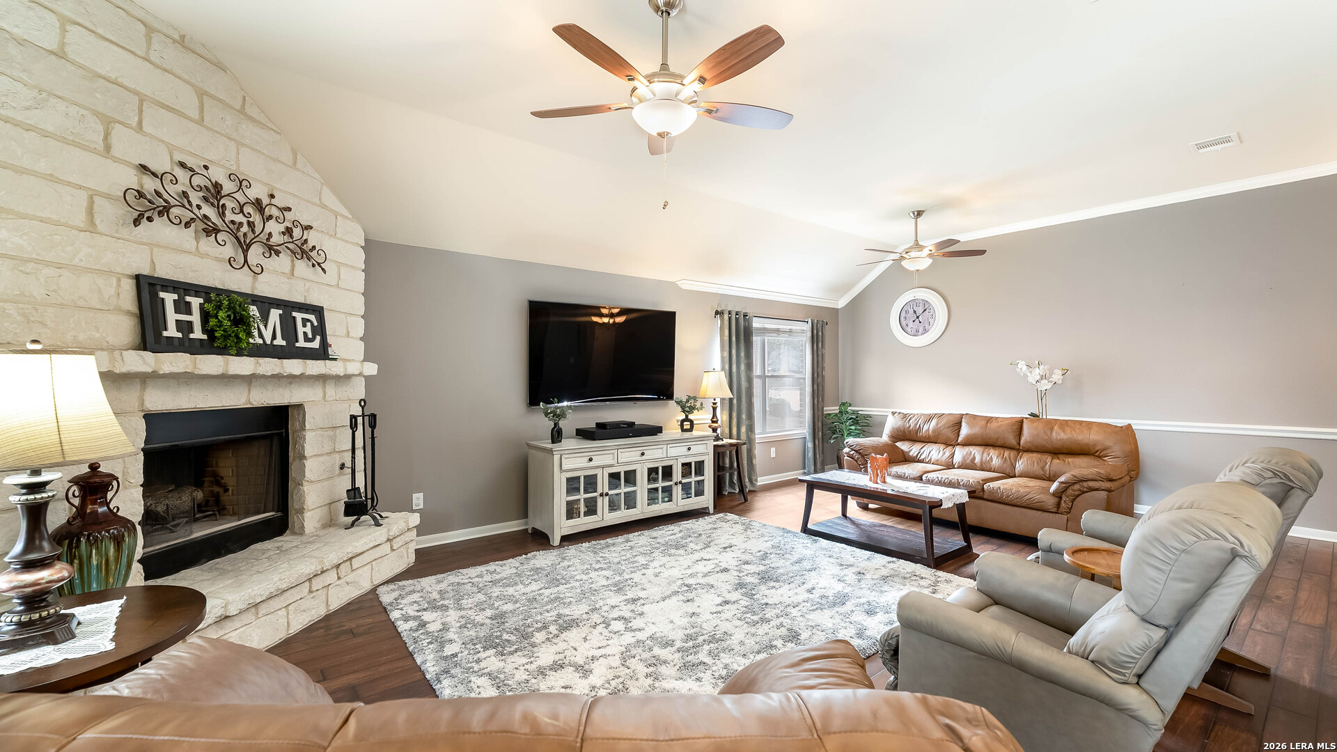 Beautiful single-story home on a quiet cul-de-sac in The Preserve at Indian Springs. Thoughtfully maintained and move-in ready, this home features a spacious living room with 10-ft ceilings, custom drapes, two ceiling fans, and a floor-to-ceiling Austin stone fireplace (wood-burning with gas starter). The kitchen offers granite countertops, tile backsplash, extra-tall cabinetry, center island, gas cooktop with Austin stone surround, large walk-in pantry, and a recently replaced built-in microwave. Split "mother-in-law" floor plan provides privacy, with the primary suite located on a separate hallway. The primary bath includes double vanities, garden tub, extra-tall shower, enclosed water closet, and a large walk-in closet. Additional highlights include Culligan water softener, 1-year-old water heater, 1-year-old garage door opener with keypad and remotes, Nest security camera system, mudroom with added storage, spacious attic storage, and laundry room with extra refrigerator and cabinetry. Enjoy the covered patio and extended paver entertaining area overlooking a landscaped yard with sprinkler system (front and back), upgraded Rain Bird controller, recently trimmed mature oak trees, magnolia and peach trees, and roof replaced approximately 3 years ago. Neighborhood amenities include an oversized family pool, covered pavilion, basketball court, and playground.