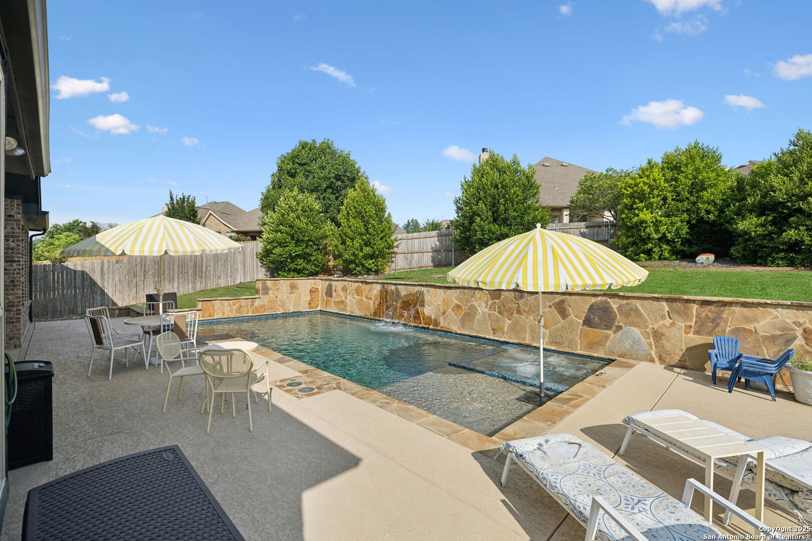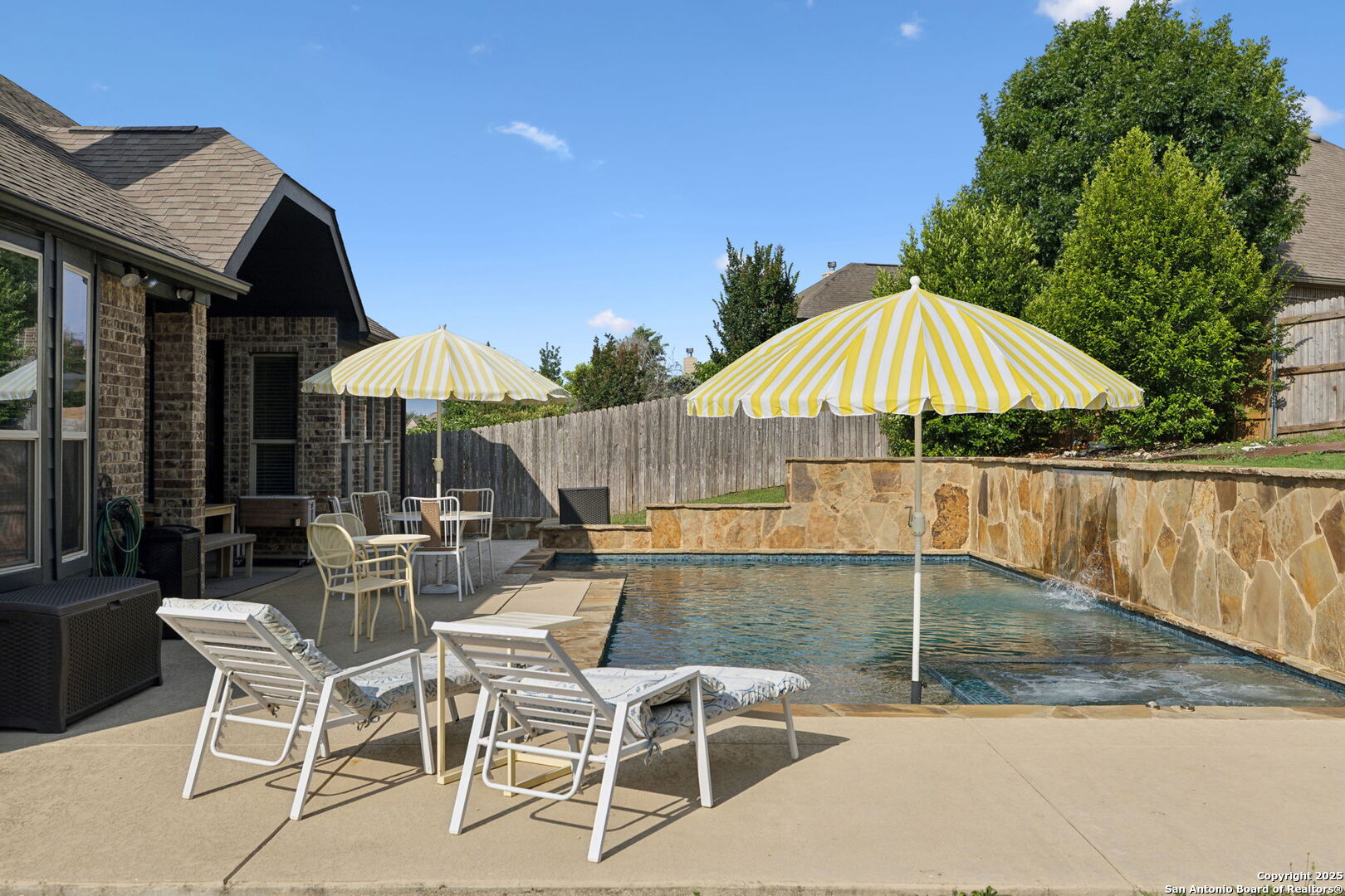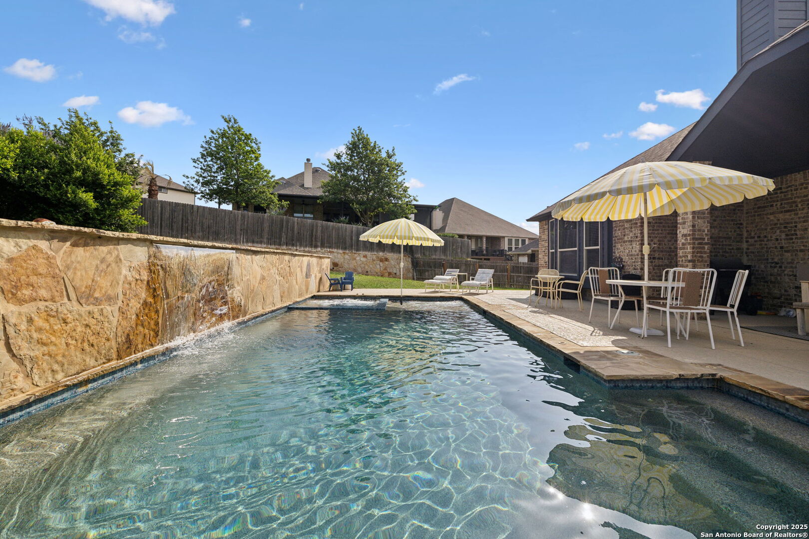 Beautiful 4 bedroom, 3.5 bath home in a quiet cul-de-sac with great neighbors and highly rated schools. This home is built for entertaining with a spacious layout that includes a private study, separate dining room, media room, and game room with a custom reading nook tucked just off the side-perfect for kids or quiet time. The master suite is downstairs and features a walk-in closet with an Elfa storage system. Upstairs offers a split floor plan with a guest suite and private bath set apart from the other bedrooms. The home includes smart LED lighting throughout with color-changing options, gas cooking and heating, and a 3-car garage with smart openers, built-in cameras, remote access, and overhead storage racks. Step outside to your Keith Zars in-ground pool with spa, waterfall, and smart controls for lighting and temperature, all set in a large backyard perfect for gatherings. The front yard features custom rockwork and a striking black flagpole. Professionally painted with Sherwin-Williams' premium line inside and out, all within the last year. A perfect blend of smart features, space, and location-ready to welcome its next owners home.