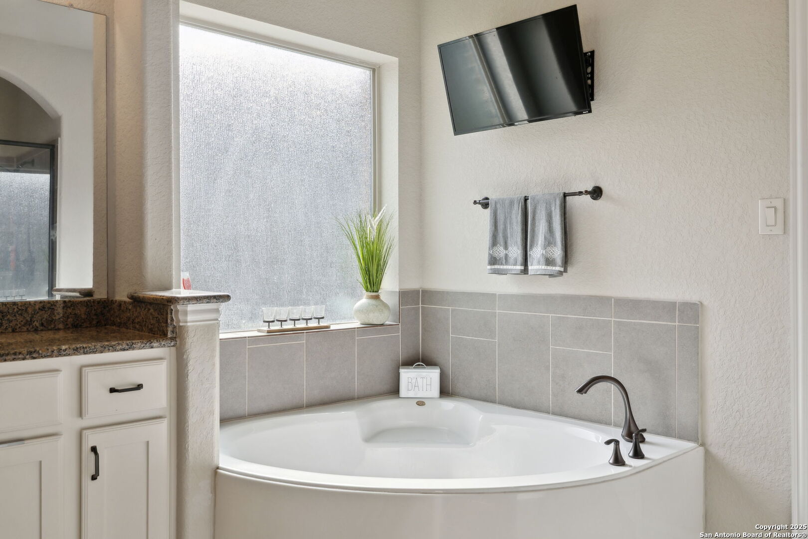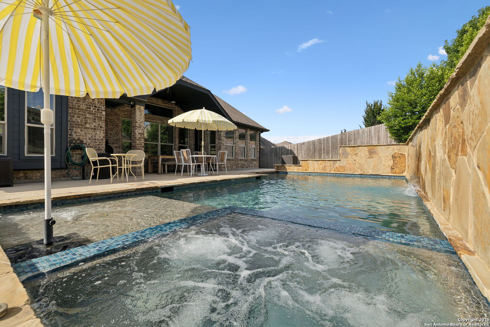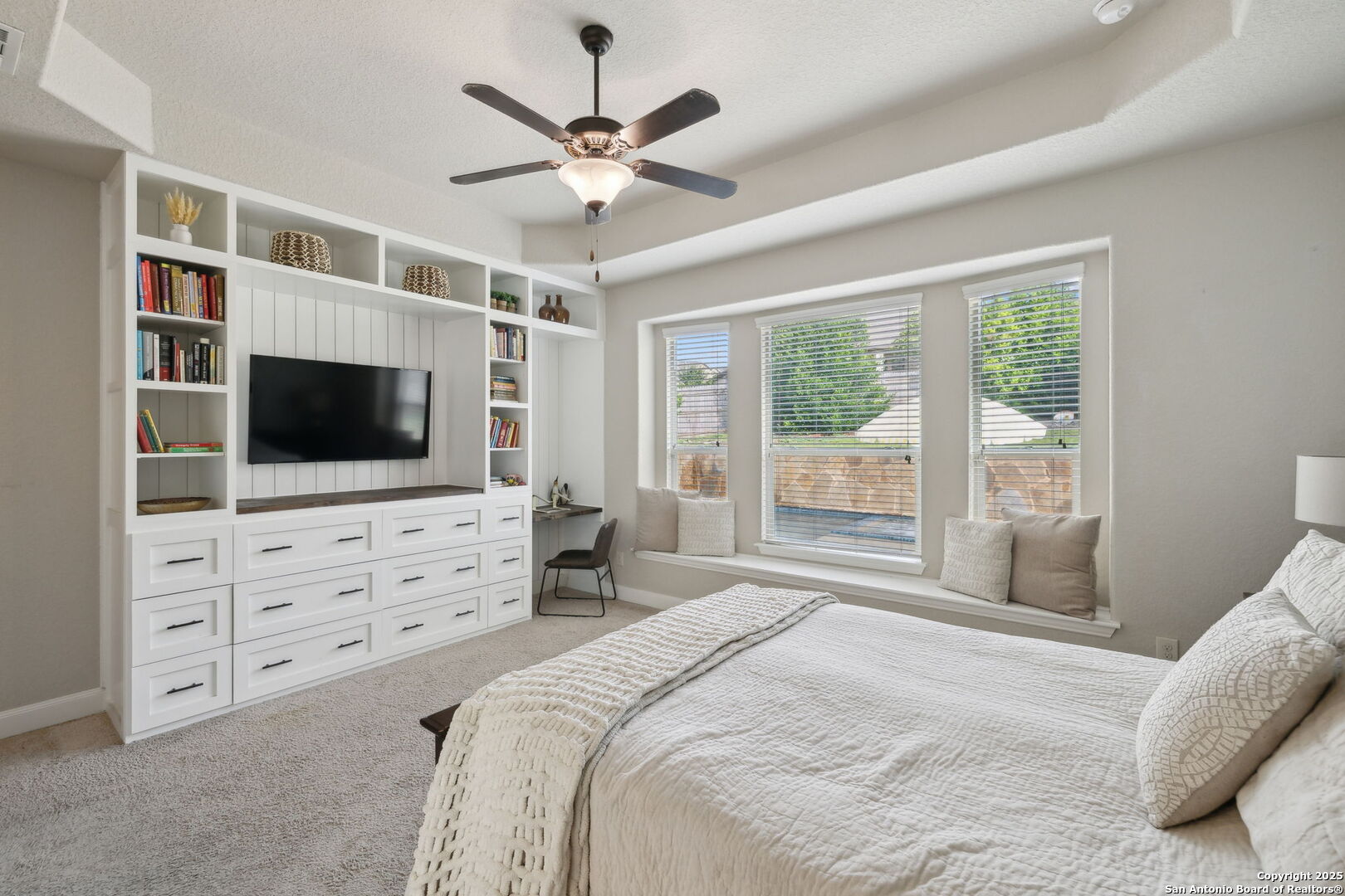 Beautiful 4 bedroom, 3.5 bath home in a quiet cul-de-sac with great neighbors and highly rated schools. This home is built for entertaining with a spacious layout that includes a private study, separate dining room, media room, and game room with a custom reading nook tucked just off the side-perfect for kids or quiet time. The master suite is downstairs and features a walk-in closet with an Elfa storage system. Upstairs offers a split floor plan with a guest suite and private bath set apart from the other bedrooms. The home includes smart LED lighting throughout with color-changing options, gas cooking and heating, and a 3-car garage with smart openers, built-in cameras, remote access, and overhead storage racks. Step outside to your Keith Zars in-ground pool with spa, waterfall, and smart controls for lighting and temperature, all set in a large backyard perfect for gatherings. The front yard features custom rockwork and a striking black flagpole. Professionally painted with Sherwin-Williams' premium line inside and out, all within the last year. A perfect blend of smart features, space, and location-ready to welcome its next owners home.