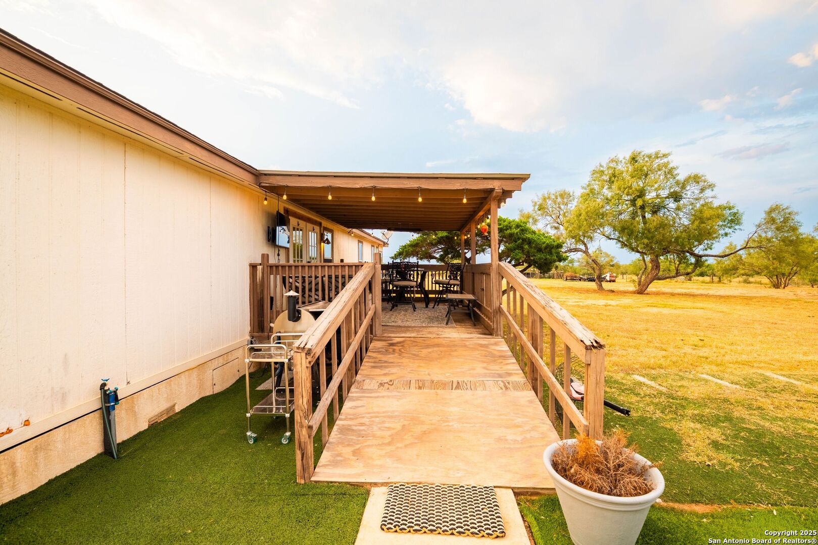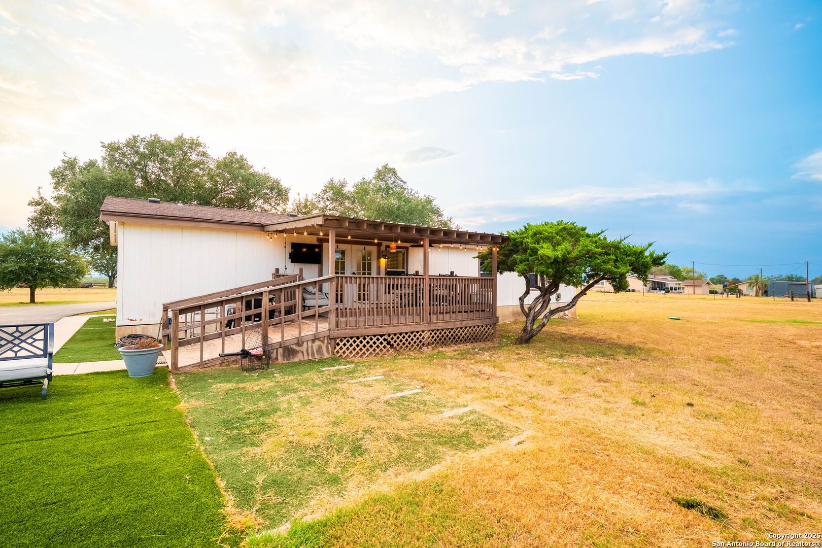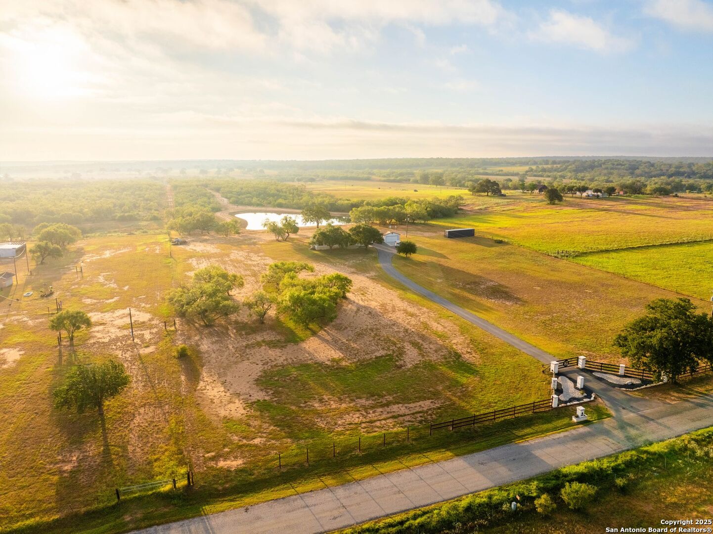 Owner Financing Available with 10% down, negotiable terms 7% interest rate up to 30 years! Ask for more details. This exceptional property offers a perfect blend of upgrades, functionality, and country charm with no restrictions. Featuring a brand-new 1.5-acre man-made tank/pond (up to 12 ft deep) fed by a newly installed water well (2025) and on-site water system, the land is fully fenced on all four sides with heavy-duty welded metal in front and a custom electric gate (installed August 2025). The asphalt driveway leads to a manufactured home with a new exterior condenser, abundant natural light, and beautiful views from every window, plus a large back deck ideal for entertaining. A spacious detached garage and a 40' Connex box convey with the sale, along with industrial artificial turf for easy maintenance. The property includes three electrical poles (two active), high-speed fiber internet, cleared and leveled land with drivable roads on both property lines, and a serene creek. Perfect for outdoor living, hunting (dove and white-tail deer frequently visit), or multiple homes-mobile or stick-built-the possibilities are endless.