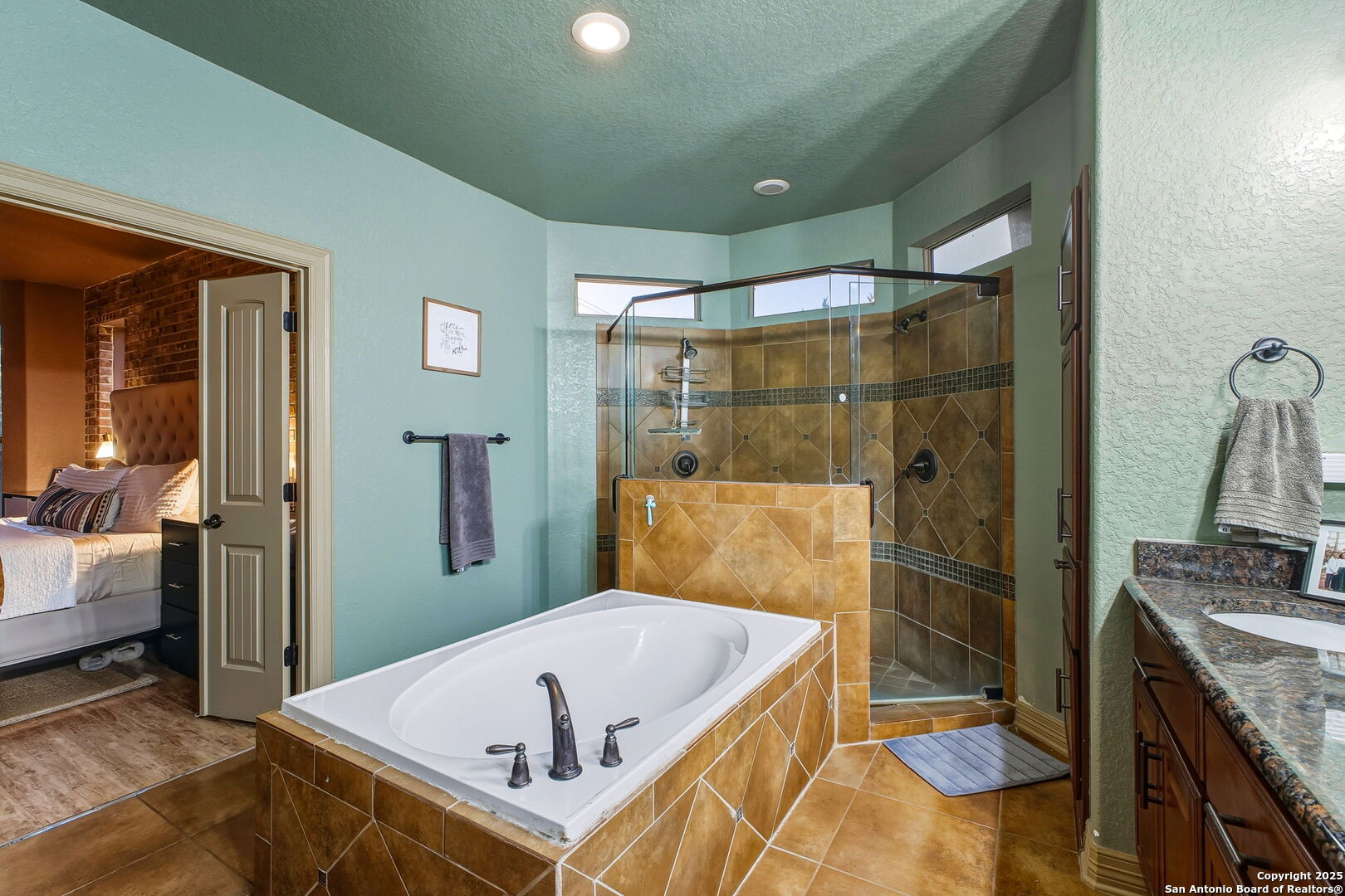 Click the Virtual Tour link to view the 3D walkthrough. Discounted rate options and no lender fee future refinancing may be available for qualified buyers of this home. Welcome to this stunning five-bedroom, two-story home offering an exceptional blend of space, style, and sophistication. Step inside to discover an open floor plan with soaring ceilings, where the second-level overlook provides a striking view of the living area below-creating a true sense of grandeur and openness. The primary suite is conveniently located on the first floor, featuring a luxurious ensuite bath complete with a separate soaking tub and walk-in shower. The spacious kitchen seamlessly connects to the living and dining areas and includes ample counter space, a center island, and a cozy eat-in nook, perfect for gatherings both large and small. Upstairs, a generous game room offers endless possibilities for entertainment, hobbies, or a secondary living space. Each additional bedroom provides comfort and flexibility for family or guests. Outside, enjoy a fenced backyard, ideal for hosting, relaxing, or enjoying quiet evenings at home. This remarkable home combines grand design with everyday comfort-perfect for those who love space, light, and effortless living.