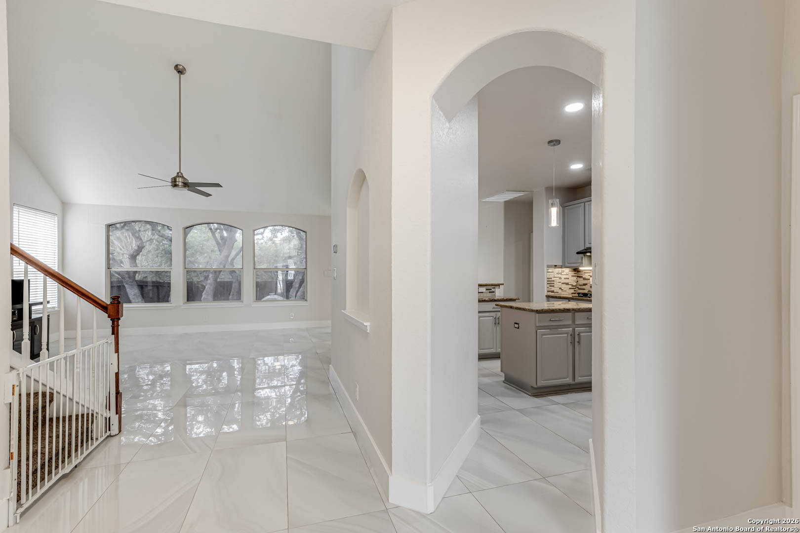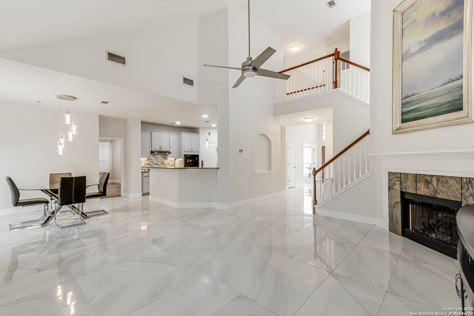 Stunning Two Story Home in The Lookout Canyon! Nestled in the highly sought-after Stonecrest at the Lookout Canyon master community. This inviting home blends Hill Country charm with modern comfort. With 4 spacious bedrooms, 2.5 baths, and thoughtful upgrades throughout, it offers the perfect balance of style, function, and privacy. KEY Features: Durable metal roof for long-lasting peace of mind, warm, inviting fireplace anchoring the main living area, dedicated study downstairs-ideal for remote work, hobbies, or a quiet retreat. Open concept layout with abundant natural light, generously sized bedrooms with great storage and flexibility. Master Suite located on the main level for privacy and convenience, private backyard, whether you envision outdoor dining, a play space, or simply a quiet place to unwind, this yard delivers room to breathe and grow. Residents of Lookout Canyons enjoy access to a beautifully maintained amenity center, complete with sparkling community pool, shaded park and playground, walking paths and green spaces perfect for morning strolls. Prime North San Antonio Location, convenient to top rated schools, shopping, dining, and major highways, this home offers both tranquility and accessibility.