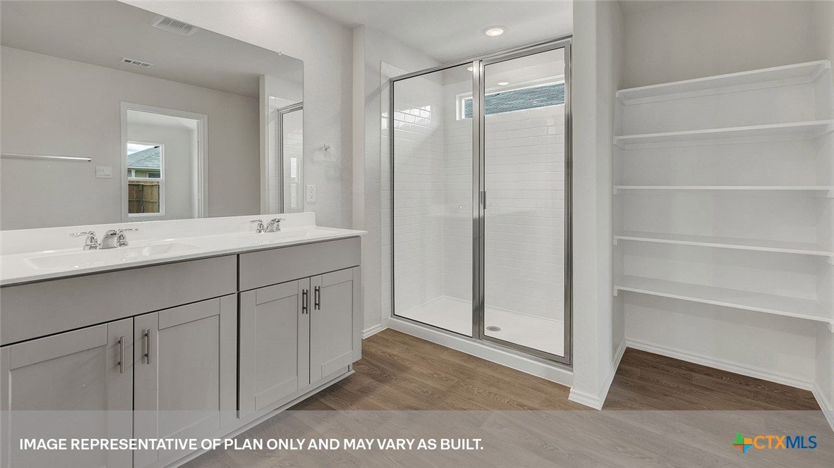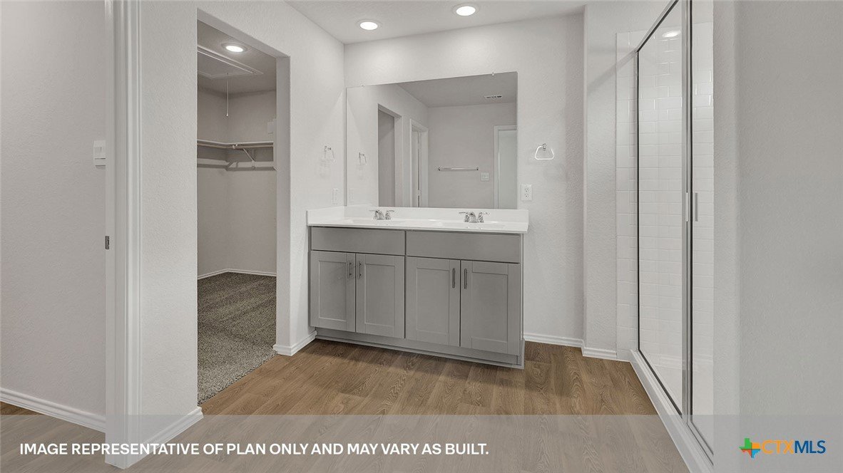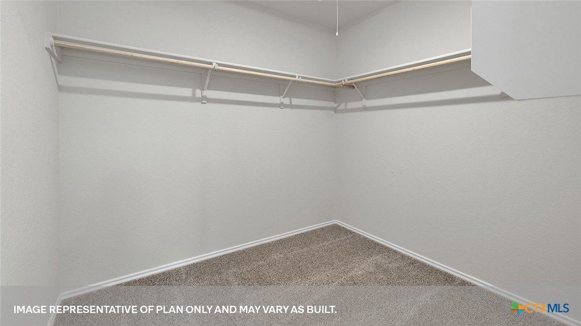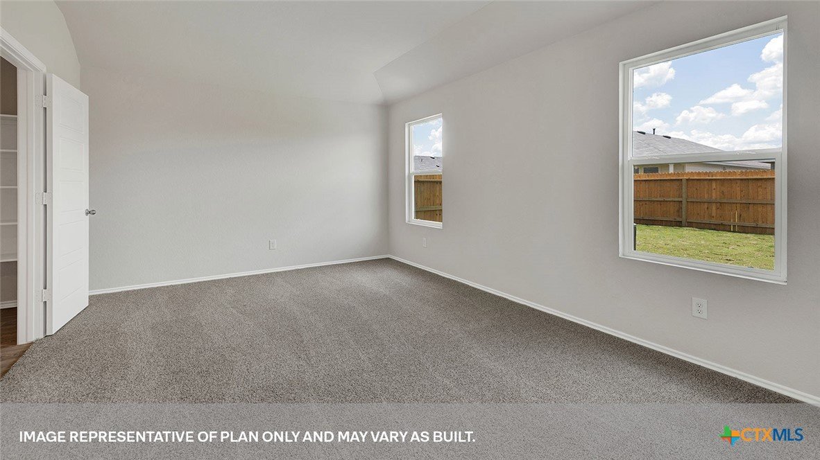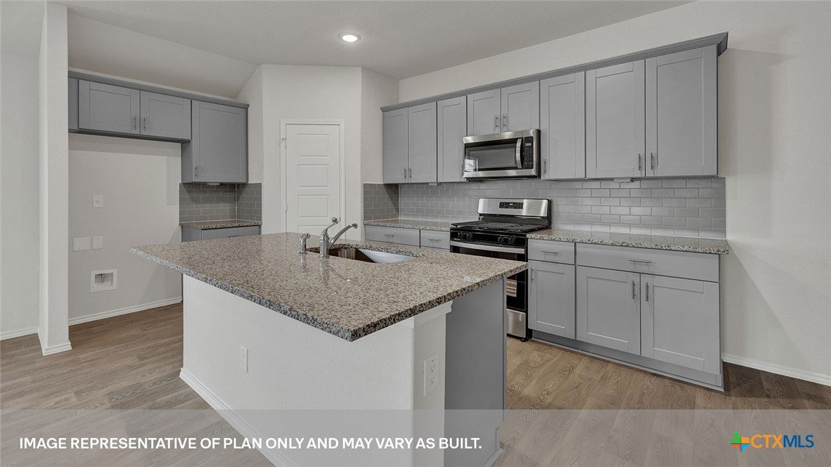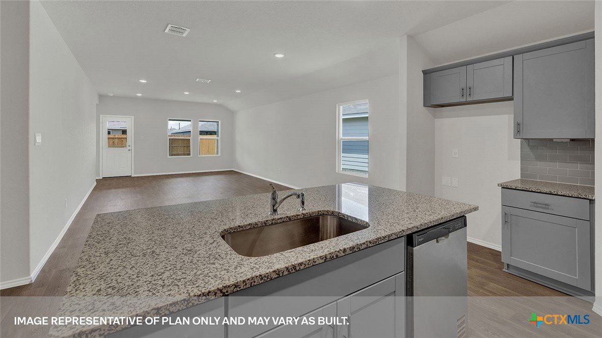 SEPTEMBER ESTIMATED COMPLEITION. The Gaven is one of our one-story homes featured in our Paramount community in Kyle, Texas. This efficient floorplan offers 1,772 square feet of living space across 4 bedrooms, 2 bathrooms and a 2 car garage. Our homes in Paramount feature our modern farmhouse exterior. Stepping inside the home from the covered entryway, you will find two secondary bedrooms and a full bathroom off the foyer. The secondary bathroom includes a shower/tub combination, and the bedrooms feature a closet with shelving. Moving further into the home, you will find the kitchen, which includes an island with an undermount sink, stainless steel appliances, quartz countertops and 36” upper cabinets. The dining room and family room flow easily from the kitchen and you’re sure to make many memories in this beautiful space. The utility room and bedroom 2 are off the kitchen. With the utility room at the center of the home, your laundry chores will be an easy task to complete. The primary bedroom is tucked off the family room at the back of the home. Featuring its own attached bathroom with a walk-in shower, marble countertops with dual vanity, and separate toilet area with a door, enjoy this relaxing space during your bedtime routine. A walk-in closet is connected to the bathroom, with plenty of room for your accessories and prized possessions. The Gaven includes vinyl flooring throughout the common areas of the home and carpet in the bedrooms. All our new homes at Paramount feature extra storage space in the garage, a covered back patio, full sod, and an irrigation system in the front and back yard. This home comes with our America’s Smart Home base package, which includes Video Front Door Bell, Front Door Deadbolt Lock, Home Hub, Thermostat, and Deako® Smart Switches.