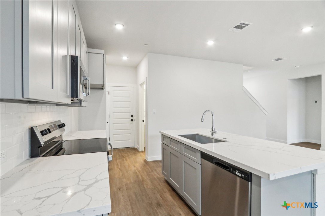 Move-in ready! End unit with Master down and Elite finishes including hardwood floors on first floor! Townhomes at Gattis is a premier community of 74 thoughtfully and environmentally designed town homes. Located just north of Austin in the sought--after suburb of Round Rock, Townhomes at Gattis is surrounded by established single family neighborhoods, as well as many close--by national retail, restaurant, entertainment, and employment centers. It is within 2 miles of the intersection of Toll Road 45 & I--35 intersection, with easy access to everything, including downtown Austin, the new $1 billion Apple campus, and the new Tesla plant. It is only minutes from The Domain, a retail mecca with over 100 upscale retail shops and restaurants. Builder incentives include: 1) Preferred lender incentive = $3000 to be used towards title policy! Many upgrades included!