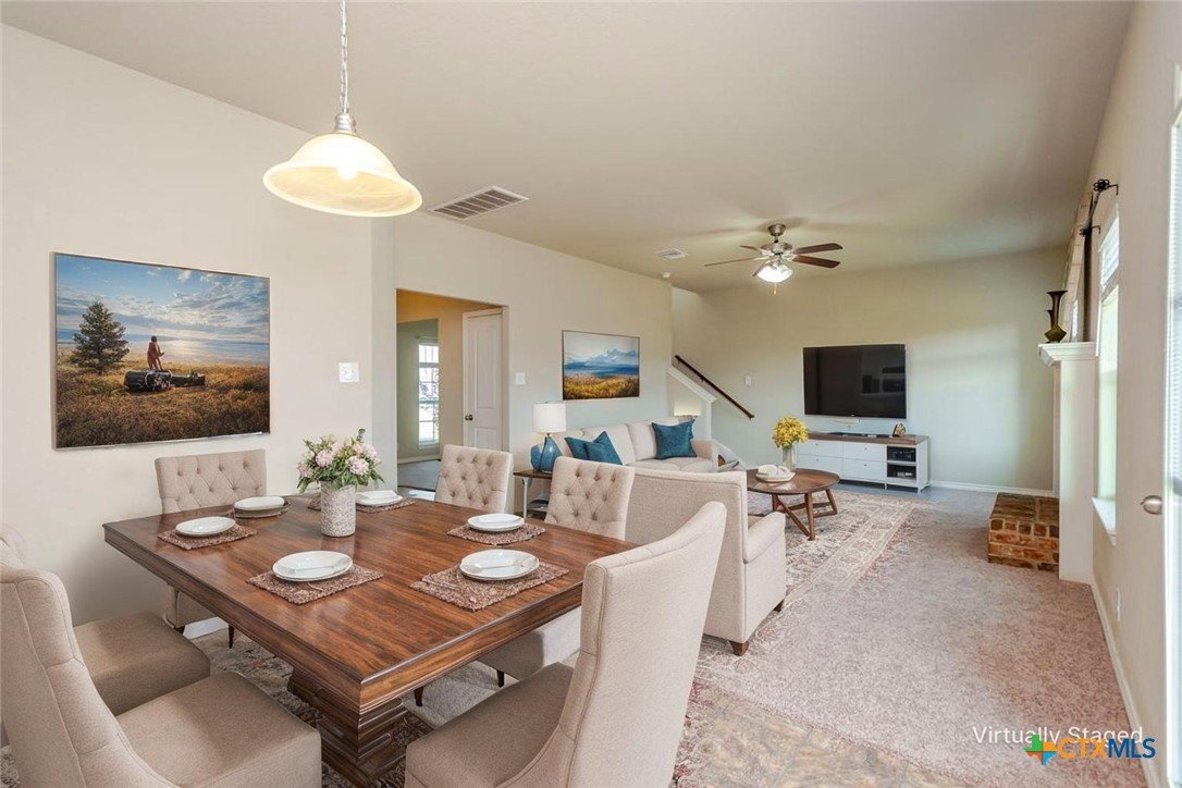 Perfectly situated in a convenient location close to everyday essentials, this home combines comfort, style, and thoughtful design inside and out. The spacious lot features a relaxing backyard retreat with a covered patio—ideal for outdoor evenings and weekend cookouts. Inside, the versatile floor plan offers a great balance of openness and function. At the center of the home, the inviting great room with a cozy fireplace flows seamlessly into the dining area and kitchen, creating a connected space for cooking, dining, and gathering. The kitchen provides plenty of room to spread out, while the flex room is ready to adapt—whether you need a home office, workout space, or quiet retreat. The owner’s suite serves as a private getaway with a generous bedroom, a spa-like bath featuring a soaking tub, rain shower head, and a spacious walk-in closet designed for organization and ease. Everyday living meets convenience here—with room to grow, relax, and truly enjoy.