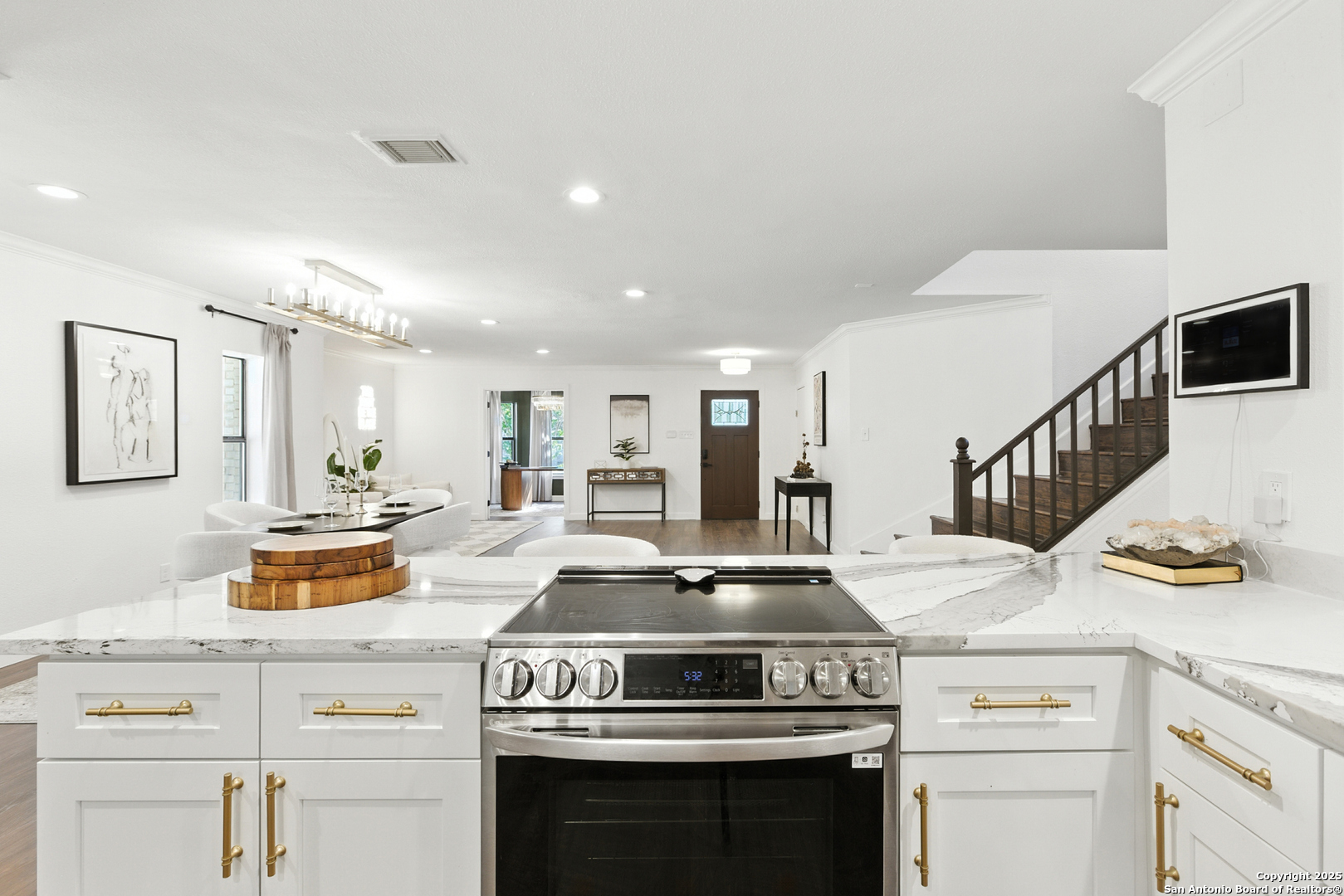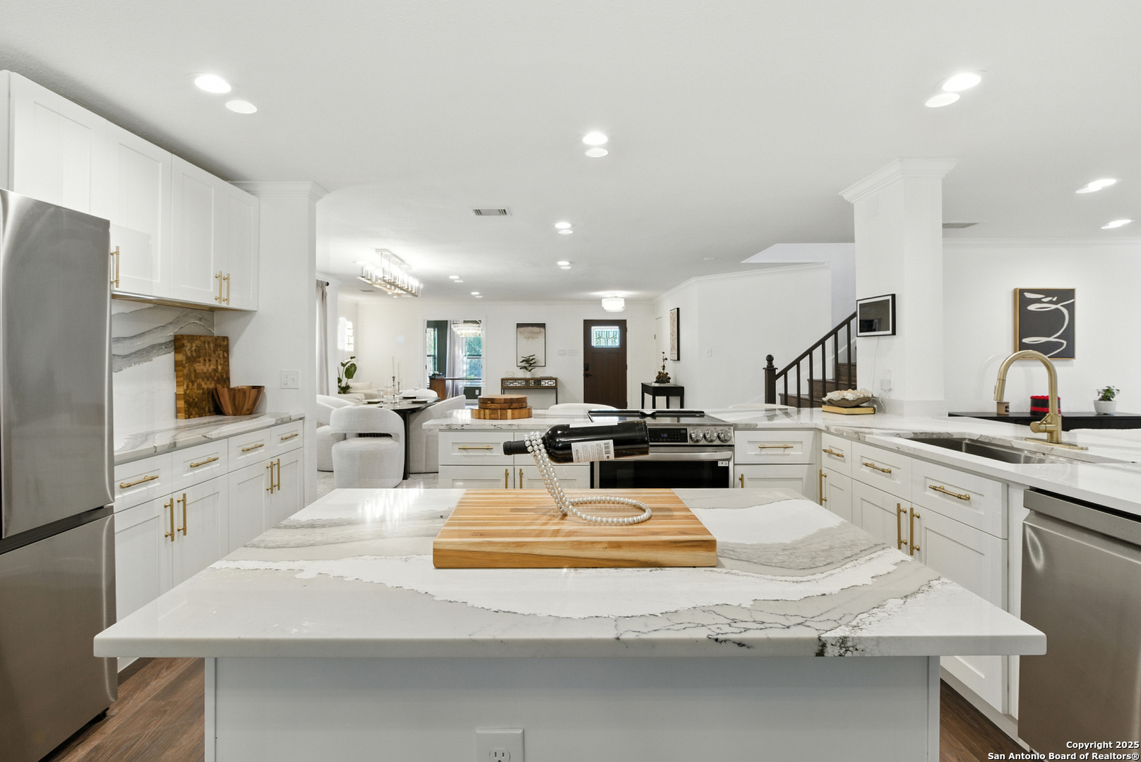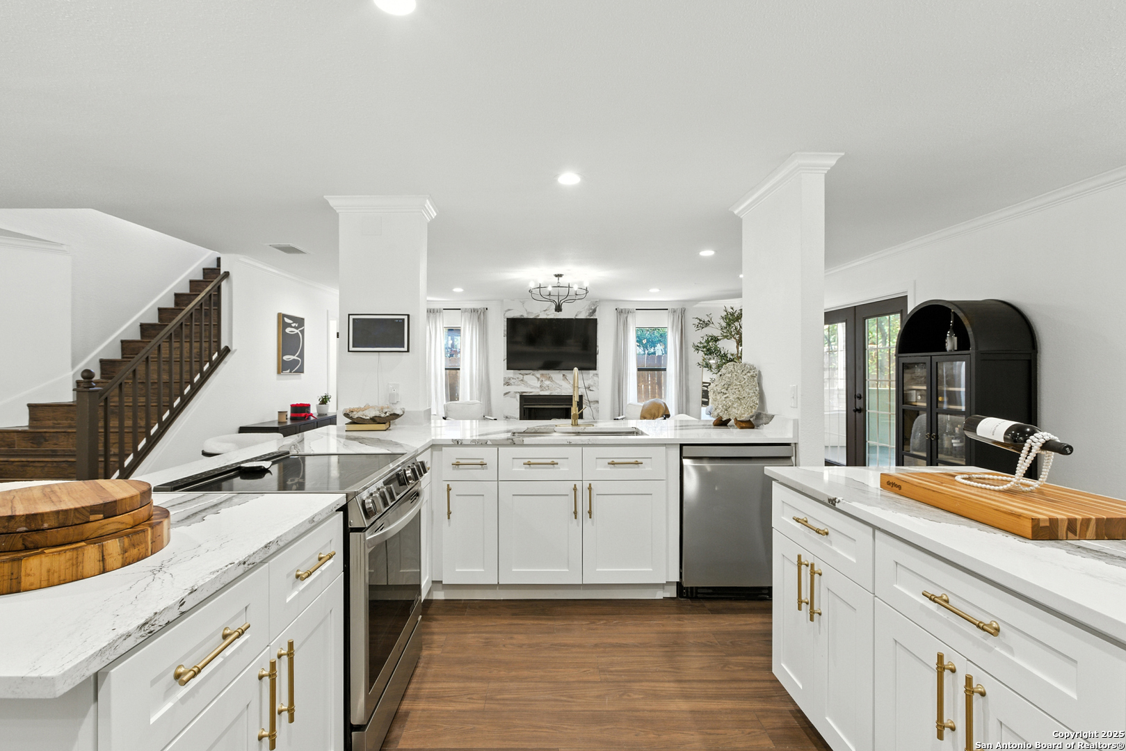 Welcome Home! Where Luxury Living Meets a Prime San Antonio Location. Nothing was left untouched in this stunning 4-bedroom, 2.5-bath home, offering 3,487 sq. ft. of thoughtfully redesigned living space. Every detail showcases high-end designer finishes and premium fixtures, creating a home that feels both luxurious and inviting. The open-concept layout seamlessly connects the living, dining, and chef-inspired kitchen, while a dedicated home office, and upstairs media room offer endless possibilities for work, relaxation, and entertainment. All bedrooms are large, spacious, light, and bright, designed for comfort and style. A huge enclosed patio and level .20-acre lot provide abundant space for gatherings, making this home ideal for entertaining both indoors and out. Located just off Loop 1604, with quick access to US-281 and I-35, you're minutes from the airport, military bases, shopping, and dining. This is luxury style and comfort, perfectly combined in one exceptional home. Schedule your showing today!