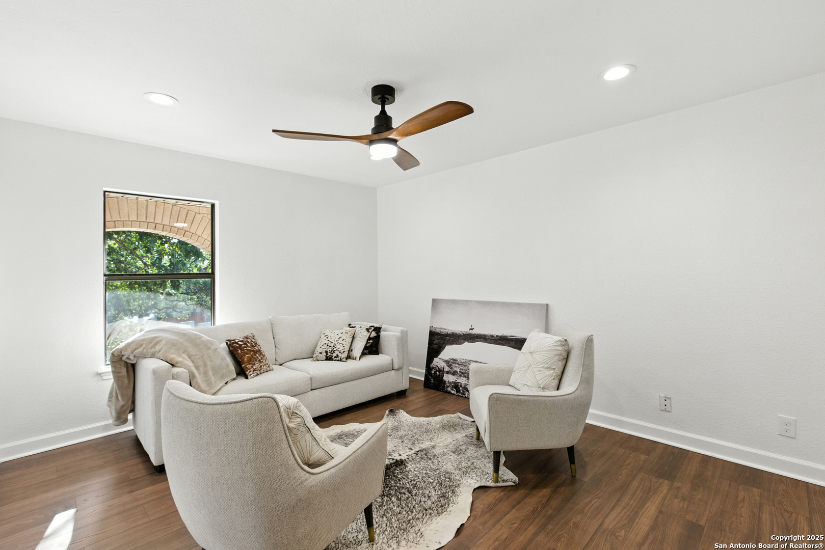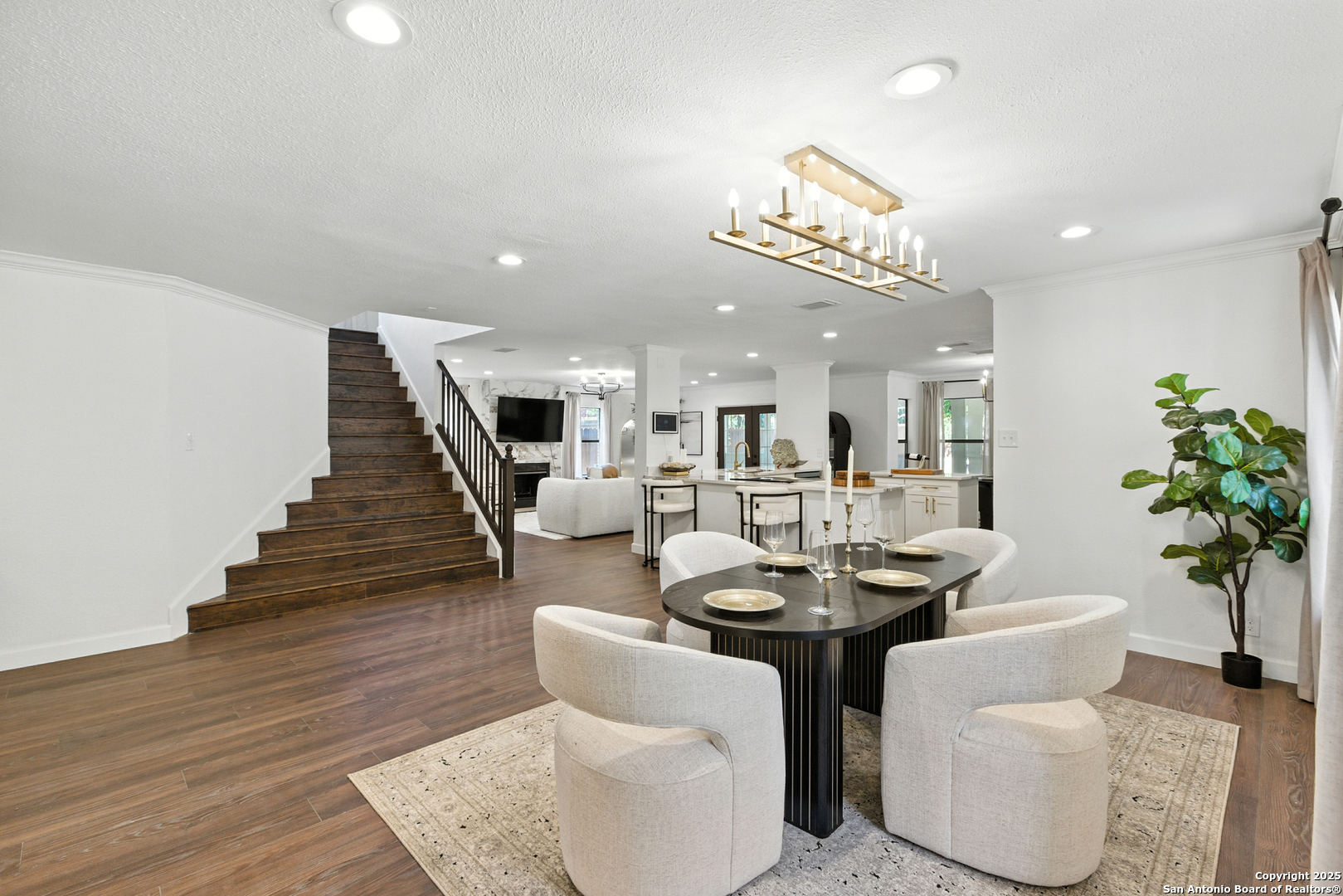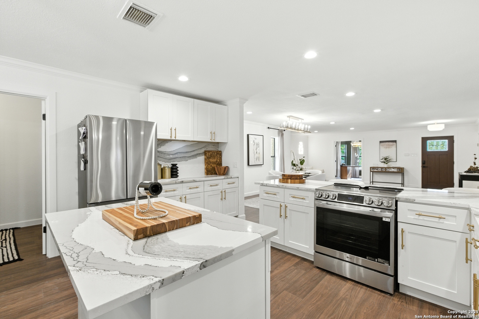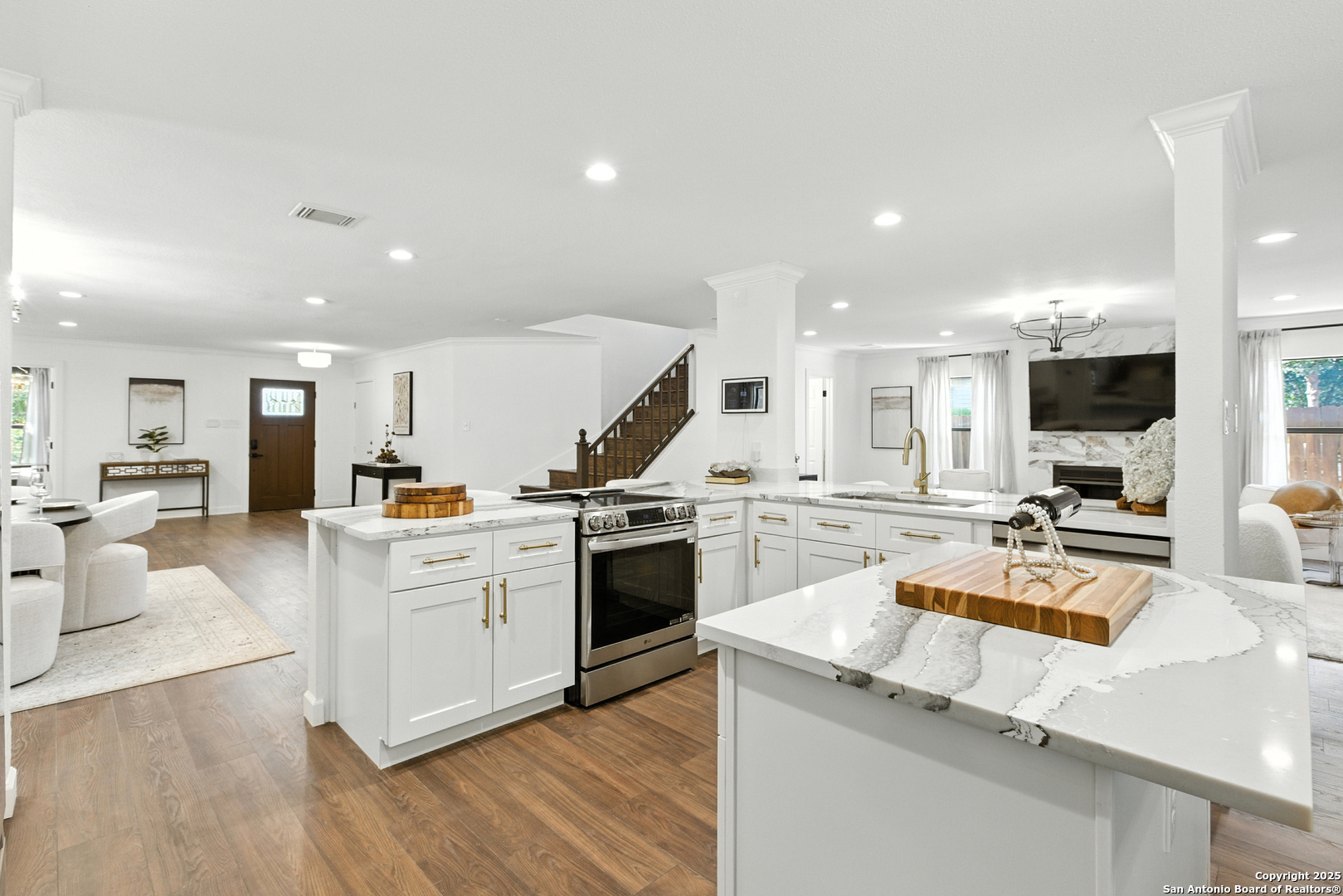 Welcome Home! Where Luxury Living Meets a Prime San Antonio Location. Nothing was left untouched in this stunning 4-bedroom, 2.5-bath home, offering 3,487 sq. ft. of thoughtfully redesigned living space. Every detail showcases high-end designer finishes and premium fixtures, creating a home that feels both luxurious and inviting. The open-concept layout seamlessly connects the living, dining, and chef-inspired kitchen, while a dedicated home office, and upstairs media room offer endless possibilities for work, relaxation, and entertainment. All bedrooms are large, spacious, light, and bright, designed for comfort and style. A huge enclosed patio and level .20-acre lot provide abundant space for gatherings, making this home ideal for entertaining both indoors and out. Located just off Loop 1604, with quick access to US-281 and I-35, you're minutes from the airport, military bases, shopping, and dining. This is luxury style and comfort, perfectly combined in one exceptional home. Schedule your showing today!