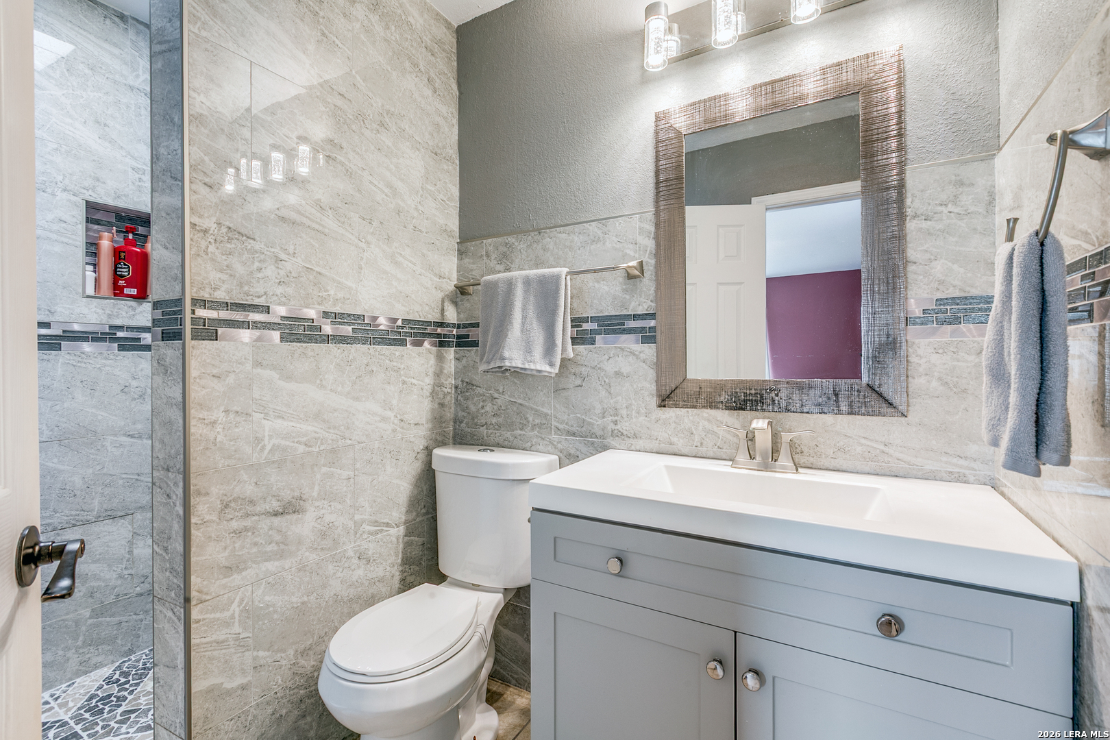 Welcome to this beautiful, well-maintained home featuring three bedrooms and two upgraded full bathrooms. The kitchen is a standout, featuring top-of-the-line appliances and elegant quartz countertops. The open living space includes a built-in bar, perfect for gatherings, and the backyard offers a porch designed for entertaining friends and family. Conveniently located just minutes from shopping centers, restaurants, and more, this home also provides easy access to all major highways.