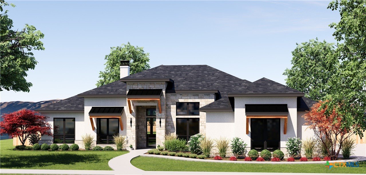 Discover modern Hill Country living in this stunning new construction by J&L Builders LLC, located in the sought-after community of The Ranch at Delaware Creek. Set on a spacious 5,276 SF slab, this thoughtfully designed 3,488 SF home offers 4 generously sized bedrooms and 3.5 bathrooms, including a luxurious primary suite with a spa-like ensuite featuring a soaking tub, separate walk-in shower, and dual vanities. Two guest bedrooms share a unique Jack-and-Jill style layout with individual half-baths connected by a shared tub/shower room. Additional living spaces include a versatile flex room, a dedicated game room, a welcoming foyer, and a spacious 3-car garage. The heart of the home is a grand open-concept living space that seamlessly connects the living room with a cozy fireplace, dining area, and chef-inspired kitchen—perfect for entertaining or family gatherings. A large walk-in pantry, mudroom, and utility room offer both functionality and convenience. High-end finishes, smart layout, and attention to detail make this a must-see property for those looking to embrace comfort, elegance, and Texas charm.