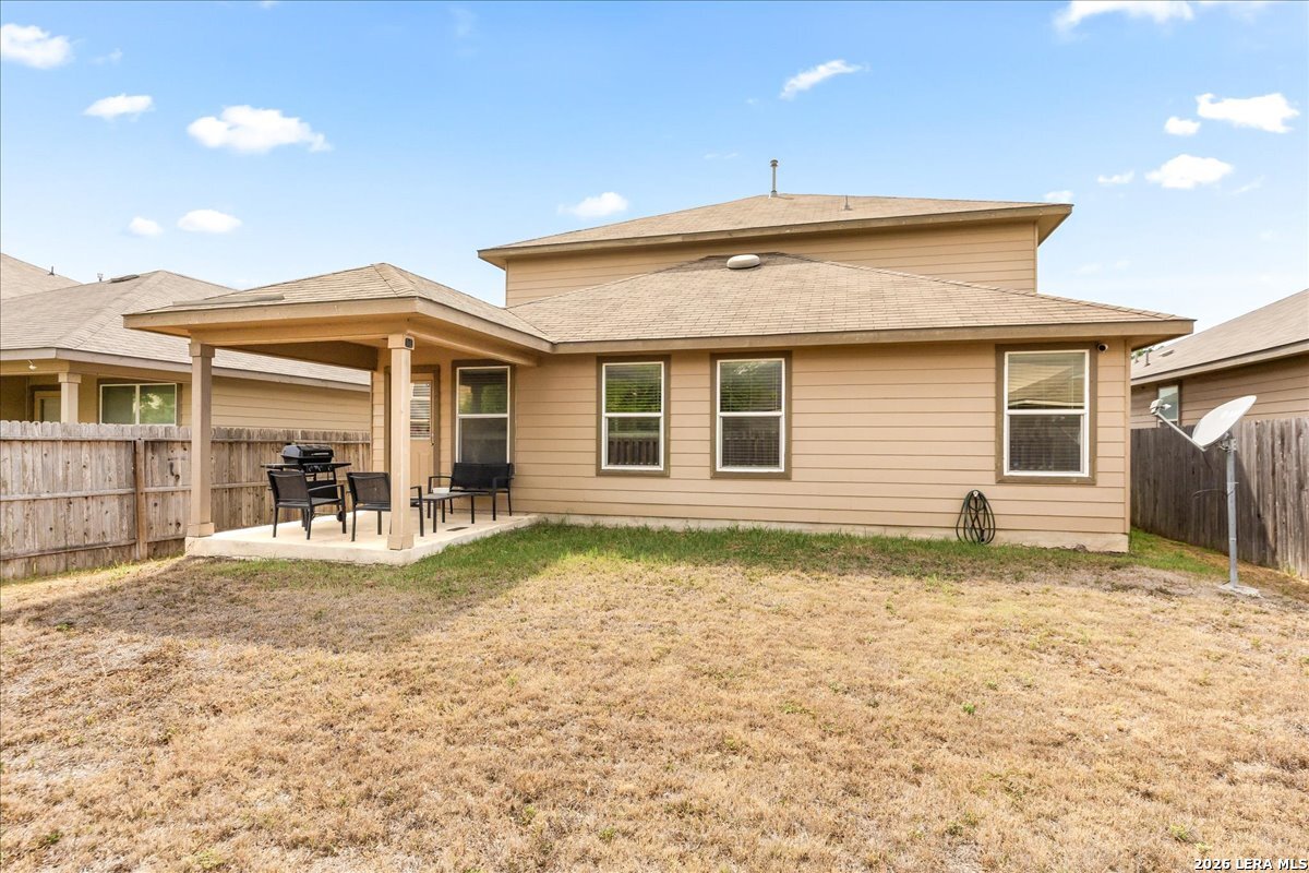 Built in 2018, this spacious 2,531 sq ft residence features a primary bedroom downstairs with 2 full baths and a convenient half bath. The open-concept kitchen offers granite countertops, a gas stove, refrigerator included, and plenty of cabinet space. Upstairs, you'll find four additional bedrooms and a huge loft ideal for a game room, office, or media space. Enjoy outdoor living under the covered patio, plus the convenience of a two-car garage. Centrally located, you have easy access to I-10 freeway, FM 78, 410, and I-35. You're nearby stores like HEB and Walmart, as well as restaurants, and gas stations. Great for military as you're a short commute to Randolph AFB, Fort Sam Houston, and San Antonio Military Medical Center.