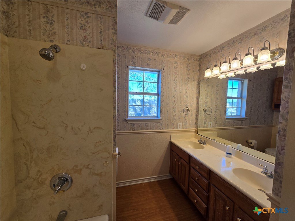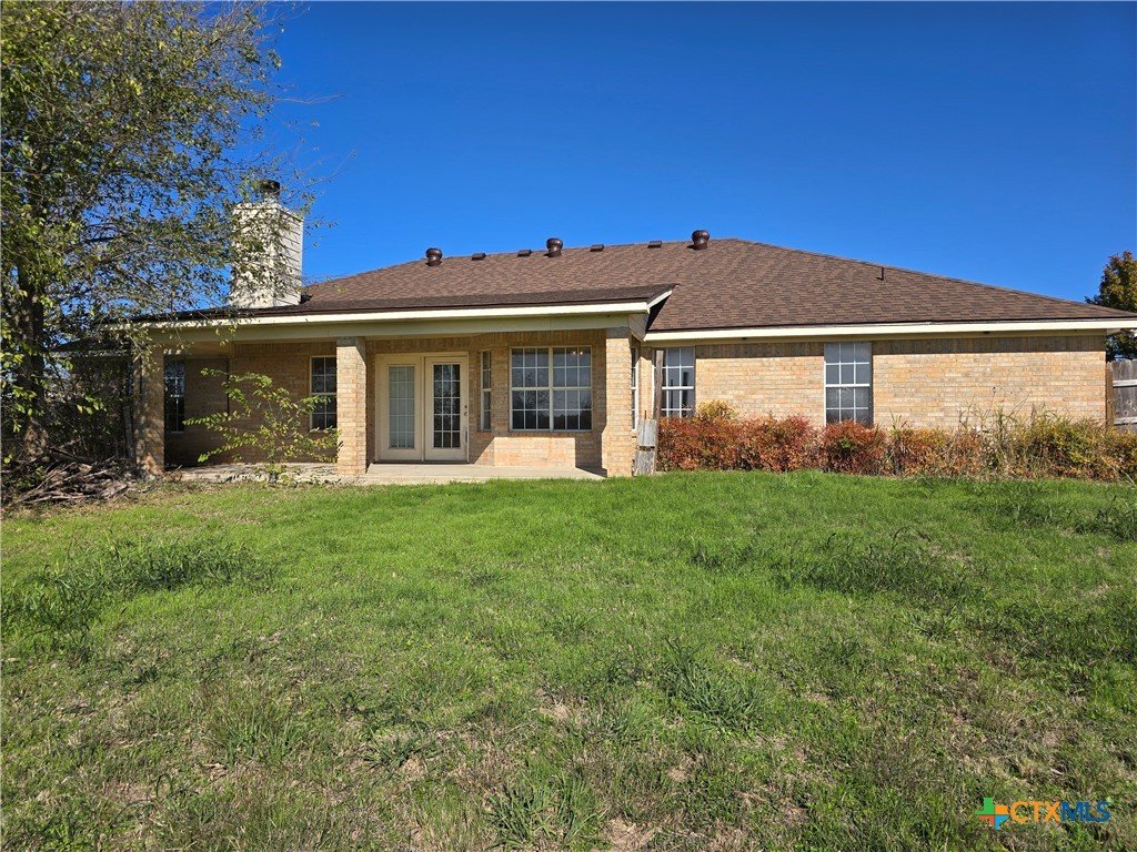 4 Bdrm 2 1/2 Bath Brick-Veneer Home on 10 acres Outside City Limits. Located between Temple and Troy. Split Bedrooms, Both baths have double vanities. Utility Room w/half bath, Large 2-Car Garage w/storage room. Refrigerator does convey. Dishwasher replaced 2025. Two shipping containers and carport do not convey. Roof shingles replaced 2023.