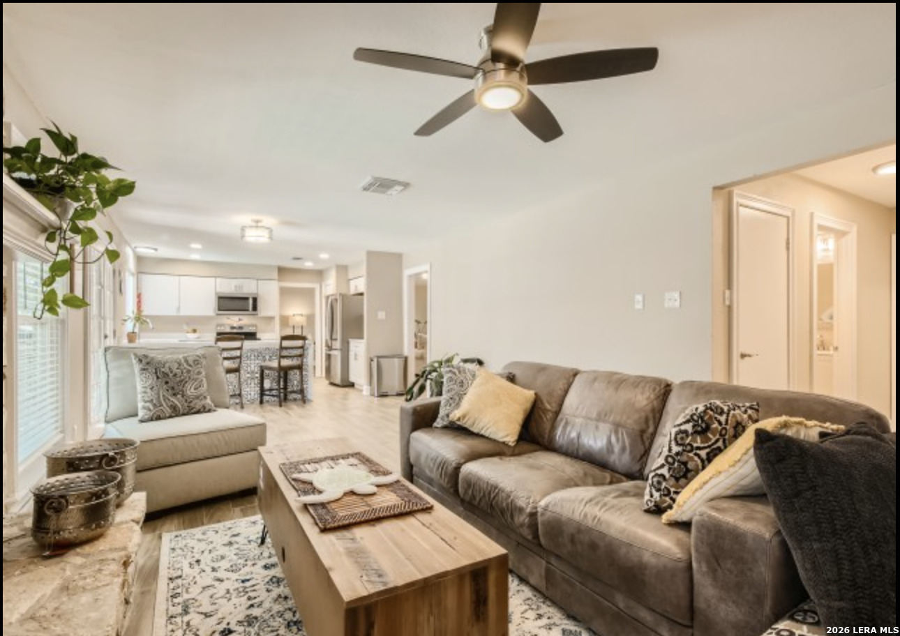 Stunning Updated Home with Pool in Desirable Oak Hollow Park! 2645 Pebble Valley, a beautifully maintained and thoughtfully updated home nestled in the sought-after Oak Hollow Park neighborhood of San Antonio with no HOA. This corner property offers the perfect blend of comfort, style, and modern upgrades ideal for buyers looking for a move-in ready home with standout features. Step inside to find energy-efficient Pella 250 windows (installed October 2020) that bring in abundant natural light while enhancing efficiency. Major systems have already been taken care of, including the roof, HVAC, and water heater (all replaced in 2020) giving peace of mind for years to come. Enjoy outdoor living at its best with a custom cedar deck overlooking the sparkling pool, which was resurfaced in 2019/2020-perfect for relaxing or entertaining. The backyard is fully enclosed with an 8' privacy cedar fence (2021, city permitted) The home also features a full suite of updated appliances (2020), including stainless steel kitchen appliances, plus a Samsung washer and dryer. In 2023, a whole-home Aqua Viva water filtration system was added, providing clean, high-quality water throughout. Also a 75" wall-mounted Hisense TV conveys. Located in a convenient San Antonio location close to shopping, dining, and major highways, this home checks all the boxes for comfort, upgrades, and lifestyle.