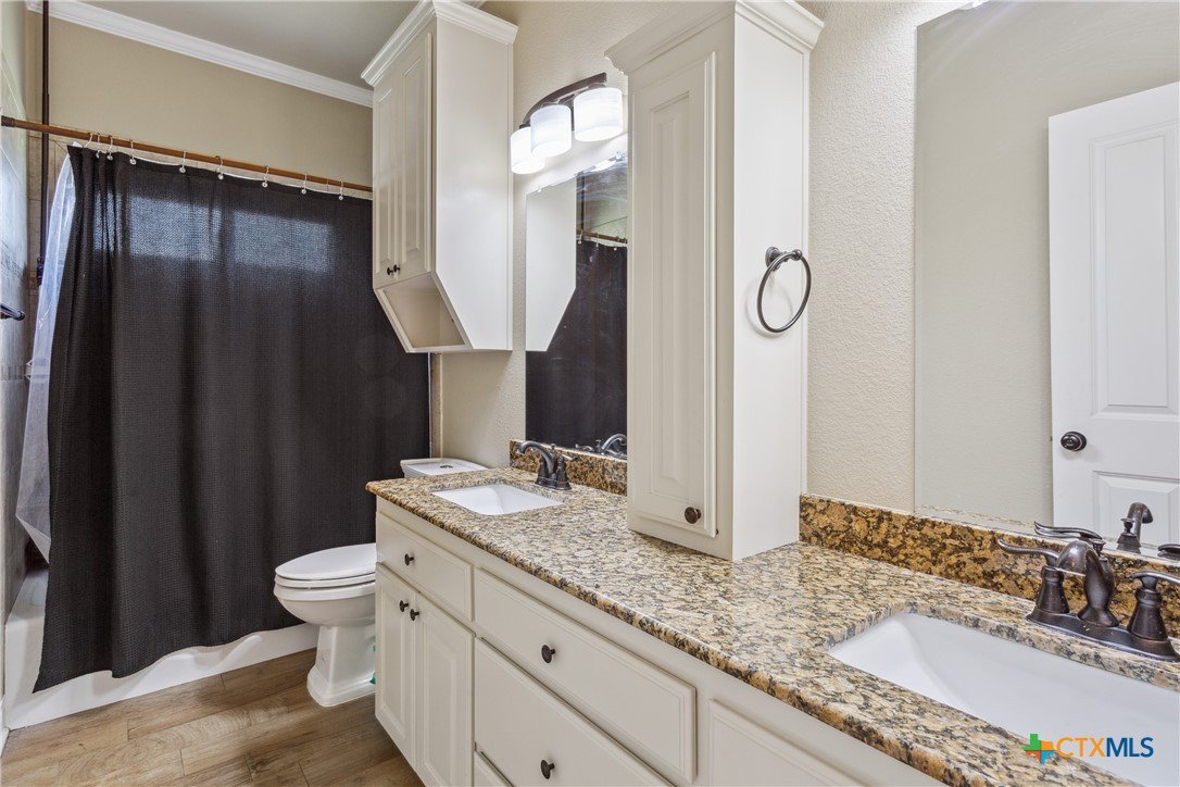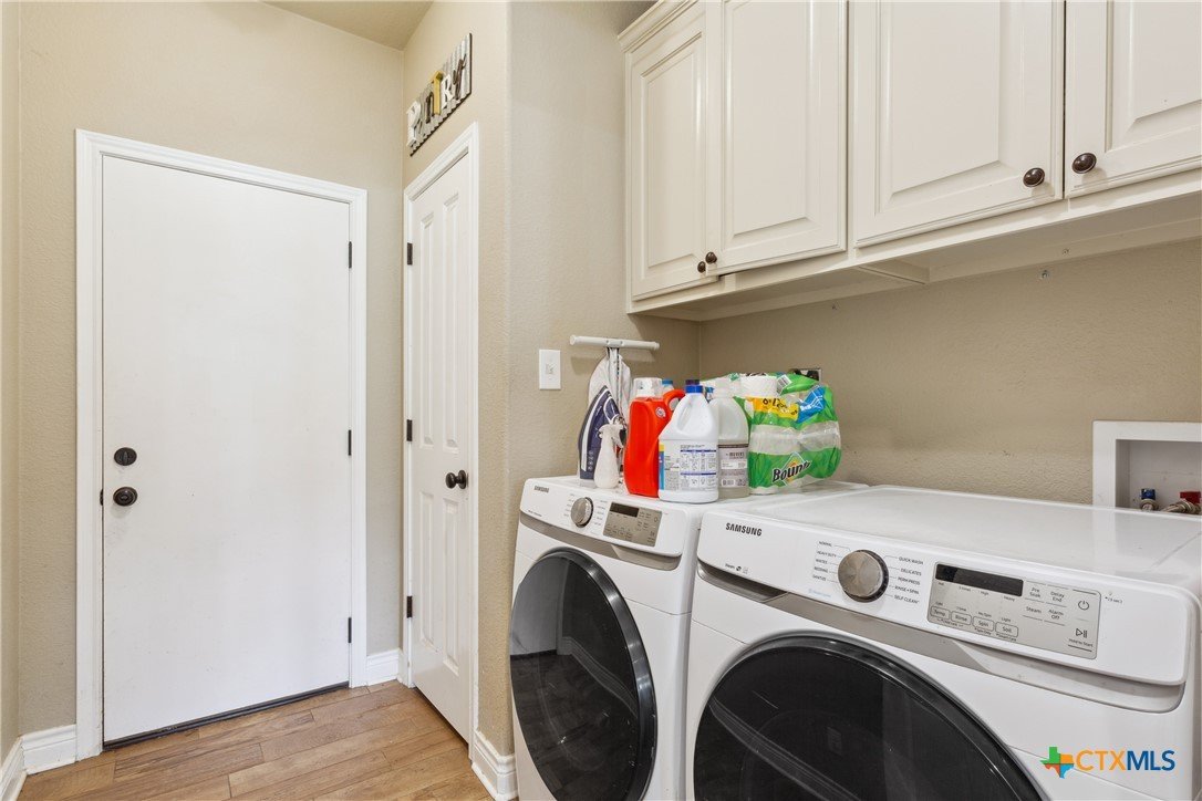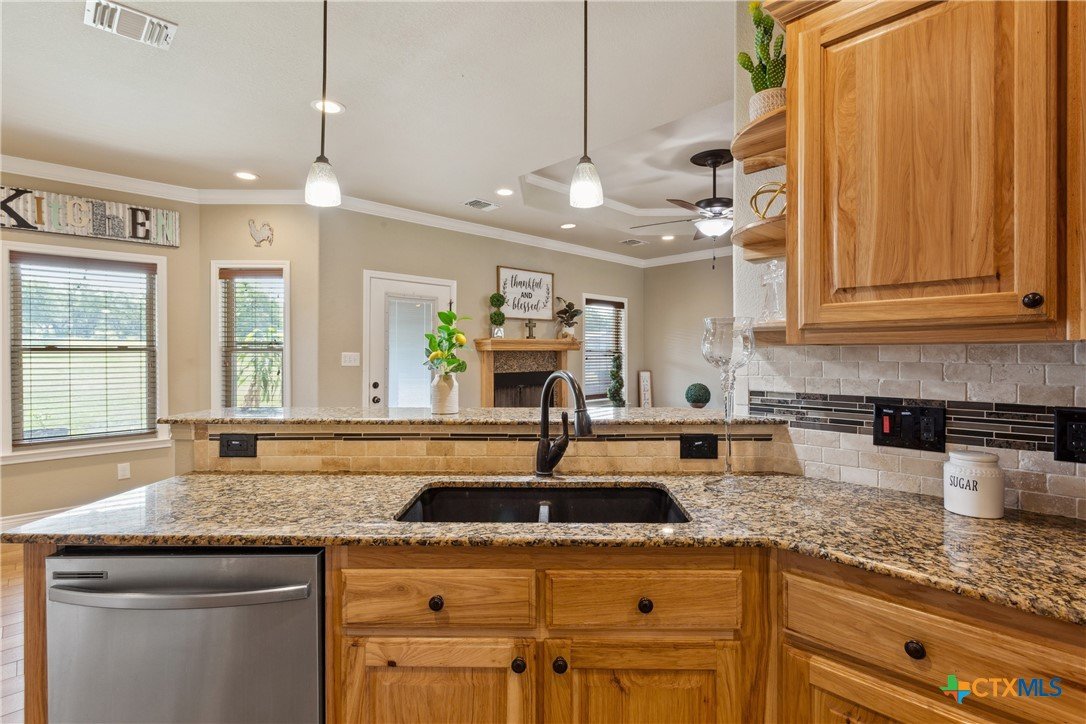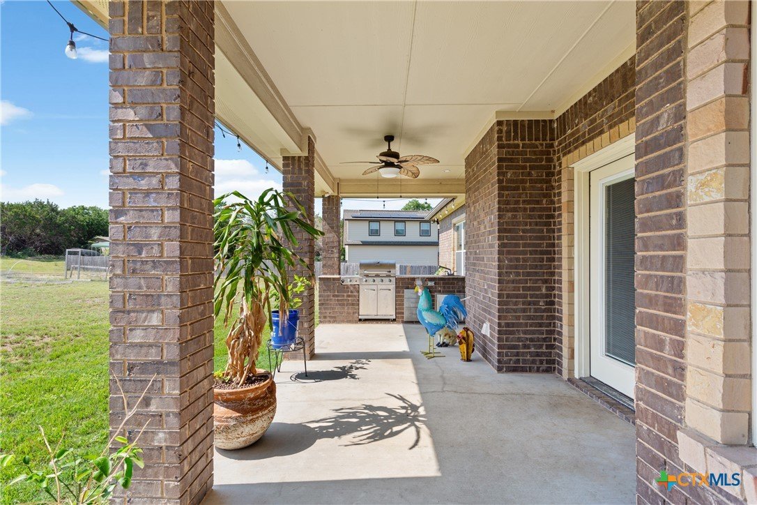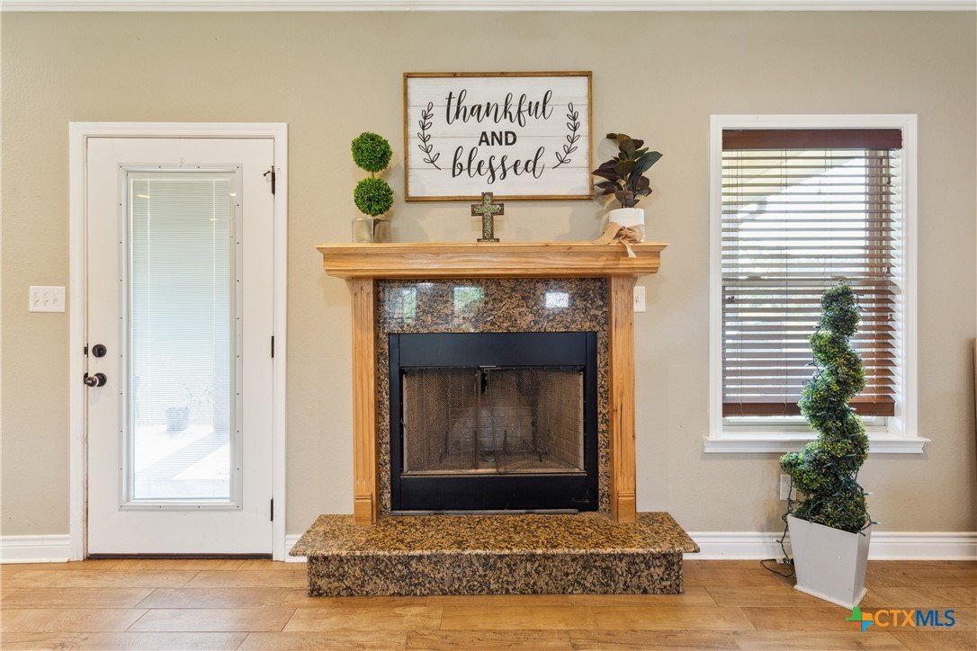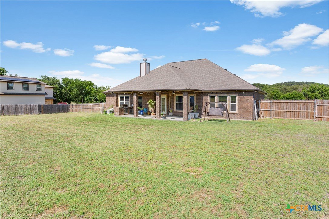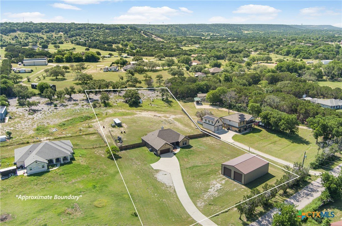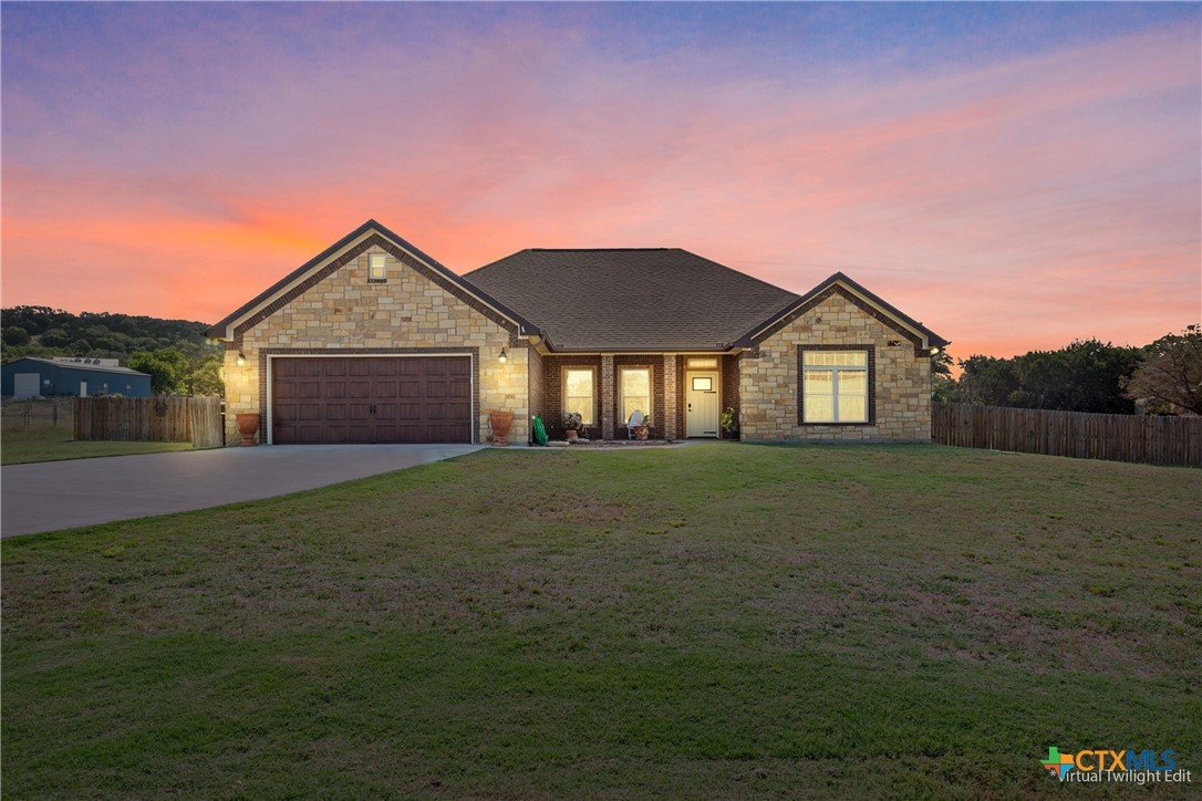 Experience the serenity of country living with the convenience of city access in this custom-built 4-bedroom, 2-bathroom home spanning 2,437 sq ft. Nestled on over 2 partially wooded acres just beyond the city limits, this 2016 residence offers a harmonious blend of comfort and functionality. Step inside to discover wood-look tile flooring throughout, granite countertops, rich custom cabinetry, and two dining areas. The living room is anchored by a warm, wood-burning fireplace, creating an inviting atmosphere for family gatherings. The spacious primary suite serves as a private retreat, featuring a whirlpool soaking tub, separate shower with a rain shower head, and ample closet space. Over the garage, a fully finished and climate-controlled attic space provides a versatile bonus area—perfect as a game room, home office, or kids’ hangout. For hobbyists or professionals, the property boasts a sprawling 50’x40’ insulated double-bay workshop, complete with electricity, pre-plumbed for a bathroom, 12 ft roll up doors, and ideal for various projects. Outdoor living is enhanced by a built-in BBQ area, perfect for weekend cookouts and family gatherings, all while enjoying peaceful views of the surrounding landscape. Located less than a mile from Hwy 190, this home offers easy access to Killeen, Fort Cavazos, and the airport, combining the tranquility of rural life with the benefits of urban proximity. BONUS: Seller’s current mortgage is assumable at just 2.75% interest! Subject to lender approval, this could be a game-changer for your monthly budget. Don't miss out on this great opportunity - Call today to schedule a viewing!