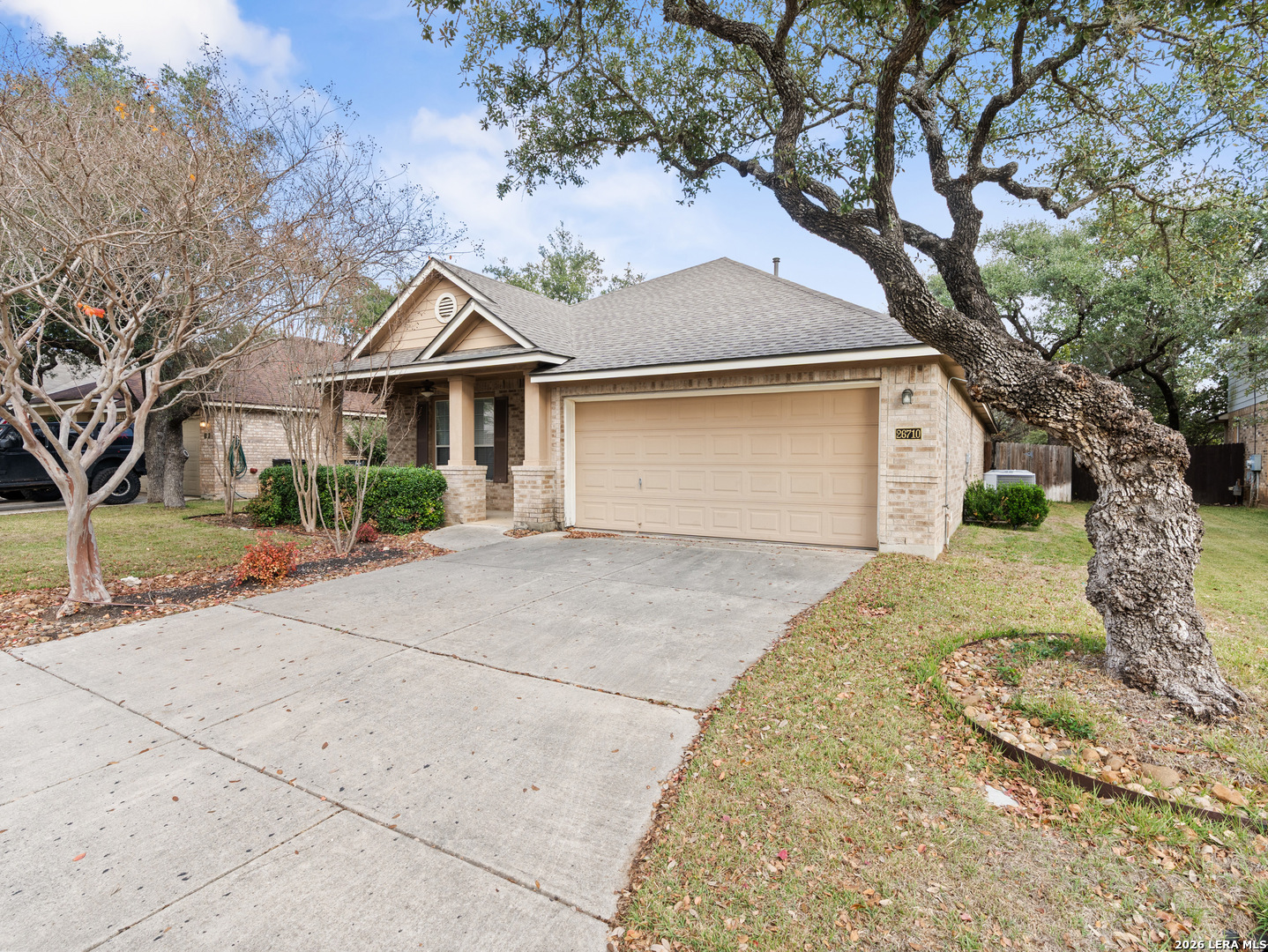 Welcome to 26710 Trinity Hill, a well-maintained 3-bedroom, 2-bath home offering 2,087 square feet of comfortable living space in a beautiful and growing North San Antonio area. This home features an open-concept layout with high ceilings and a spacious kitchen that flows seamlessly into the main living area, making it ideal for both everyday living and entertaining. The floor plan feels open and functional, with well-sized bedrooms and a private primary suite. A two-car garage provides added convenience and storage. Conveniently located near major highways, shopping, dining, and schools, while still maintaining a peaceful residential feel. A solid opportunity for anyone looking for space, layout, and location.