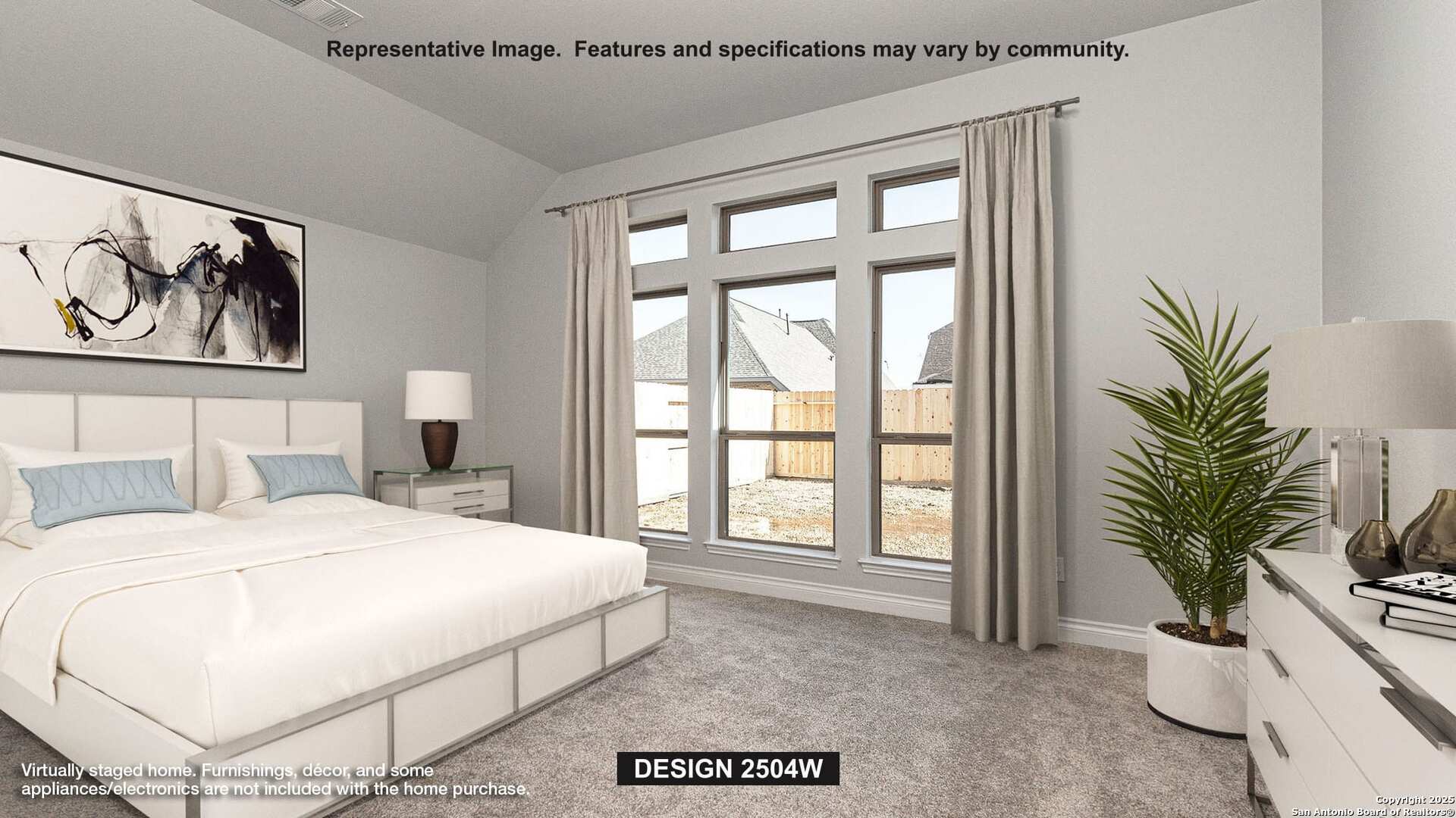 Home office with French doors set at entry with 12-foot ceiling. Extended entry leads to open kitchen, dining area and family room. Kitchen features corner walk-in pantry, a 5-burner gas cooktop, generous counter space and island with built-in seating space. Dining area flows into family room with wall of windows. Primary suite includes double-door entry to primary bath with dual vanities, garden tub, separate glass-enclosed shower and two large walk-in closets. A guest suite with private bath adds to this spacious one-story home. Extended covered backyard patio and a 5-zone sprinkler system. Mud room off two-car garage.