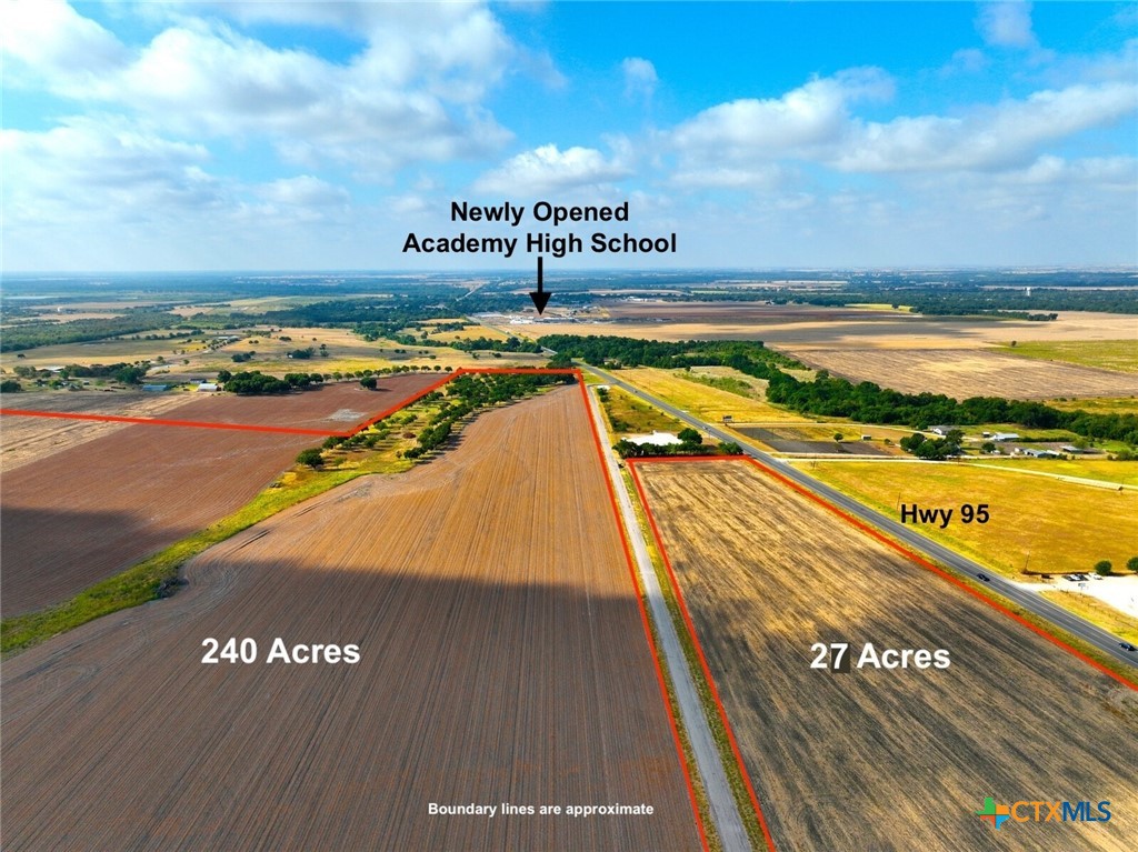 *Under Contract, Accepting Backup Offers* Presenting Academy Acres, located just north of Little River-Academy featuring two prime parcels totaling approximately 267 acres, just 3.5 miles from the Temple City Limits. The 27-acre tract has optimal frontage of 2,540 feet on TX Hwy 95 near the newly-opened Academy High School. The large 240-acre parcel of prime agricultural acreage on Acres Road is currently a working farm and is ideal to keep in agricultural production while waiting for future opportunities. May be sold in smaller parcels. Academy Acres is partially in Little River-Academy City Limits, and partially in the Temple ETJ. Knob Creek winds its way down the east perimeter creating a natural wildlife habitat. With 2,540 feet of frontage on Hwy 95, 5,400 feet of frontage on Acres Road, 2,700 feet of frontage on Knob Creek Road, and flat to gently sloping topography, this property is ideally shaped and positioned for optimal access and development. Take advantage of the small-town charm coupled with regional growth. Three CCNs border the property. Seller-imposed restrictions to be drafted. Buyer/Buyer’s Rep to verify all information deemed important prior to submitting an offer. (See 240-acre listing 567732)