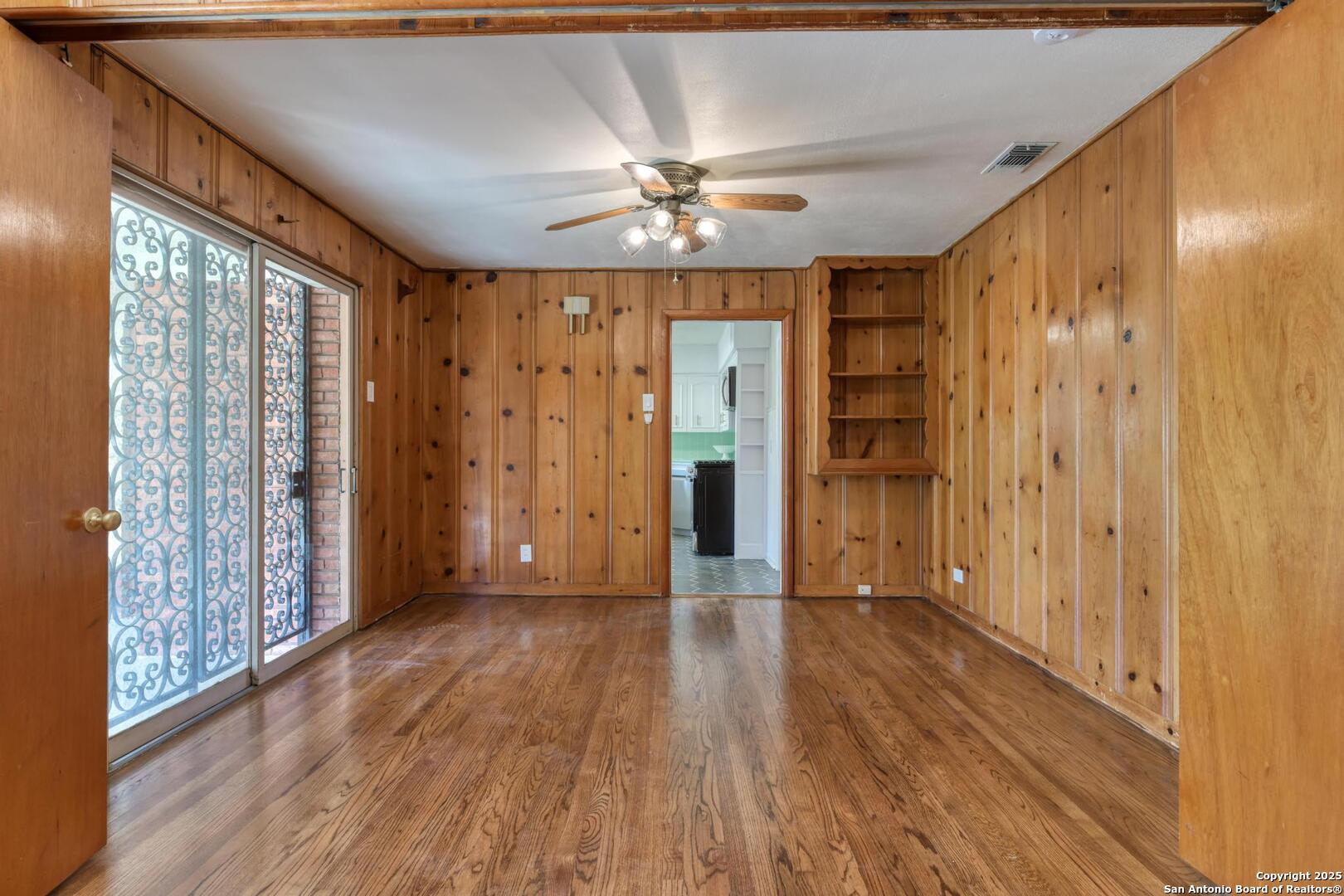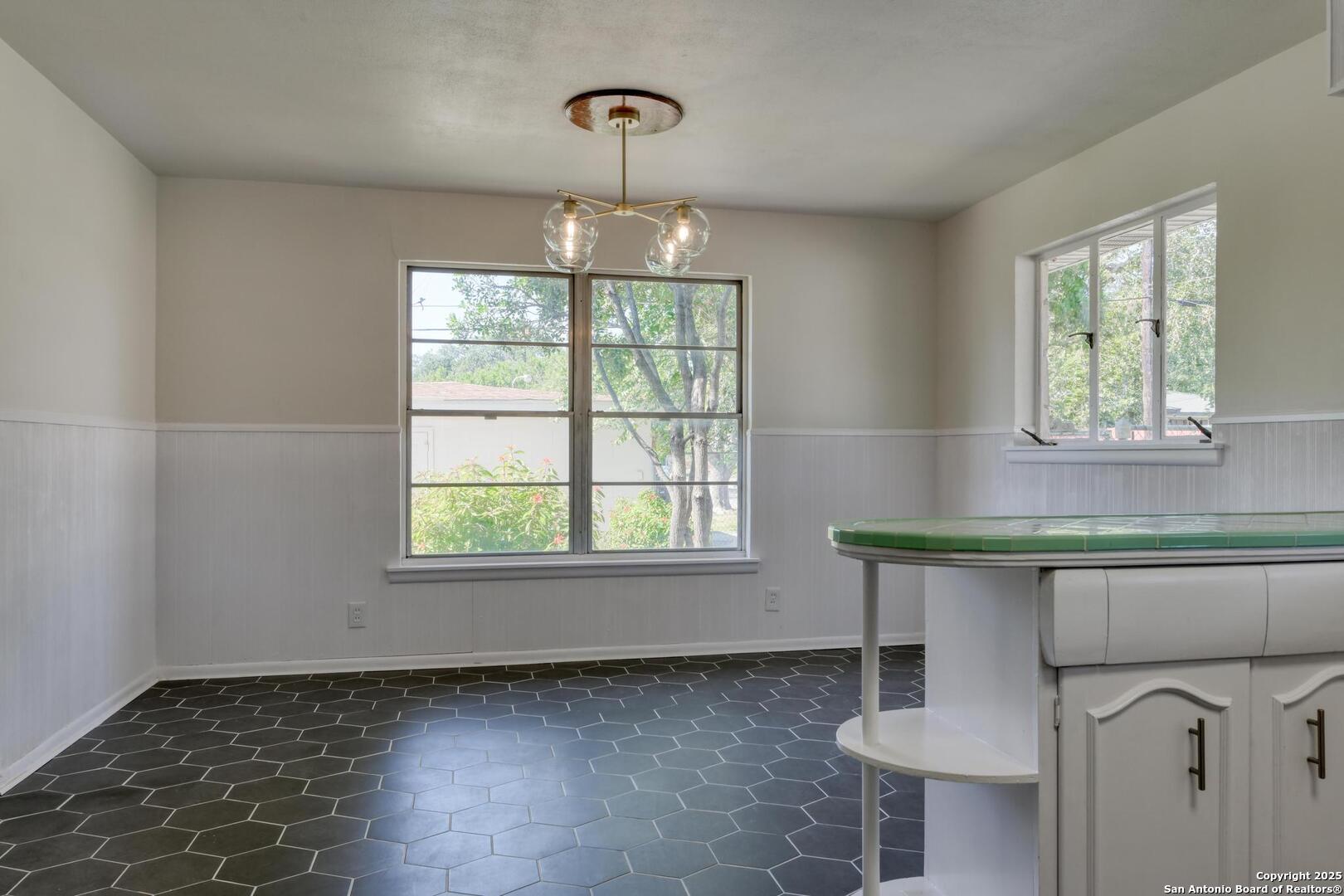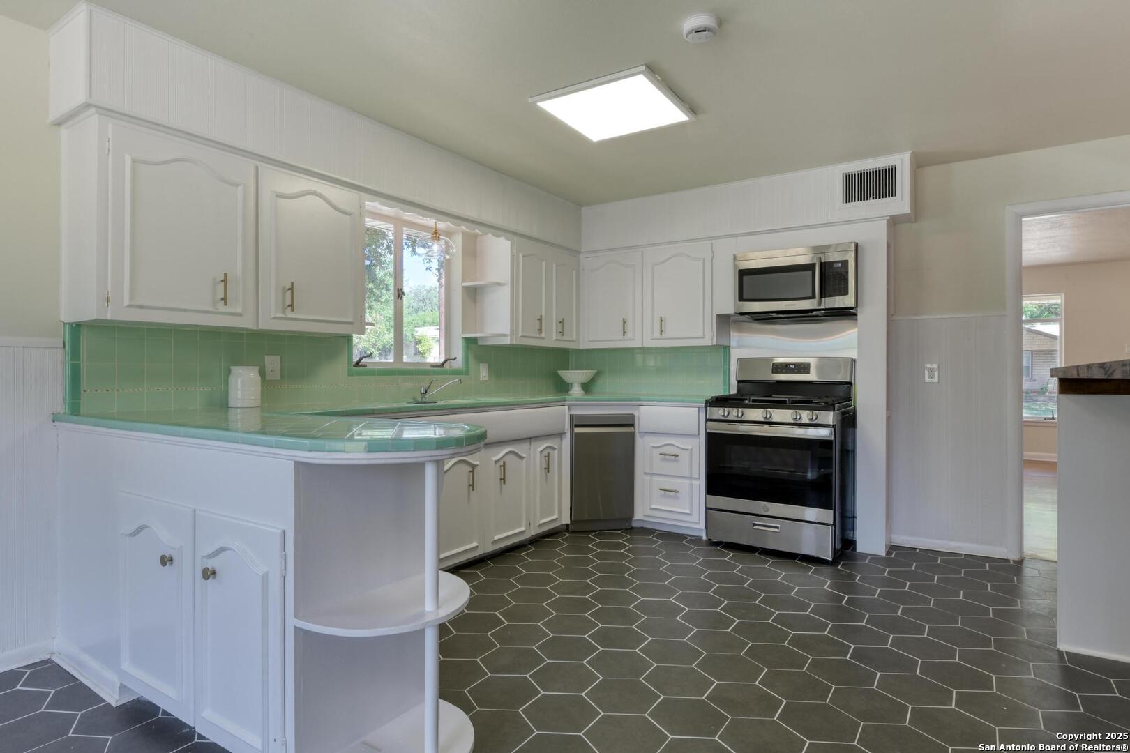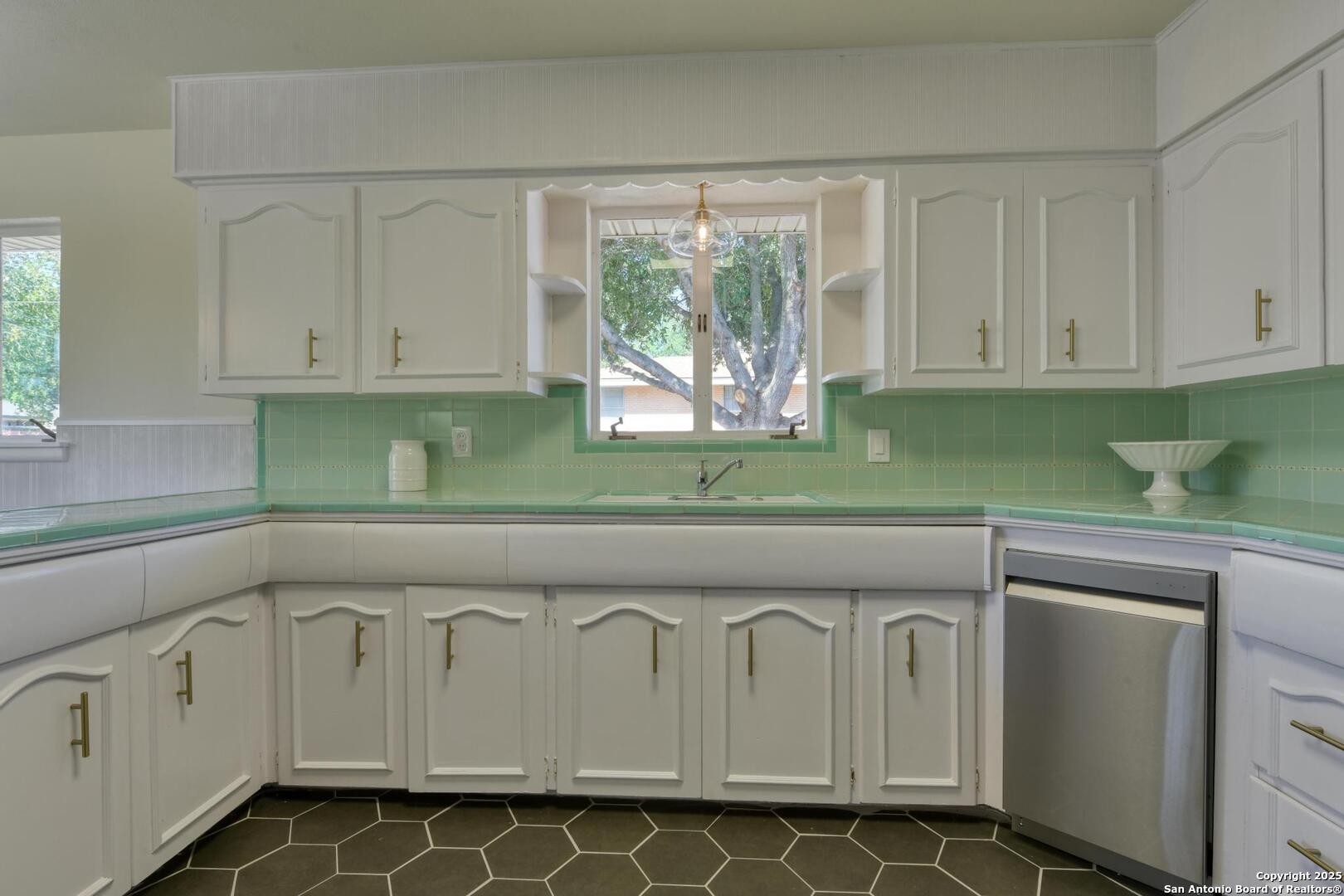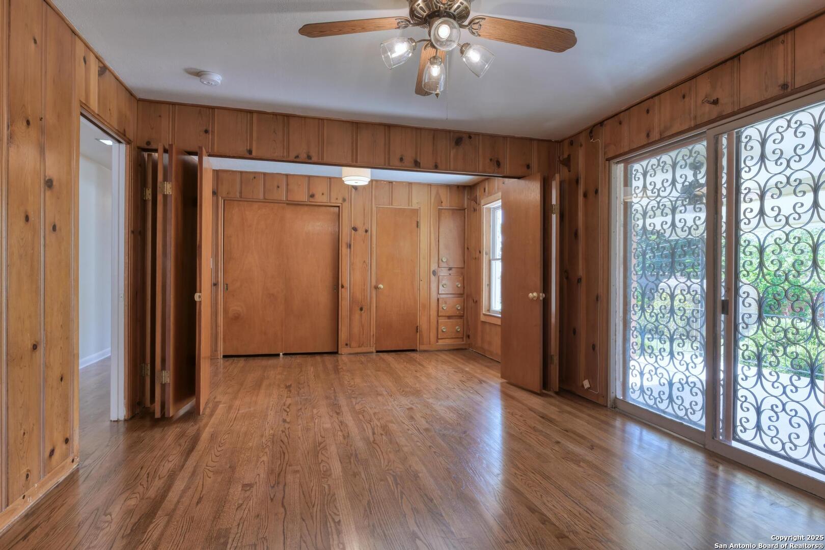 LESS than 5 miles to downtown SA, this Mid Century Modern home is MOVE IN READY! Recently refreshed but we left some of the original things like the hardwood flooring that we refinished, tile in kitchen & baths and real wood paneling to keep the vibe going! All masonry, no siding! Gorgeous oversized windows run throughout the home. Recent renovations include: Light fixtures, Plumbing fixtures, Gas range, Dishwasher, Interior Paint and Front Door. The home sits on a .20 acre, corner lot with a detached 2 car garage. Relax on the large covered back patio that overlooks a spacious backyard with Greenhouse. No carpet. The previous owner lovingly cared for this home for over 60 years! Solid home, they don't build them like they used to! Walking distance to Highlands HS and less than 5 miles to downtown SA.
