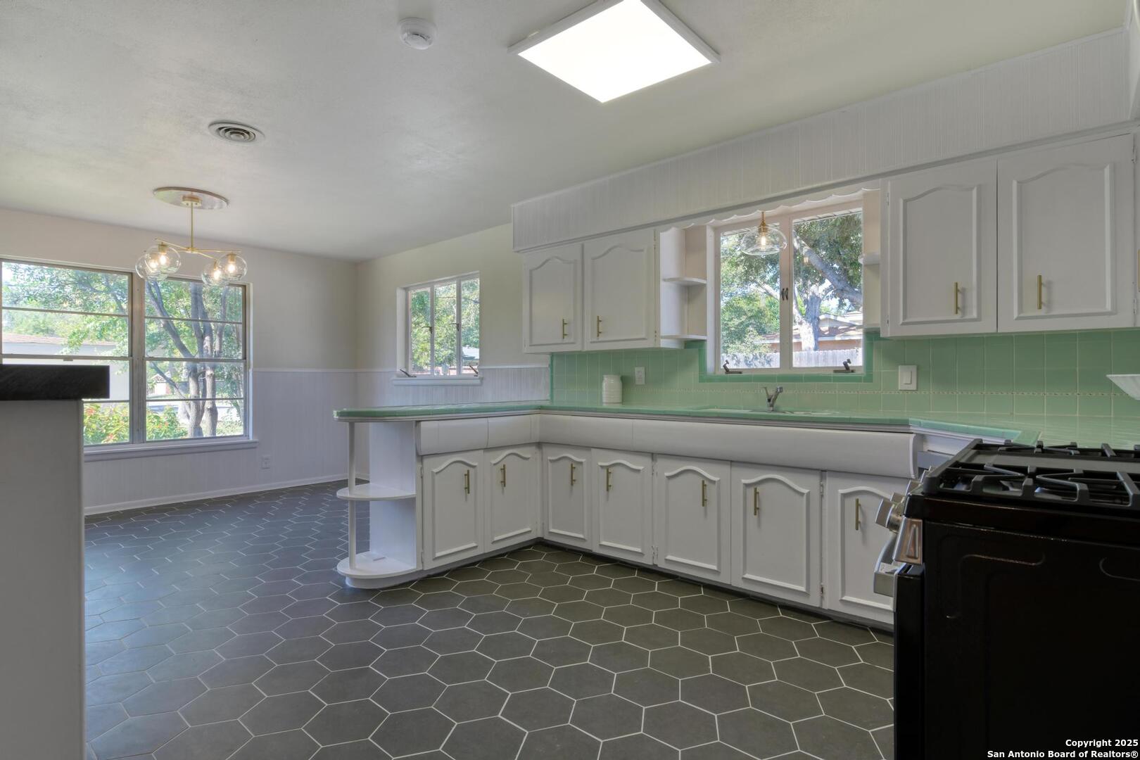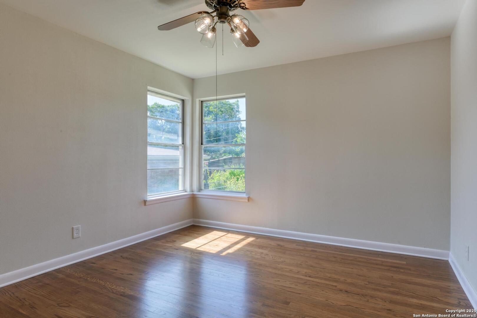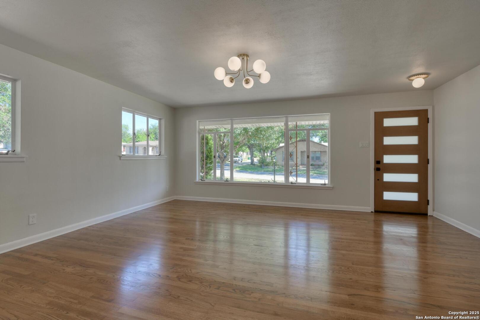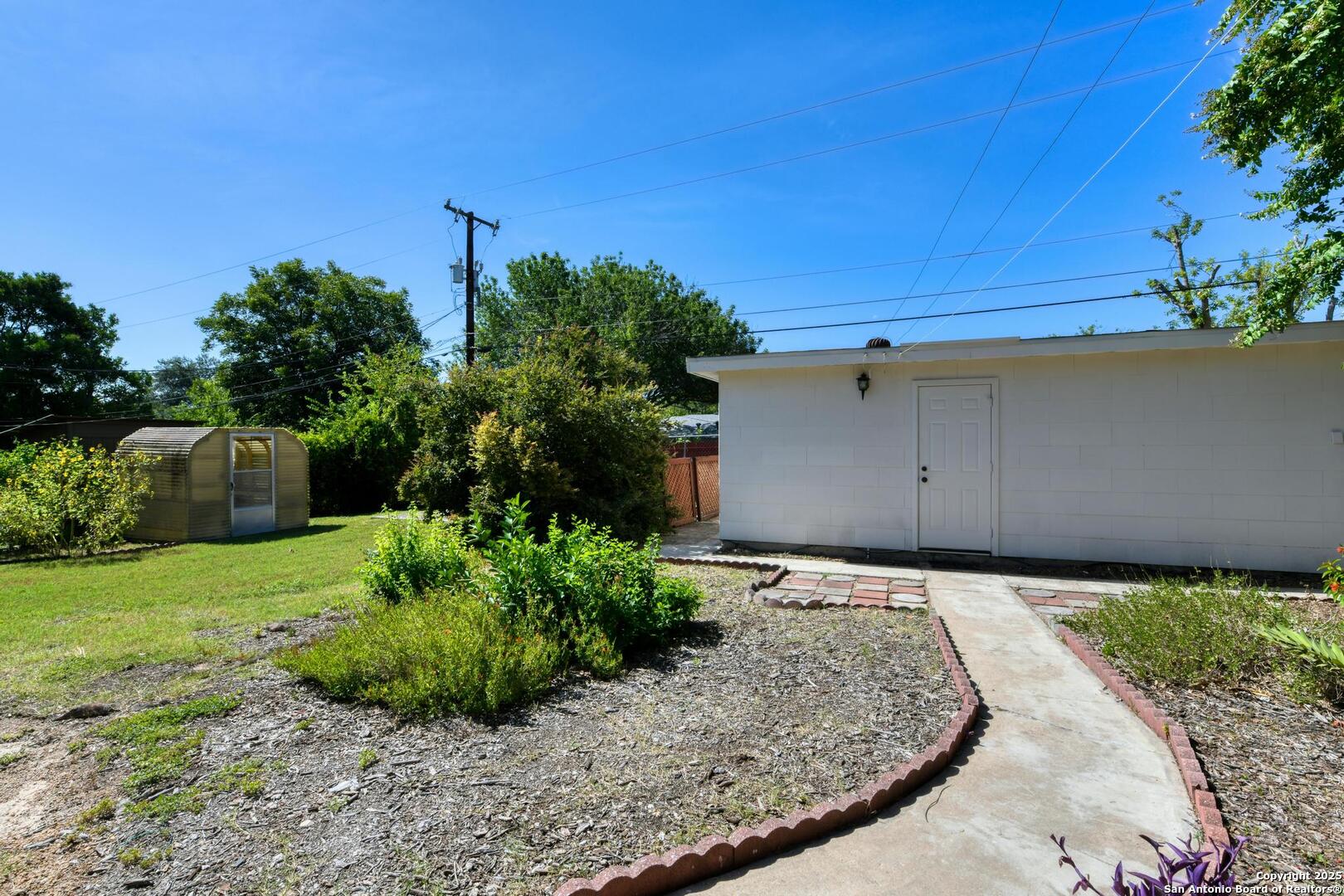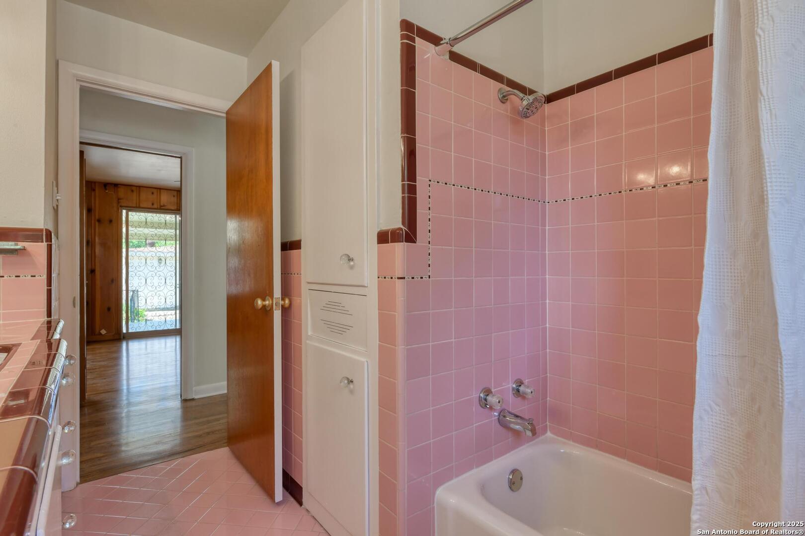 LESS than 5 miles to downtown SA, this Mid Century Modern home is MOVE IN READY! Recently refreshed but we left some of the original things like the hardwood flooring that we refinished, tile in kitchen & baths and real wood paneling to keep the vibe going! All masonry, no siding! Gorgeous oversized windows run throughout the home. Recent renovations include: Light fixtures, Plumbing fixtures, Gas range, Dishwasher, Interior Paint and Front Door. The home sits on a .20 acre, corner lot with a detached 2 car garage. Relax on the large covered back patio that overlooks a spacious backyard with Greenhouse. No carpet. The previous owner lovingly cared for this home for over 60 years! Solid home, they don't build them like they used to! Walking distance to Highlands HS and less than 5 miles to downtown SA.