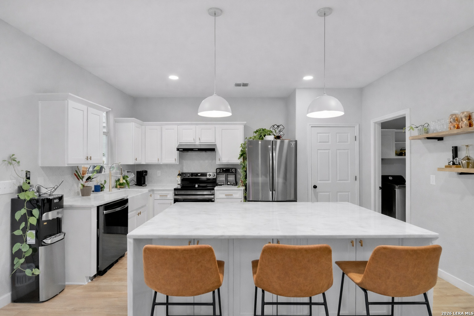 Take advantage of an assumable VA loan at an incredible 2.99% interest rate. This beautifully upgraded two-story home is located in the well-established Miller Ranch community and offers 3 bedrooms, 2.5 bathrooms, and 1,948 square feet of thoughtfully designed living space. One of the standout features of this property is the solar panel system, delivering outstanding energy efficiency with average annual electric bills under $80 per month, providing substantial long-term savings for the homeowner. Updated enhancements include luxury vinyl plank flooring, and updated lighting and fixtures throughout. The modern kitchen is designed to impress, featuring a sleek island with a built-in microwave, waterfall-edge marble countertops, and upgraded appliances, perfect for both daily living and entertaining guests. Additional improvements include renovated bathrooms and radiant barrier insulation in the attic for added energy efficiency. The outdoor space offers a private backyard retreat complete with a covered patio, newly stained deck, ideal for relaxing evenings or hosting gatherings. Conveniently situated near Randolph AFB, Fort Sam Houston , San Antonio Military Medical Center, I-10, Loop 410, shopping, dining, and within Judson ISD, this home combines style, efficiency, and an exceptional location.