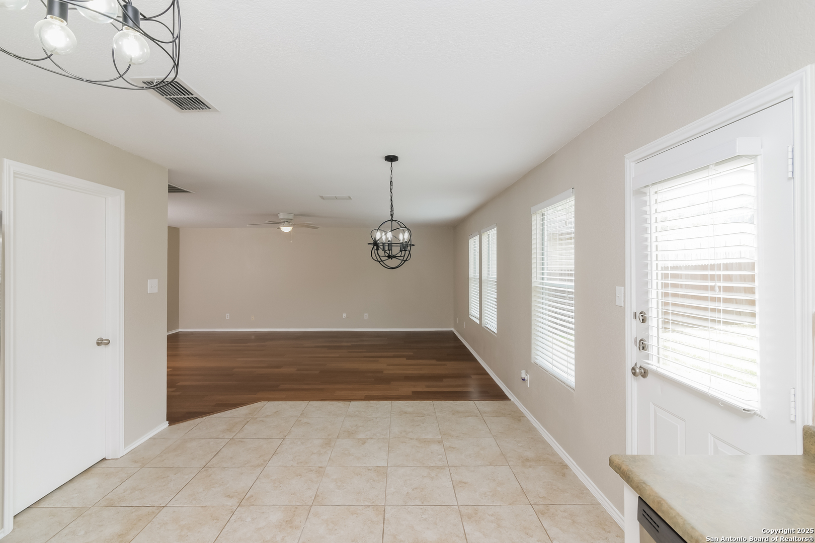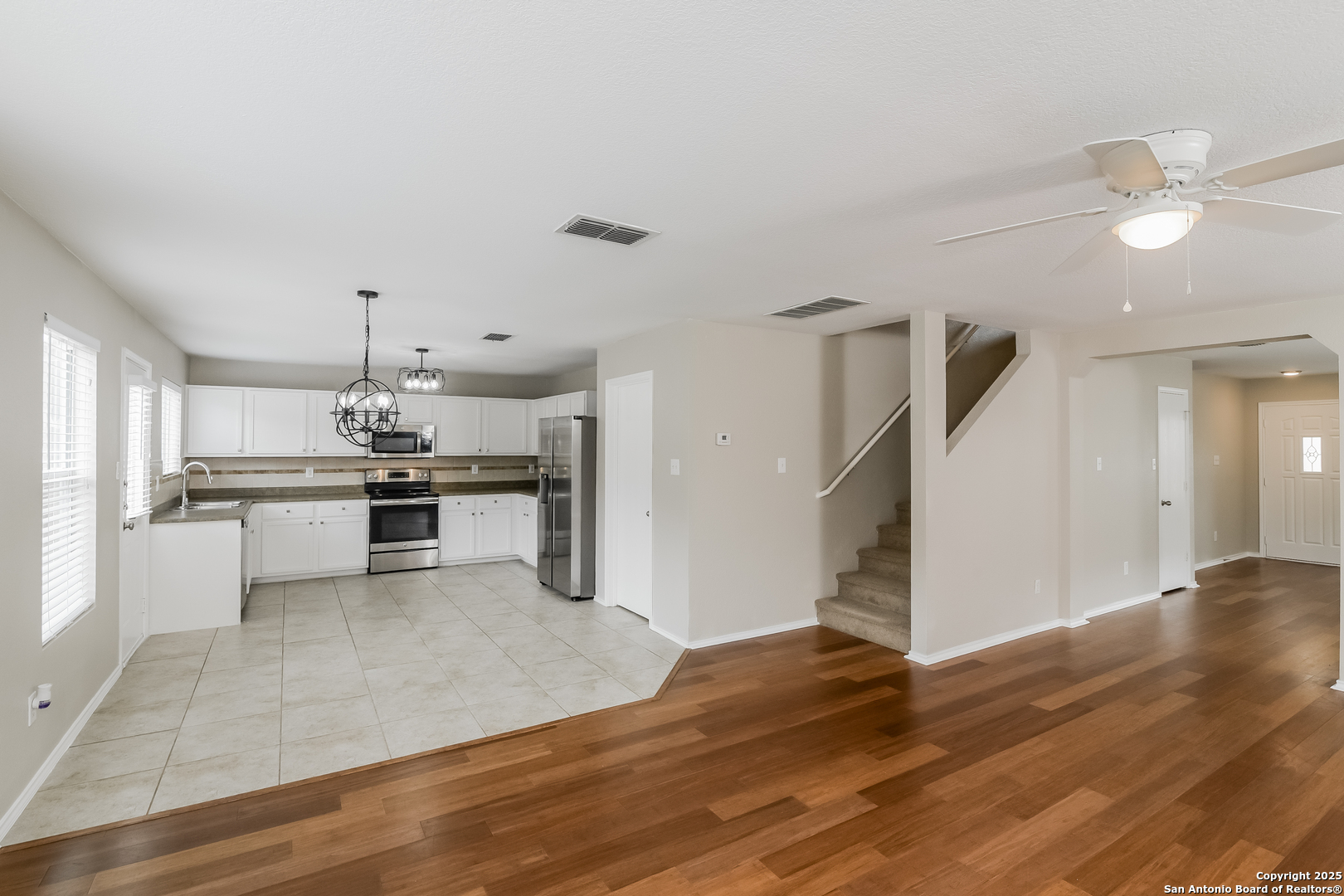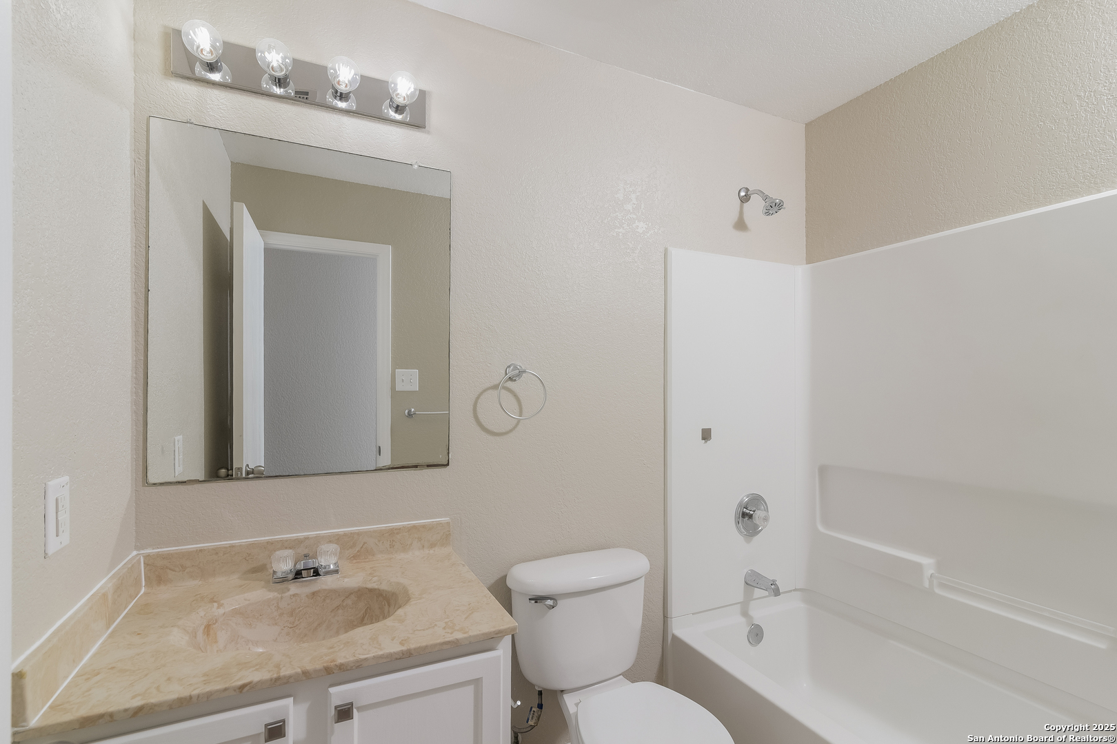 Welcome to this beautifully maintained 4-bedroom, 2-bath home located in the highly sought-after Terraces at Bulverde, just minutes from top-rated schools, shopping, dining, and major highways. Situated on a quiet street, this charming one-story features an inviting open-concept layout with abundant natural light throughout. You'll love the spacious living area with high ceilings that flows seamlessly into the island kitchen-complete with granite countertops, stainless steel appliances, tile flooring in all wet areas, and plenty of cabinet space. The private primary suite offers a generous walk-in closet, dual sinks, and a relaxing garden tub with separate shower. This home is move-in ready and located in a desirable North San Antonio community known for its convenience, peaceful surroundings, and easy access to Hwy 281 and Loop 1604.