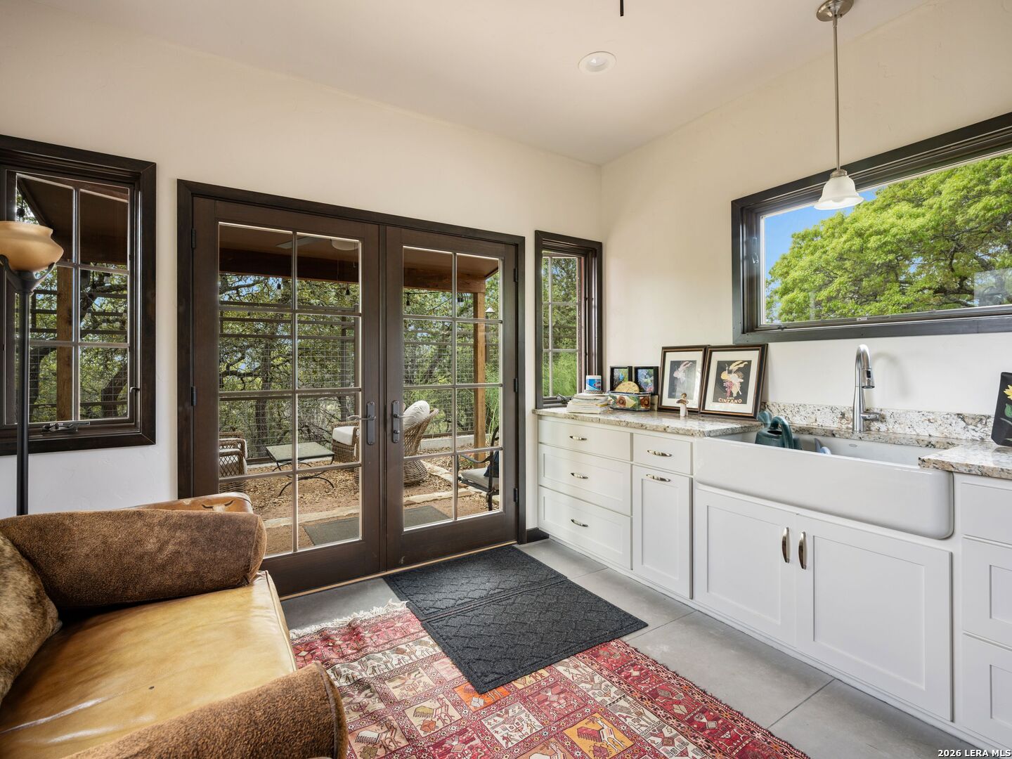 Perched gracefully on a hillside in the heart of the Texas Hill Country, this custom-designed residence-created by Leslie McCoy Anderson of MSA Architecture & Interiors-offers a rare opportunity to experience the serenity and natural splendor of Utopia, Texas. Set on approximately 29 acres, the property captures sweeping canyon vistas and rolling hill views that shift with the seasons, creating a living backdrop of extraordinary beauty. Crafted in 2006 by a respected local custom builder, the home blends seamlessly into its surroundings. Thoughtfully engineered retaining walls and multiple patio spaces were designed to frame the landscape, offering ideal settings for sunset watching, morning coffee, and unforgettable stargazing under the Hill Country sky. Inside, the home showcases a level of craftsmanship that is both refined and inviting. Scored concrete floors, luxurious countertops, and custom knotty alder cabinetry anchor the interiors with warmth and durability. The open floor plan flows effortlessly, creating a natural gathering space for entertaining or quiet evenings at home. A standout feature is the flex room located just off the kitchen and family area. Designed with versatility in mind, this space includes builtin desk areas and custom bookshelves, making it perfect for a home office, creative studio, study lounge, or an additional living area. Whether you envision a dedicated workspace, a reading retreat, or a fitness room, the flexibility of this space allows it to adapt beautifully to your lifestyle. The kitchen is both functional and elegant, featuring custom cabinetry designed to accommodate large dishes and serveware. An impressive 8 foot wine rack adds a striking architectural element and is sure to delight the wine enthusiast. Overhead, a durable 24gauge Kynar standing seam roof provides long-lasting protection and peace of mind. Outdoors, the property becomes a private sanctuary for nature lovers. Deer, turkey, and a rich variety of birdlife roam freely among clusters of Live Oak and Spanish Oak trees. A fully fenced 2,000 +_squarefoot garden area-complete with custom eight foot fencing and an airconditioned garden building-offers an exceptional space for cultivating vegetables, flowers, or specialty plantings. A paved driveway leads from the gated entrance to the home, enhancing both convenience and privacy. Additional features such as water storage and a water softener system support comfortable, self-sufficient living. This exceptional Hill Country retreat offers a rare blend of luxury, privacy, and natural beauty. From its architectural pedigree to its breathtaking views and thoughtful interior design, every element invites you to slow down, breathe deeply, and savor the tranquility of Utopia. Your private showing awaits.