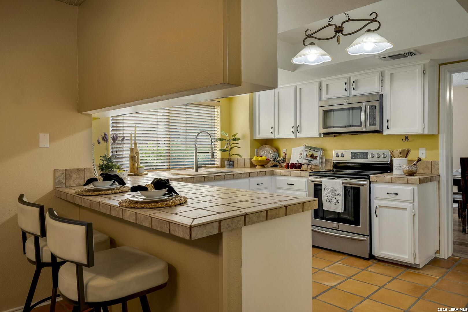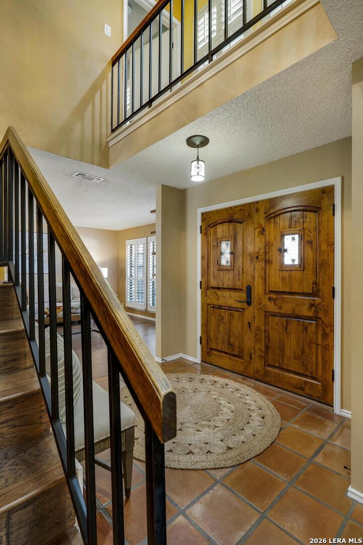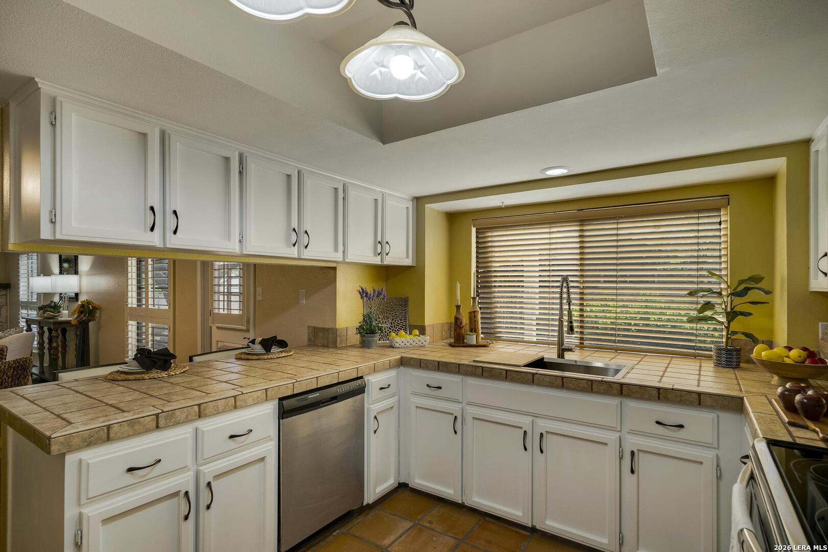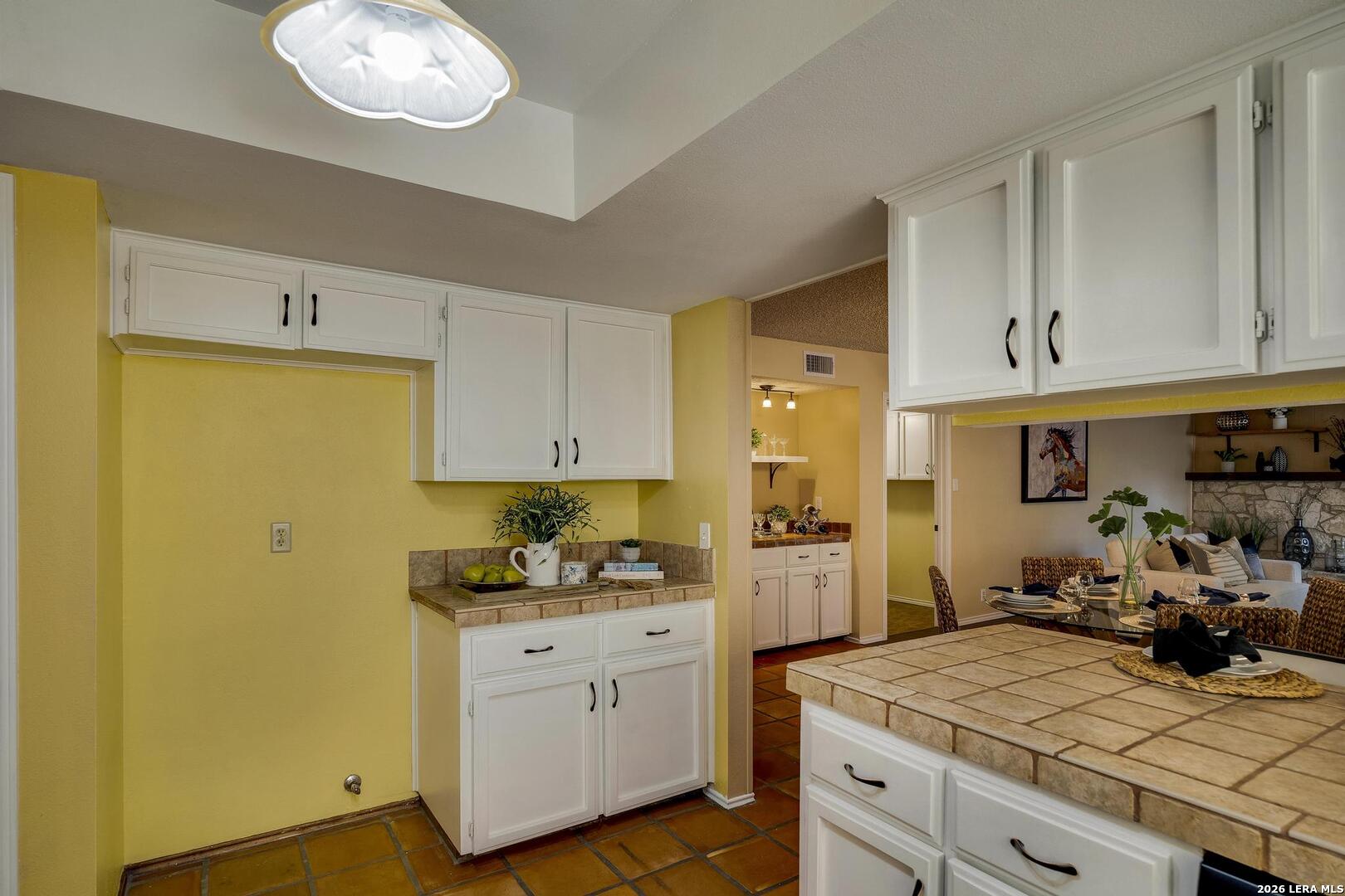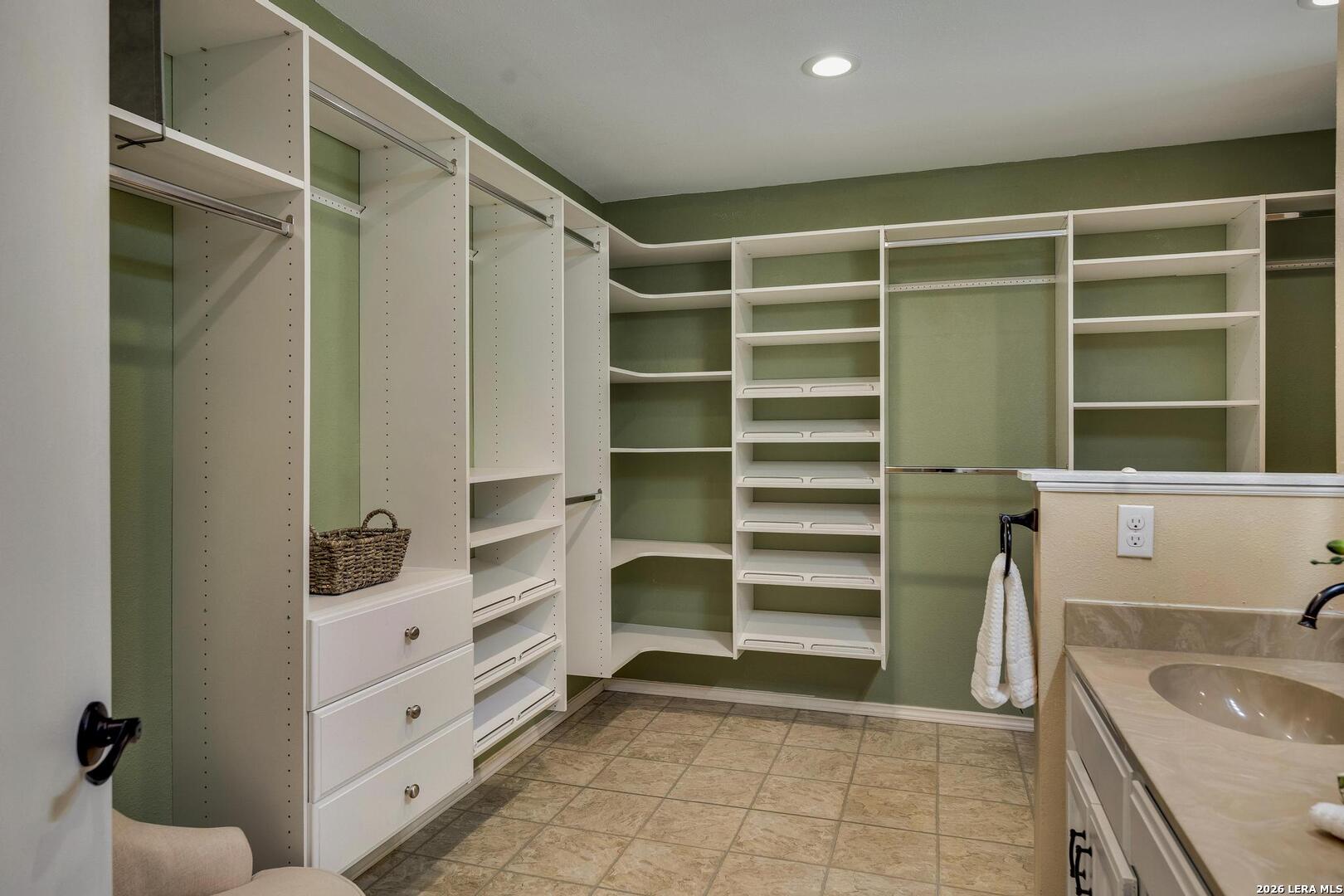 Elegant Spanish-style home with modern updates in desirable North Central San Antonio. Surrounded by mature oak trees, this beautifully maintained property features engineered wood flooring throughout, classic Saltillo tile, custom wood entry doors, plantation shutters, and a stunning floor-to-ceiling stone fireplace with vented gas logs. The spacious kitchen offers stainless steel appliances, generous counter space, and a breakfast bar, while the oversized primary suite includes a custom walk-in closet with built-ins. Enjoy the covered back patio, beautifully landscaped front and back yard, zero-scaped backyard for low-maintenance living, water softener, and 3-car garage. A rare blend of timeless character, warmth, and modern convenience.