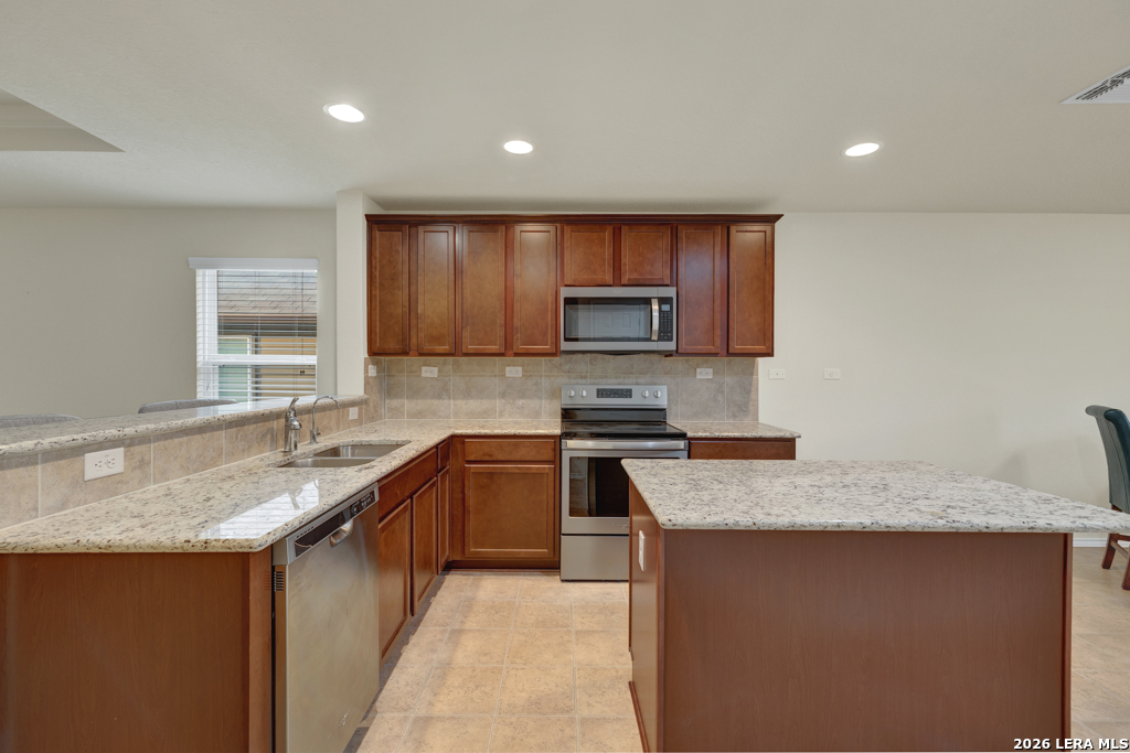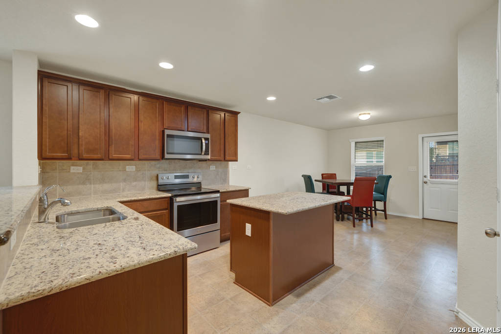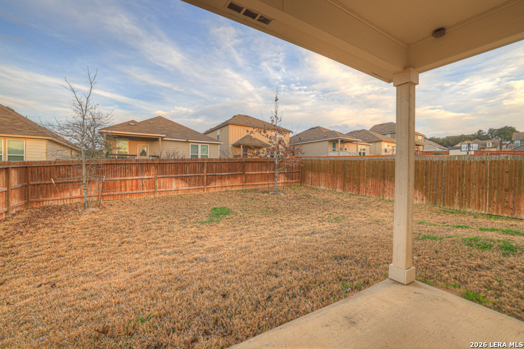 Welcome home to 27320 Sterling Silver, nestled in the prestigious Sterling Ridge subdivision of the North San Antonio Hill Country, this turn-key residence offers the perfect blend of suburban tranquility and urban convenience. Positioned ideally between Blanco Rd. and Hwy 281, you are mere minutes away from premier dining, medical facilities, and everyday essentials. Approaching the home, you will find a charming covered front porch-your new favorite spot for morning coffee. Inside, the home opens into a bright, seamless floor plan connecting the entryway, living, and dining areas. The heart of the home is the eat-in kitchen, featuring an island, a deep sink, a pantry closet, and an abundance of like-new cabinetry. The primary bedroom, has three large windows that fill the room with natural light and offer views of the private backyard. The en-suite bath features a custom standing shower with natural stone and a spacious walk-in closet. Two additional well-proportioned bedrooms share a full hallway bath, perfect for guests. Step outside to the secondary covered patio, overlooking a backyard designed for both hobbyists and play. Whether you're hosting a BBQ or enjoying a quiet evening, this space is ready for your personal touch. This home is turn-key ready and excited for it's next adventure.