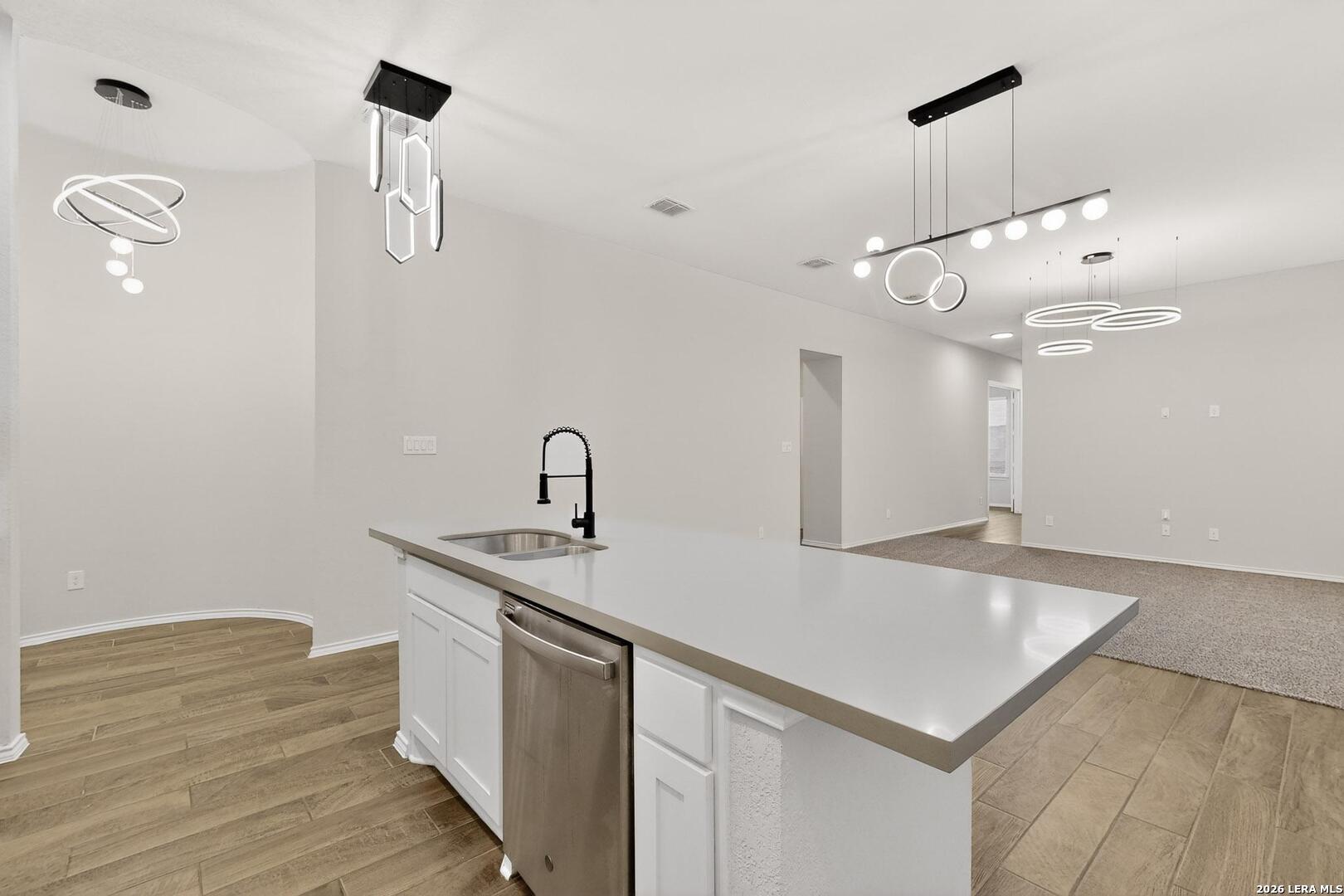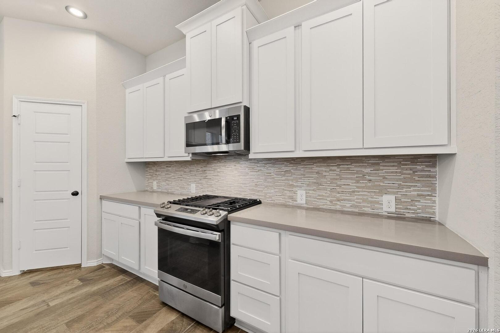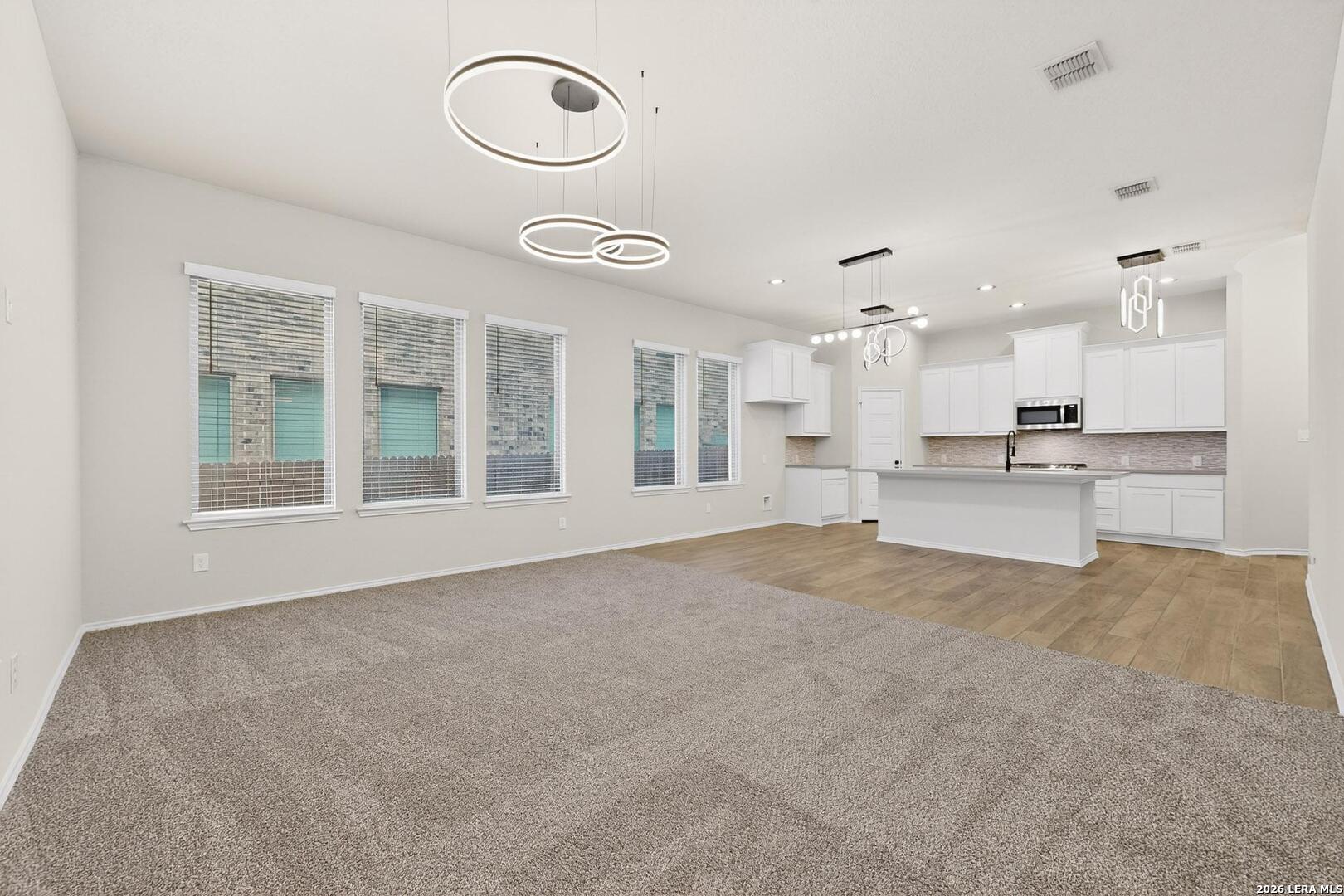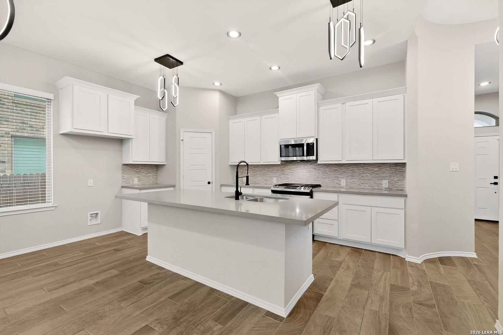 Move in ready home Perry Home, nestled in a vibrant and family-friendly neighborhood, this immaculate residence combines modern comfort with thoughtful design on a greenbelt lot. Boasting three bedrooms/two baths, and flex room that could be an office or 4th bedroom. As you step inside, you're greeted by an open-concept floor plan that seamlessly connects the living, dining, and kitchen areas with high ceilings. The heart of the home, the kitchen, has gas cooking, stainless steel appliance, quartz countertops, stylish tile backsplash and ample cabinet space. Adjacent to the main living space is a versatile study, offering a quiet haven for remote work, reading, or creative pursuits. The study provides a flexible space that adapts to your needs, ensuring functionality and comfort for every member of the household. The primary suite featuring a private en-suite bathroom with separate vanities for added convenience and tiled shower. Recent updates include interior paint, new carpeting, new light & plumbing fixtures, exterior solar lights, and finished garage flooring. Exterior features include covered patio, greenbelt views, solar lights, and gutters. From parks and playgrounds to community pools, every day presents an opportunity for recreation and socializing. The neighborhood is known for its friendly atmosphere, making it a wonderful home. Conveniently located near shopping centers, schools, and major transportation routes, this home combines the tranquility of suburban living with easy access to urban conveniences. Don't miss the chance to make this meticulously crafted and amenity-rich home yours - where every detail has been designed with your comfort and lifestyle in mind.