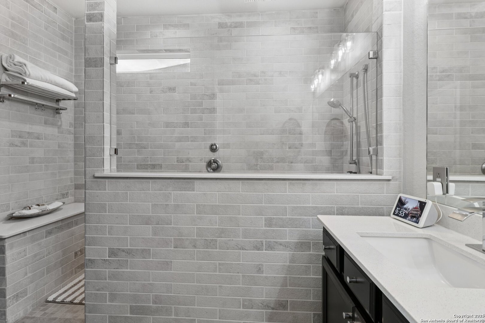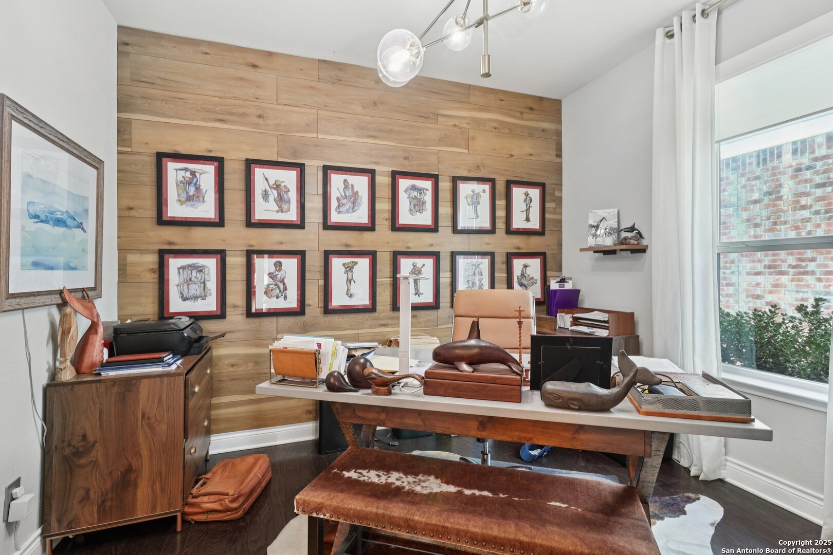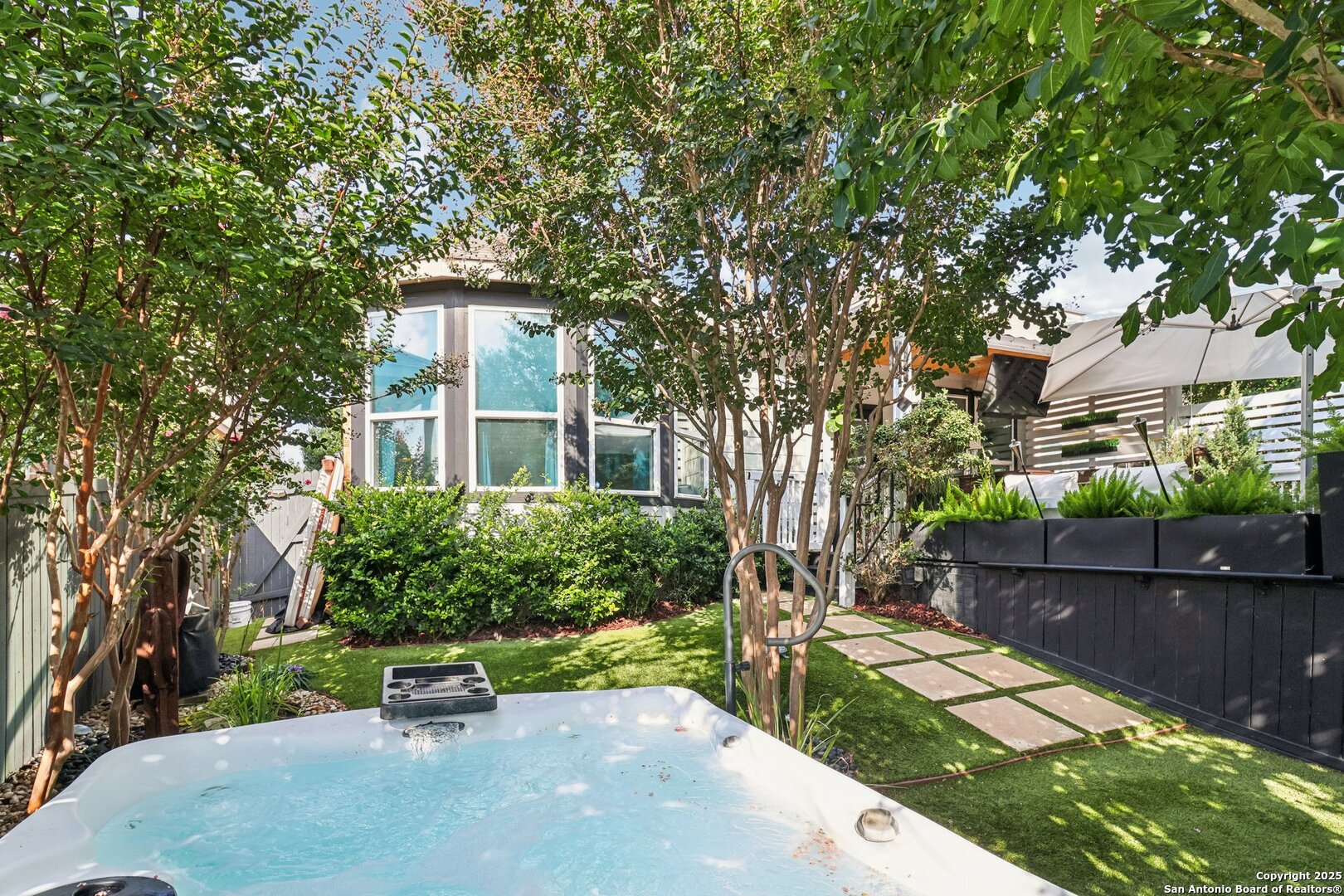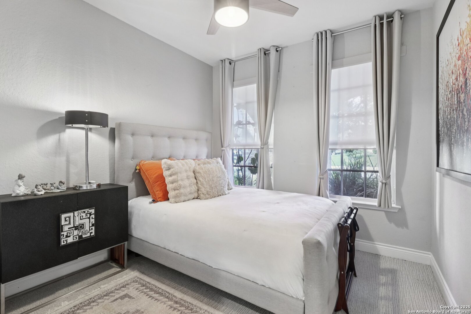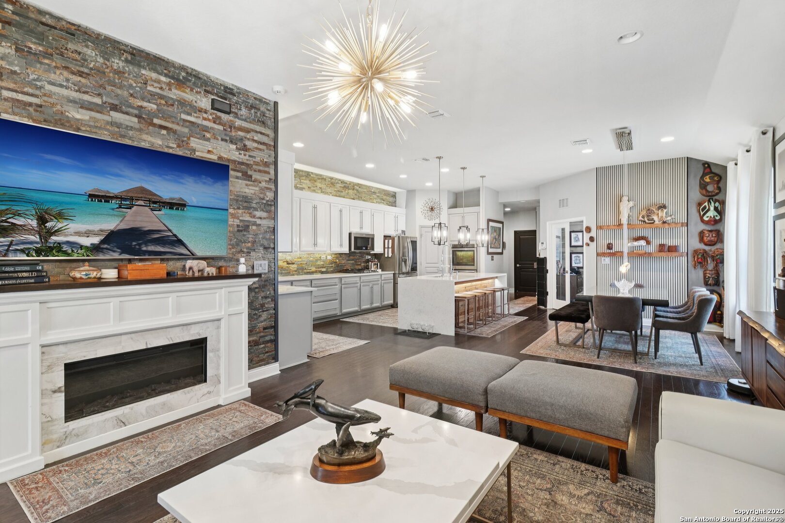 Wow! This home has been beautifully enhanced at every turn! Starting with irresistible curb appeal that features a beautiful insulated garage door, concrete block walk-way, front porch with wood ceiling and heavy wrought iron and glass front door. Step inside to hardwood flooring, gorgeous light fixtures throughout, wood and tile wall treatments and beautiful window coverings! The kitchen has a gas cooktop, extended cabinetry with quartz counter tops, oversized island with waterfall edge, double ovens, 2 wine refrigerators, under-counter lighting and walk-in pantry. The Study has glass french doors. Split Primary bedroom has lovely pendant lights and bath with double vanity & huge walk-in shower. All closets in the home have been cedar lined. Bedrooms 2 & 3 have upgraded, designer carpet. Step out back to a little bit of paradise! Outdoor living at it's finest, with covered, private patio extending to a large deck. The patio has a remote controlled awning for extra shade, stainless steel gas grill, wine fridge and TV. In the artificial turfed backyard you'll find a hot tub and gorgeous landscaping all on a greenbelt for added privacy! Great location, Boerne School district, convenient access to IH 10 and shopping & dining at La Cantera and The Rim.