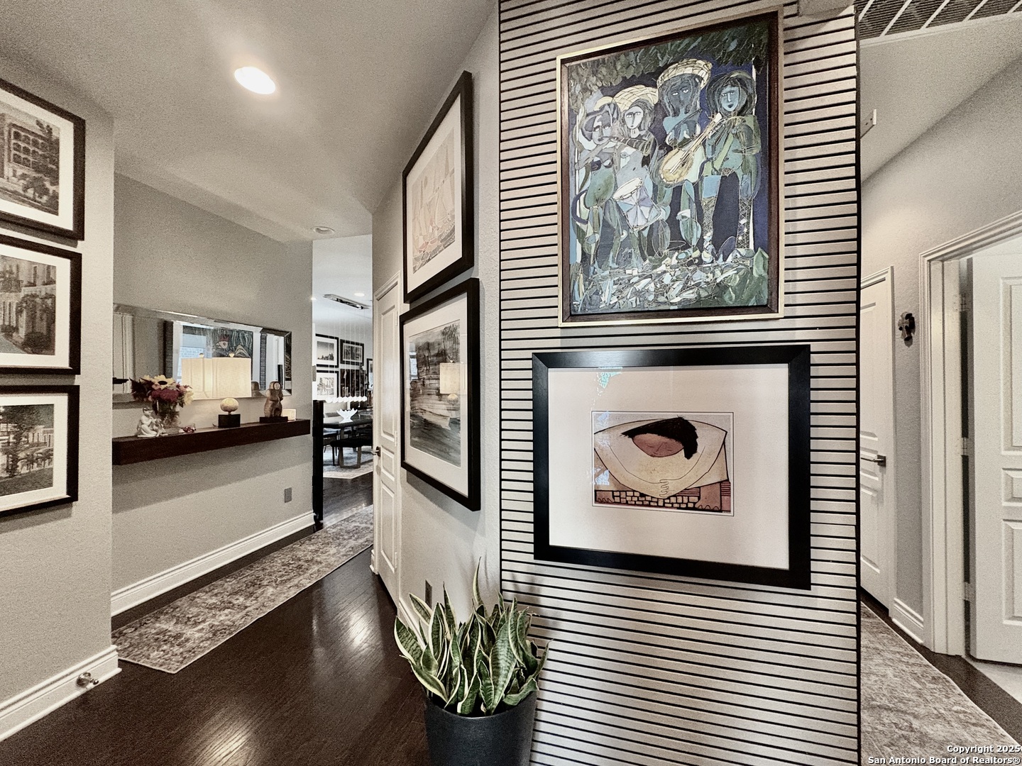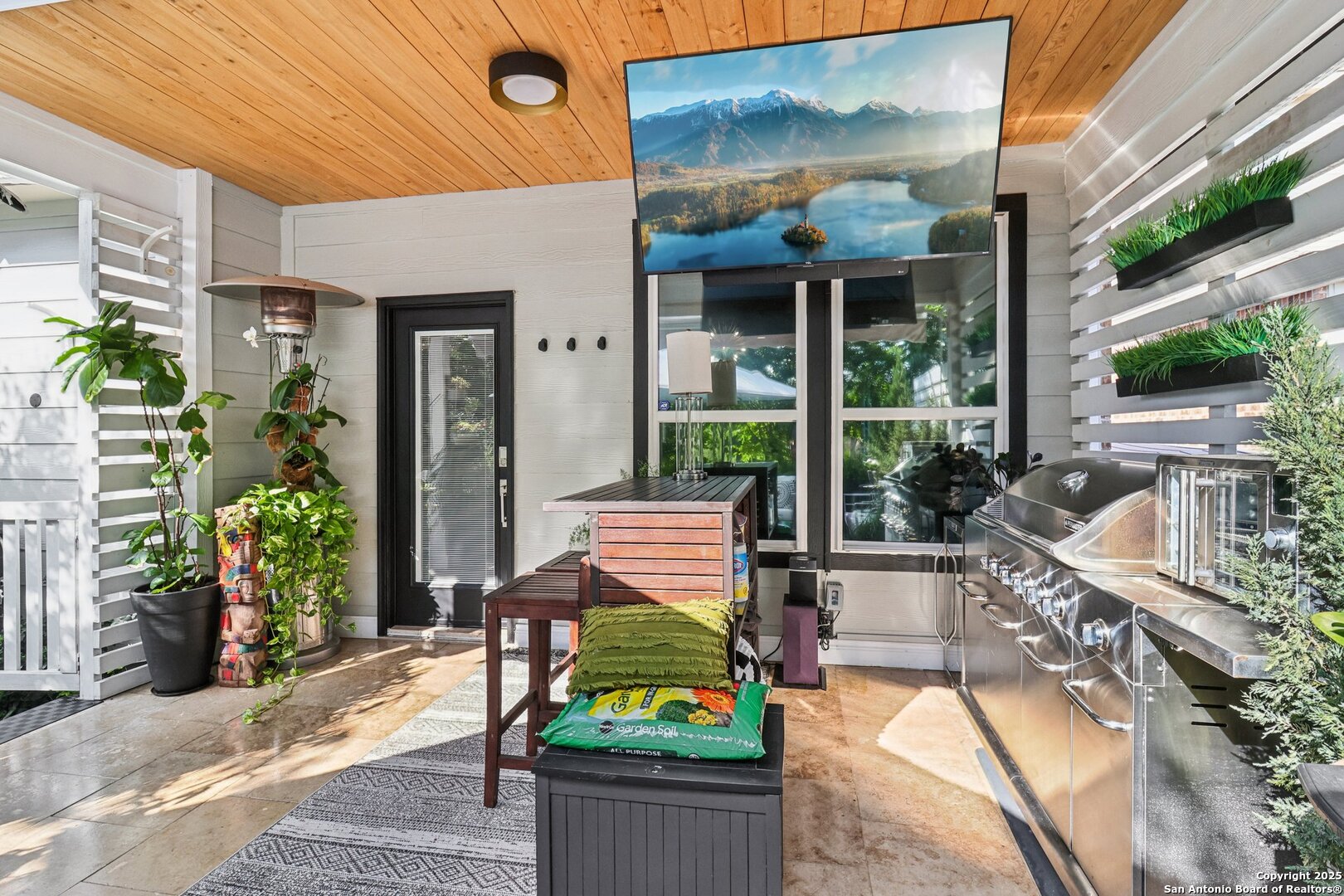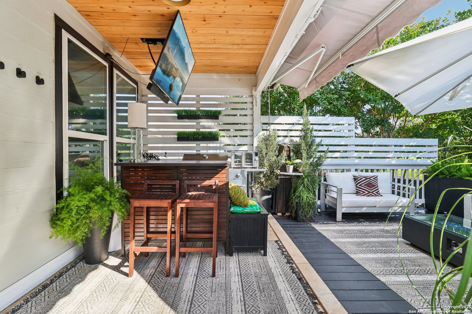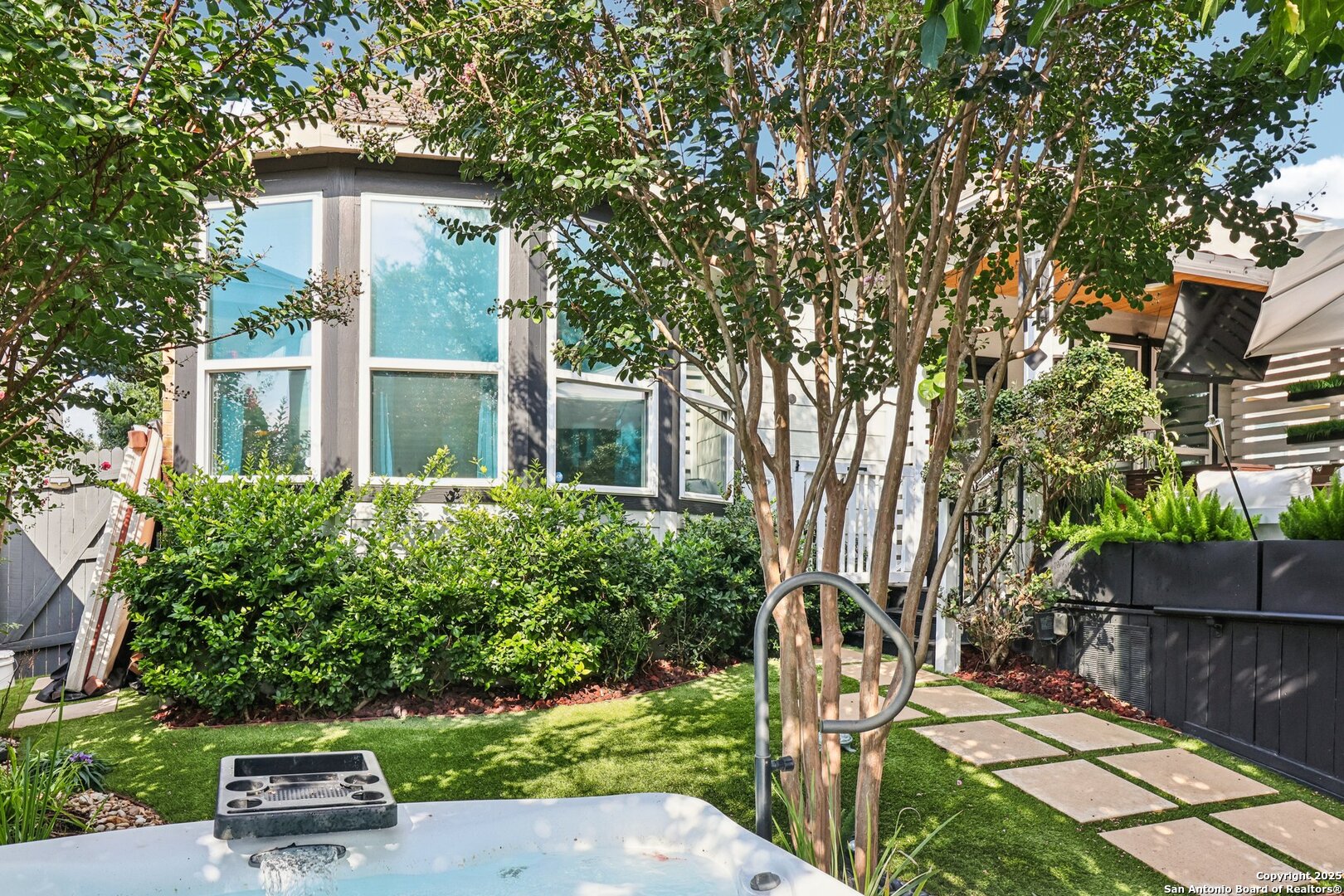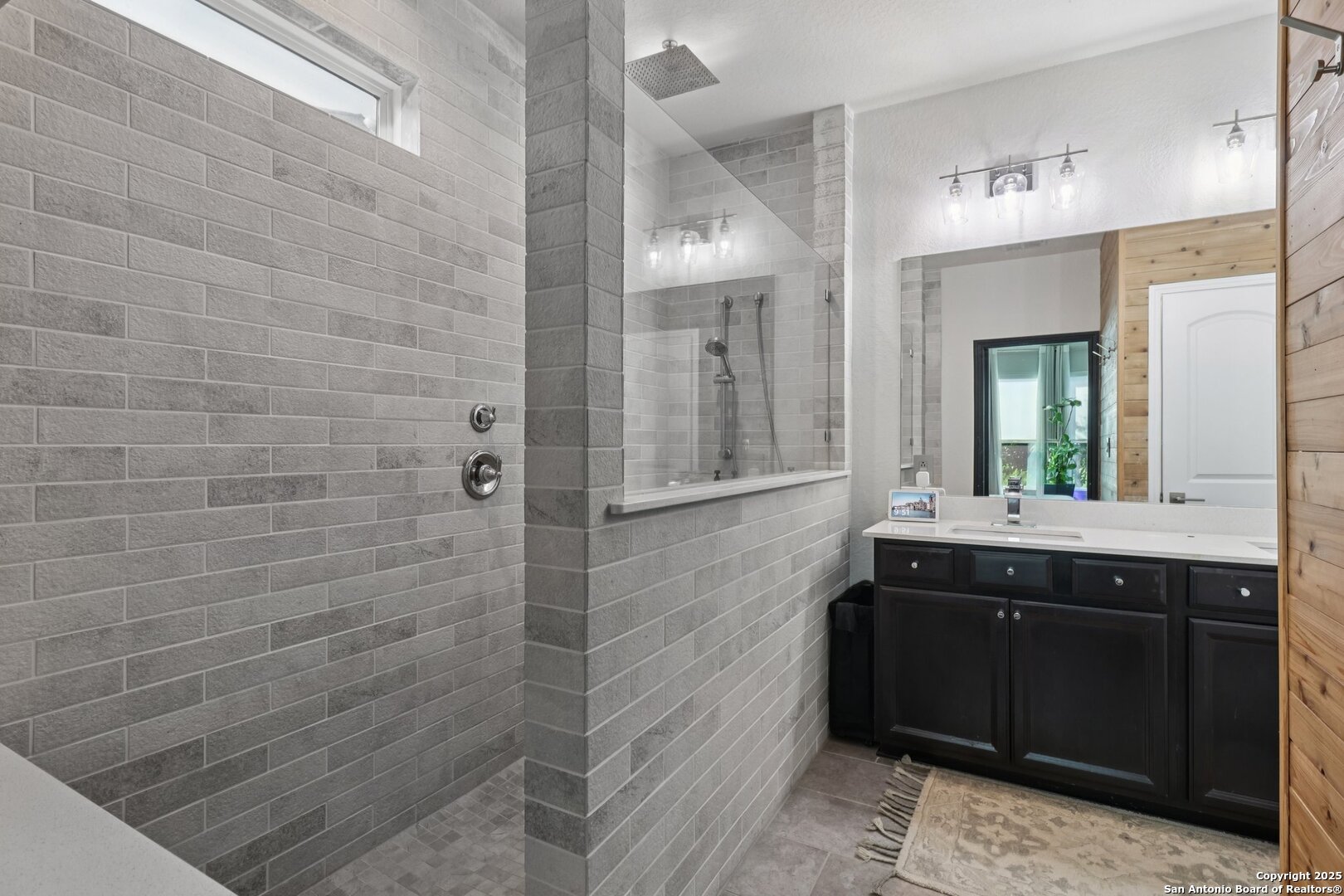 Wow! This home has been beautifully enhanced at every turn! Starting with irresistible curb appeal that features a beautiful insulated garage door, concrete block walk-way, front porch with wood ceiling and heavy wrought iron and glass front door. Step inside to hardwood flooring, gorgeous light fixtures throughout, wood and tile wall treatments and beautiful window coverings! The kitchen has a gas cooktop, extended cabinetry with quartz counter tops, oversized island with waterfall edge, double ovens, 2 wine refrigerators, under-counter lighting and walk-in pantry. The Study has glass french doors. Split Primary bedroom has lovely pendant lights and bath with double vanity & huge walk-in shower. All closets in the home have been cedar lined. Bedrooms 2 & 3 have upgraded, designer carpet. Step out back to a little bit of paradise! Outdoor living at it's finest, with covered, private patio extending to a large deck. The patio has a remote controlled awning for extra shade, stainless steel gas grill, wine fridge and TV. In the artificial turfed backyard you'll find a hot tub and gorgeous landscaping all on a greenbelt for added privacy! Great location, Boerne School district, convenient access to IH 10 and shopping & dining at La Cantera and The Rim.