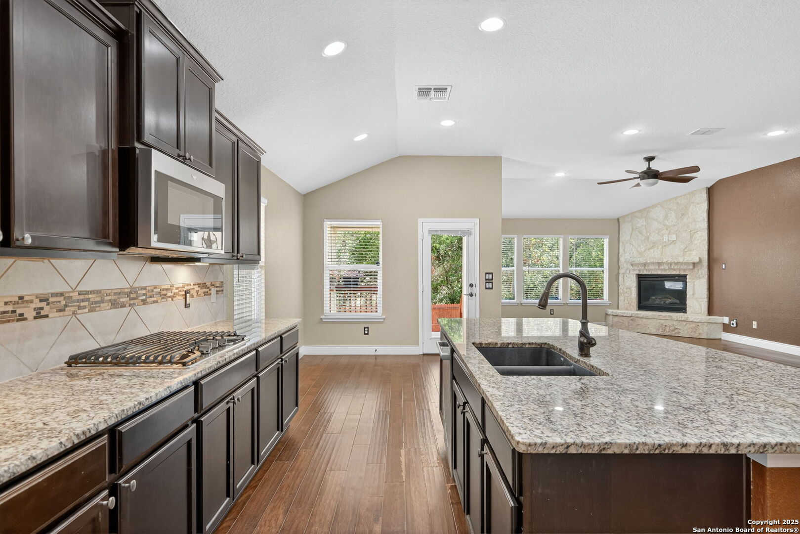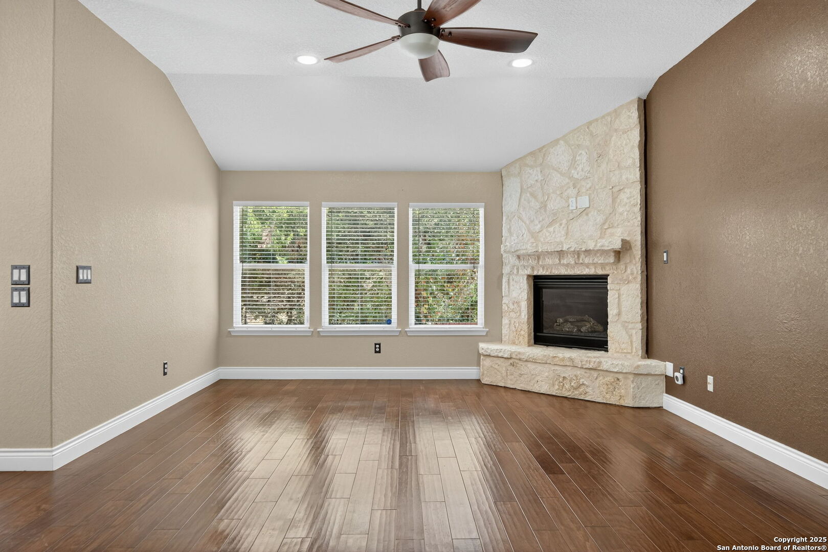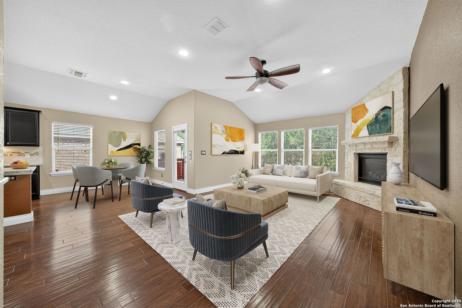 Hill Country Charm Meets Modern Convenience in Gated Stonehaven Enclave Experience the perfect balance of privacy, comfort, and style in this beautifully maintained 3-bedroom, 2-bathroom home nestled in one of Boerne ISD's most desirable gated communities. With no back neighbors and peaceful greenbelt views, this home offers a serene retreat without sacrificing location or convenience. Step inside to discover a light-filled, open-concept layout with soaring ceilings, elegant wood flooring, and a striking gas fireplace that creates an inviting focal point. The spacious kitchen and dining areas flow seamlessly together - ideal for gatherings, holidays, and everyday living. Unwind in the private owner's suite featuring a cozy bay window and spa-inspired shower, or enjoy the flexible front office and formal dining space that easily adapts to your lifestyle. This home has been thoughtfully updated for peace of mind, with a 2025 Rheem water heater, 2025 Bosch dishwasher, new thermostat, ADT security system, and 8 exterior cameras. Step outside to a backyard designed for entertaining and relaxation, where mature landscaping, a covered patio, and true privacy with no rear neighbors make it the perfect place to unwind. Plus, you're just steps away from the neighborhood's community pool, playground, and scenic trails. Offering the best of Hill Country living with easy access to San Antonio's shopping, dining, and entertainment - this home delivers lifestyle and location in one exceptional package. Come see why this one stands out - schedule your private showing today!