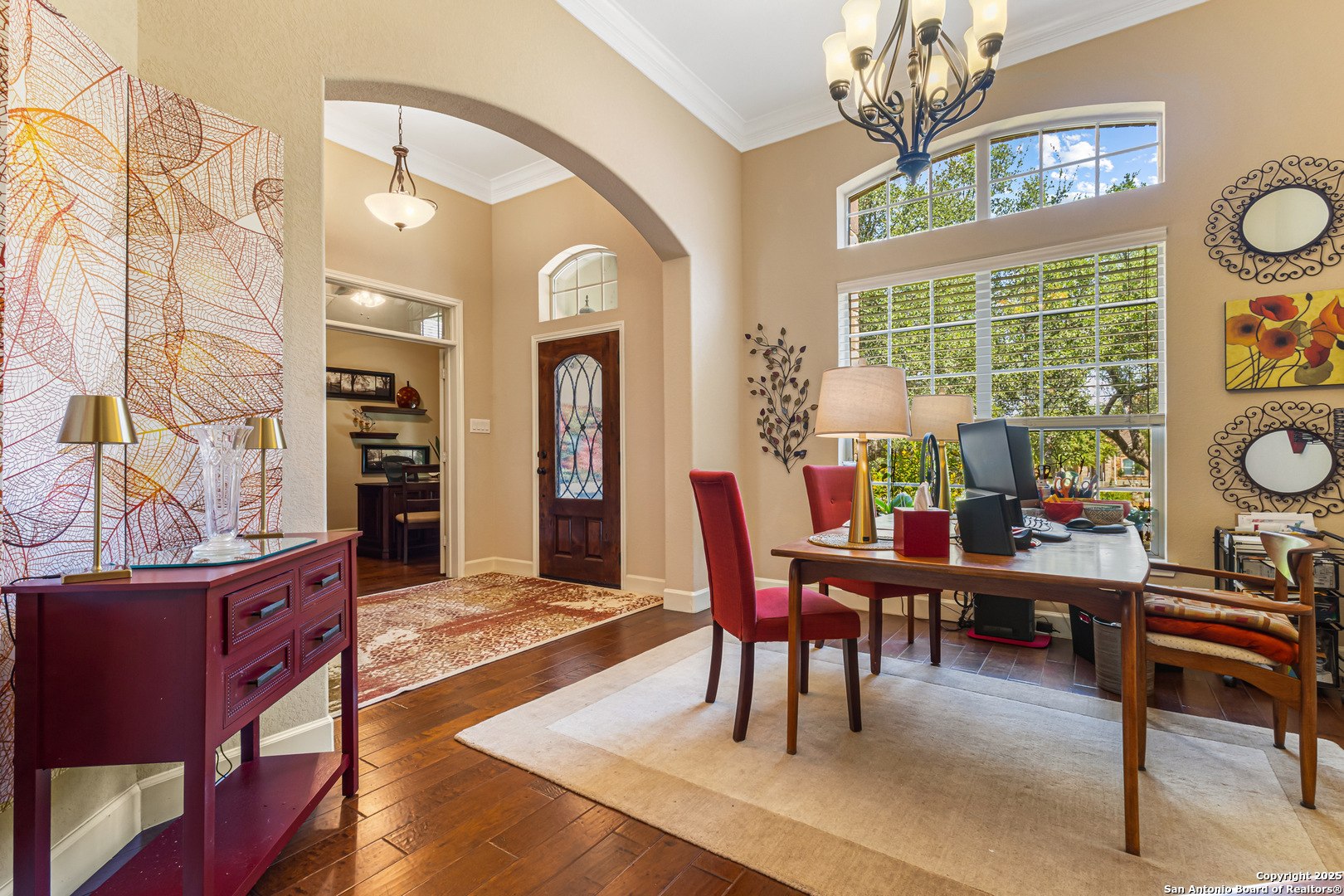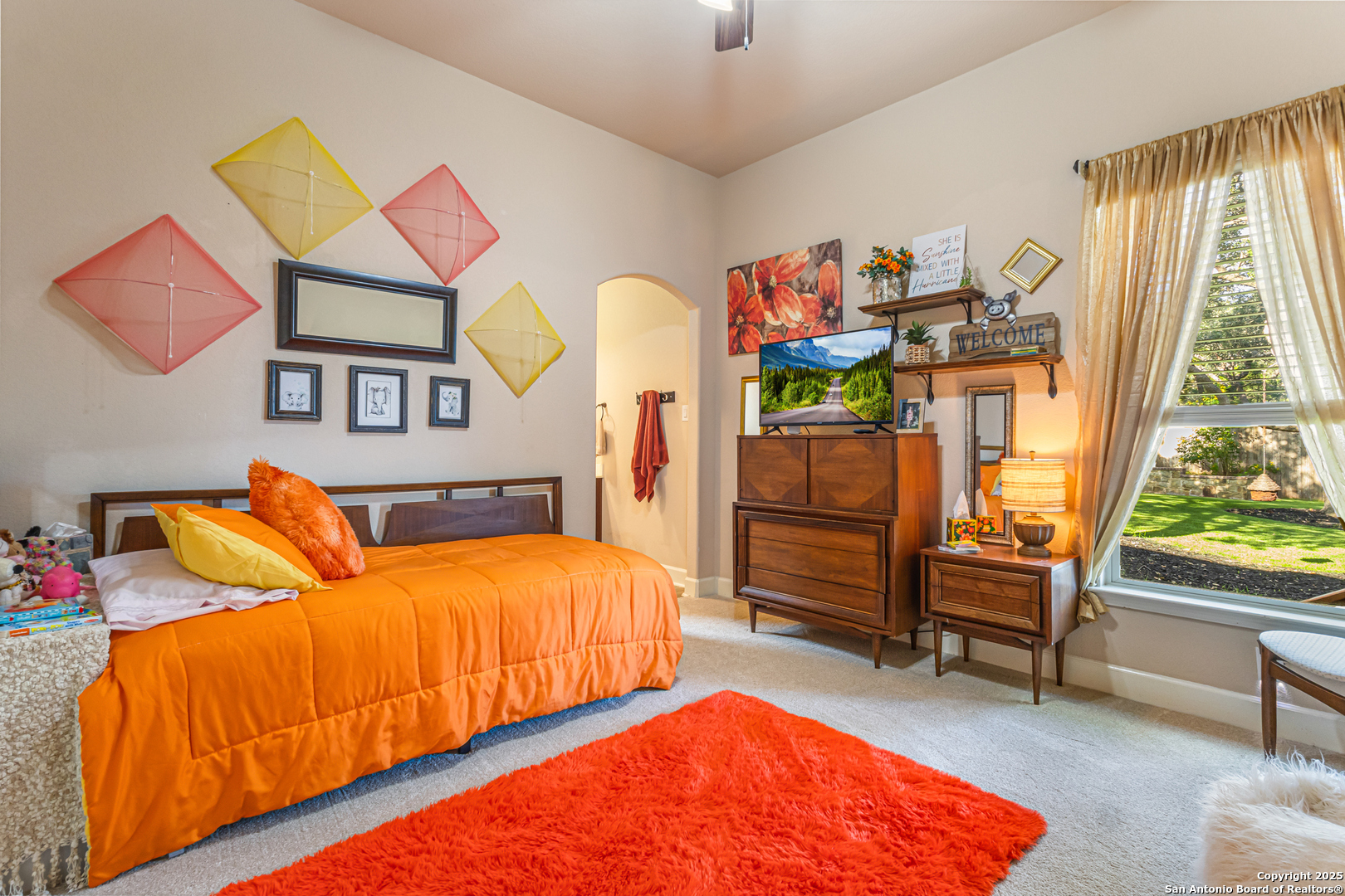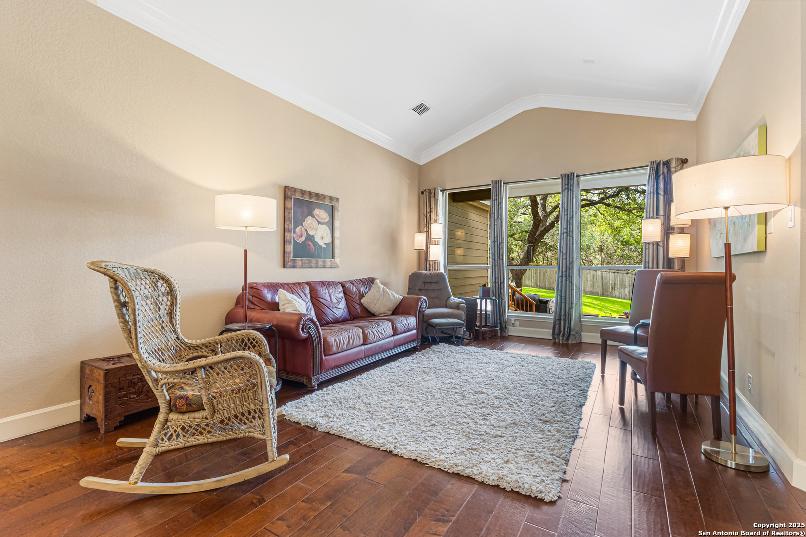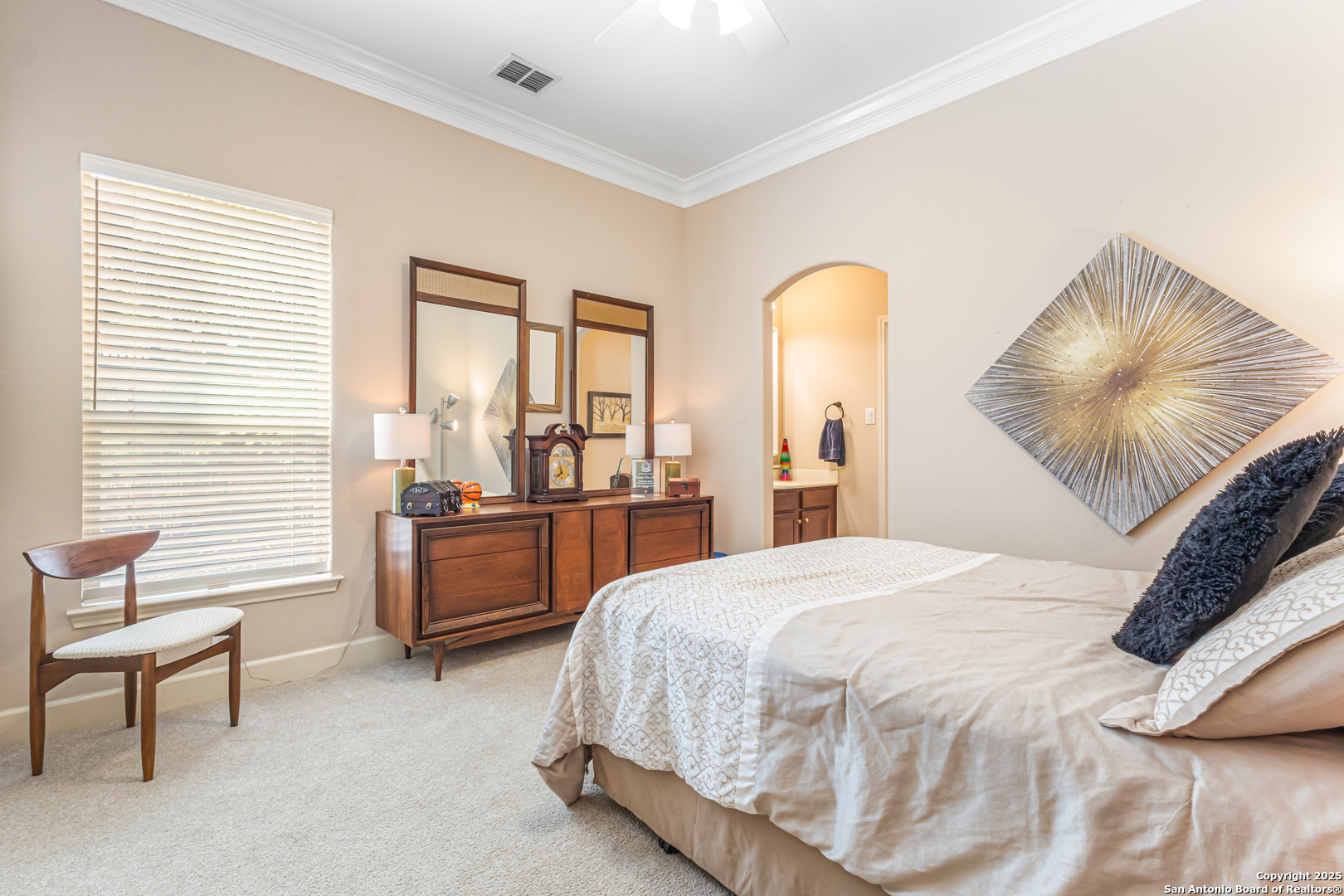 Beautiful 2-story stone and stucco Texas Hill Country home on a spacious 0.56-acre lot in the gated community of Canyon Ranch Estates! Located within highly sought-after Comal ISD, with zoning to Pieper Middle School and Pieper High School. Designed for multigenerational living, this home offers 5 bedrooms (4 downstairs), 4 full bathrooms, and a versatile upstairs flex space that can serve as a second primary suite, game room, or media room. The inviting interior features high ceilings, warm wood flooring, and an open floor plan with 3 living areas and 2 dining areas all on the main level-perfect for gatherings and entertaining. A private study with doors provides a quiet space for working from home. Step outside to enjoy the mature shade trees and a multi-level deck ideal for barbecues, relaxing, or entertaining guests. Extra storage is easy with the included backyard shed. Additional features include a sprinkler system, water softener plumbing and 1 year prepaid American Home Shield Residential Home Warranty. Make this home yours today!