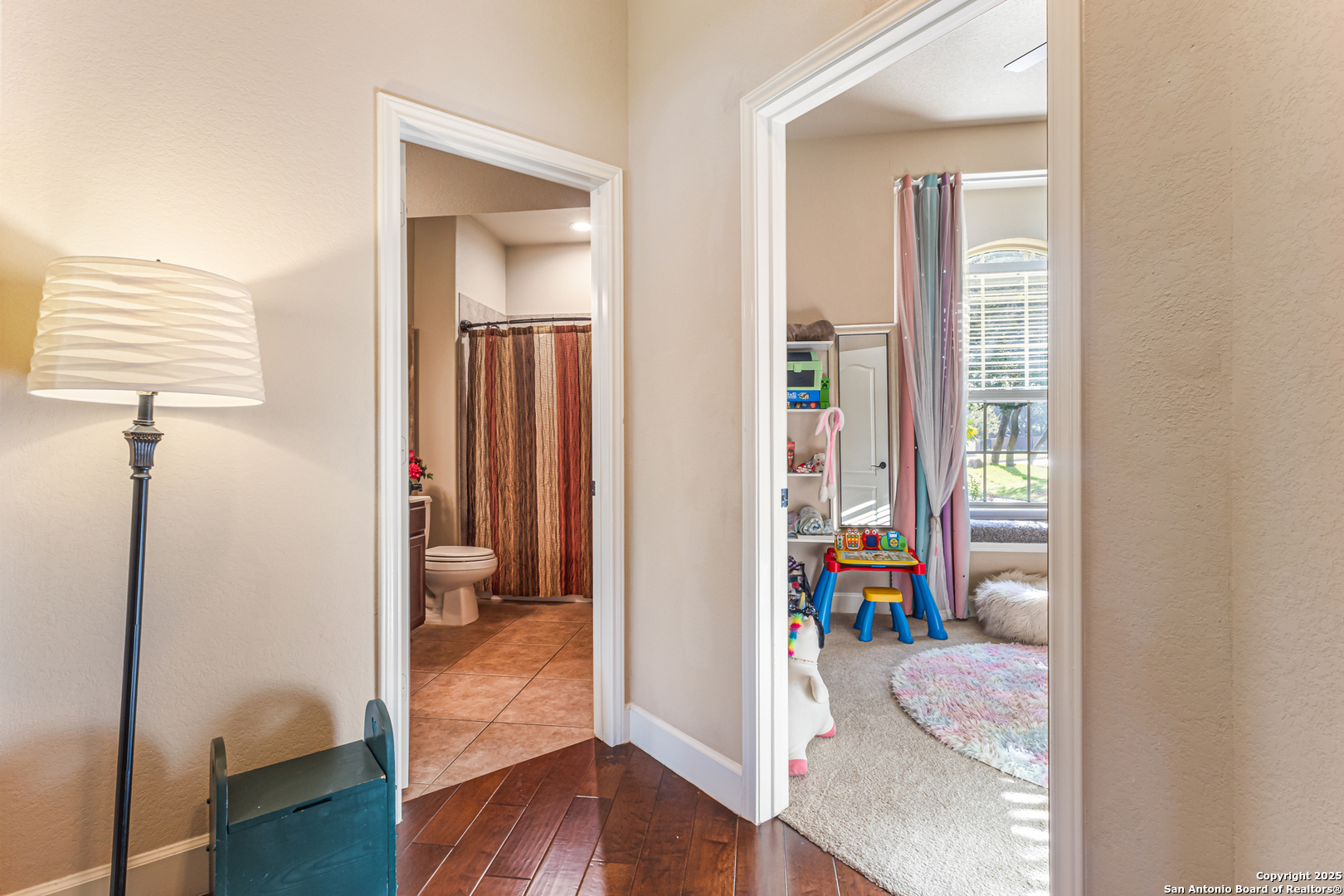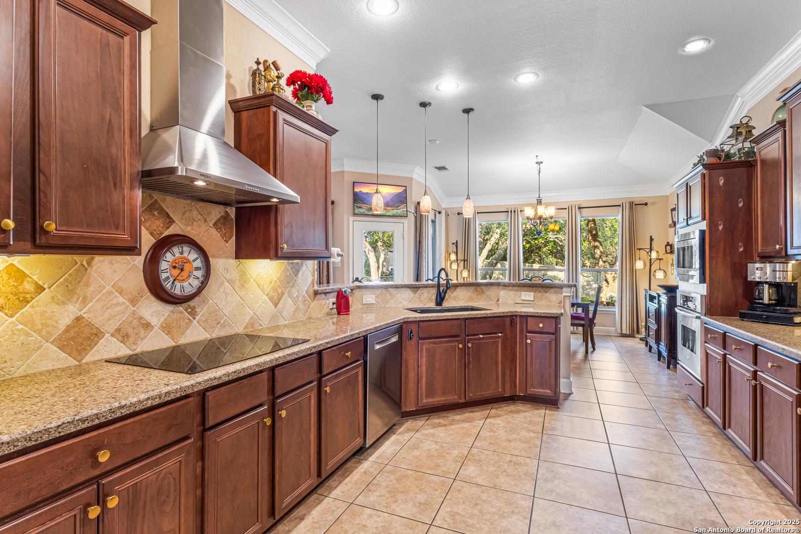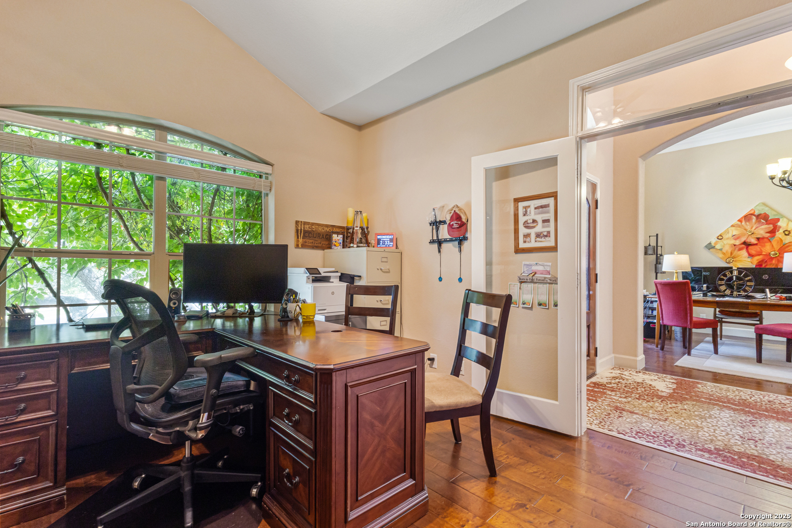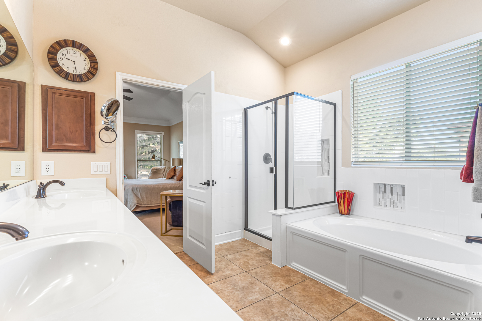 Beautiful 2-story stone and stucco Texas Hill Country home on a spacious 0.56-acre lot in the gated community of Canyon Ranch Estates! Located within highly sought-after Comal ISD, with zoning to Pieper Middle School and Pieper High School. Designed for multigenerational living, this home offers 5 bedrooms (4 downstairs), 4 full bathrooms, and a versatile upstairs flex space that can serve as a second primary suite, game room, or media room. The inviting interior features high ceilings, warm wood flooring, and an open floor plan with 3 living areas and 2 dining areas all on the main level-perfect for gatherings and entertaining. A private study with doors provides a quiet space for working from home. Step outside to enjoy the mature shade trees and a multi-level deck ideal for barbecues, relaxing, or entertaining guests. Extra storage is easy with the included backyard shed. Additional features include a sprinkler system, water softener plumbing and 1 year prepaid American Home Shield Residential Home Warranty. Make this home yours today!