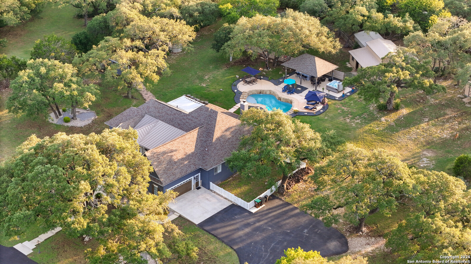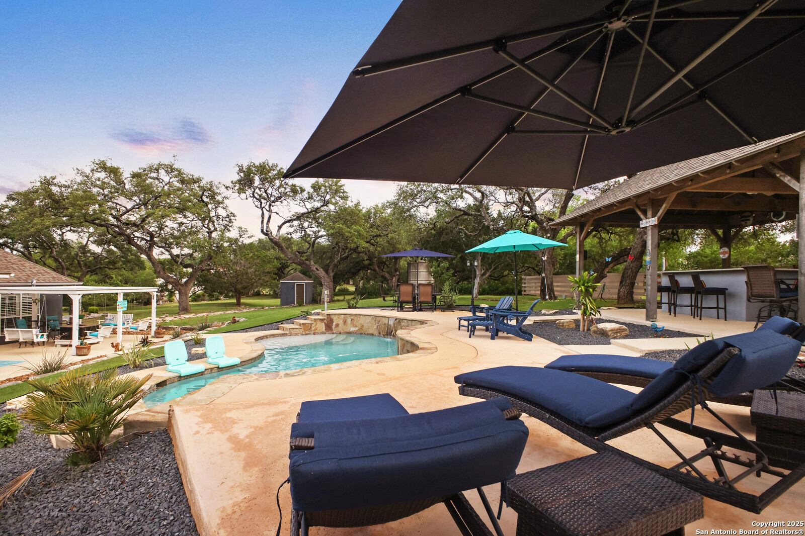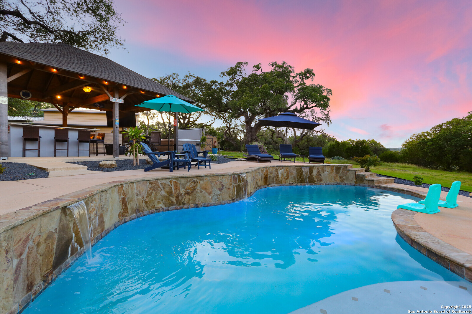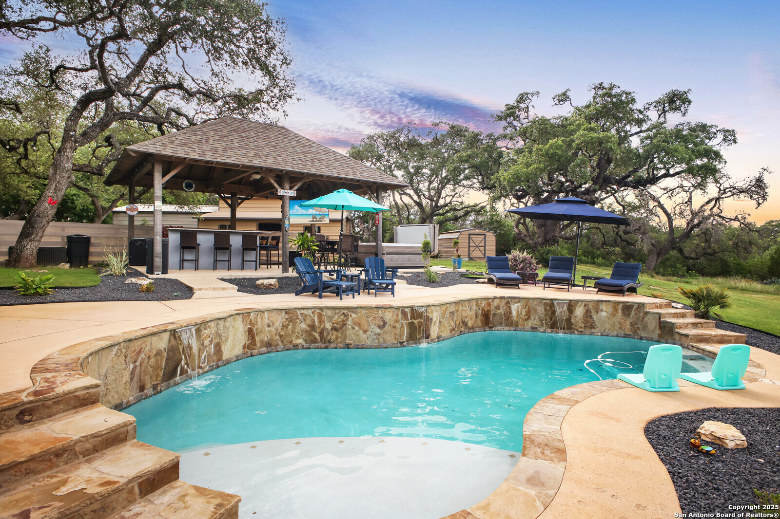 Welcome to your private Hill Country retreat in the gated community of Woodland Hills North! Situated on over 2 acres, this stunning one-story home offers the perfect blend of elegance, comfort, and functionality. With 4 spacious bedrooms, true 4 baths which one is a jack and jill, and a flexible floor plan that includes a 21 x 16 room above the garage, this home is ideal for both everyday living and entertaining, and even has a true study or 5th bedroom. The property exudes pride of ownership with meticulously maintained grounds, a picture-perfect pool with breathtaking views, and a circular driveway that provides ample parking for guests. Equestrian enthusiasts will love the 2+ stall horse barn and fenced pasture-a rare find in this area! Enjoy the tranquility of a gated neighborhood with a true sense of privacy, while still being conveniently located near shopping, dining, and near Timberwood Park. This is a rare opportunity to own a piece of the Hill Country lifestyle-homes like this don't come along often! Jacuzzi spa is excluded.