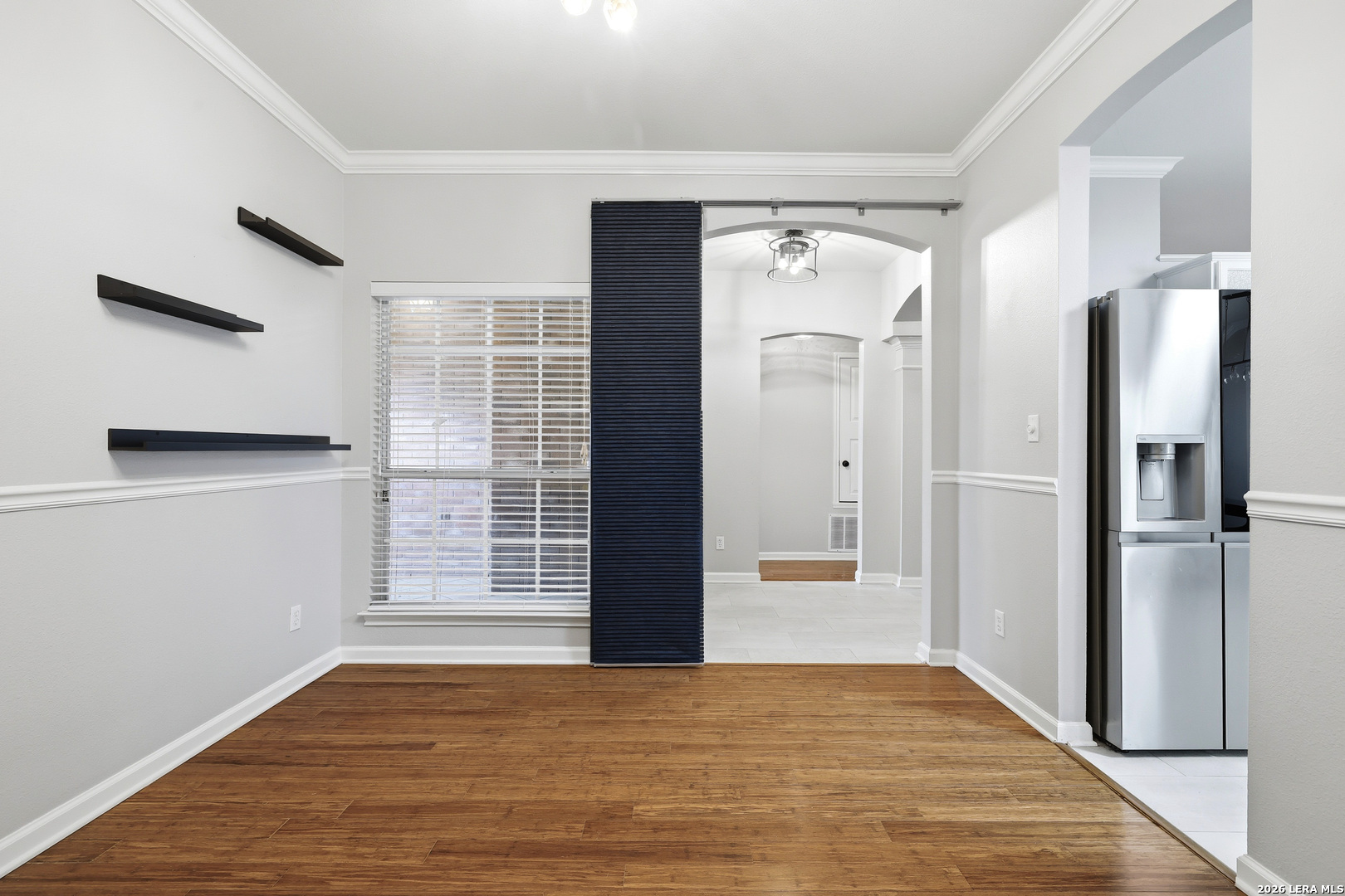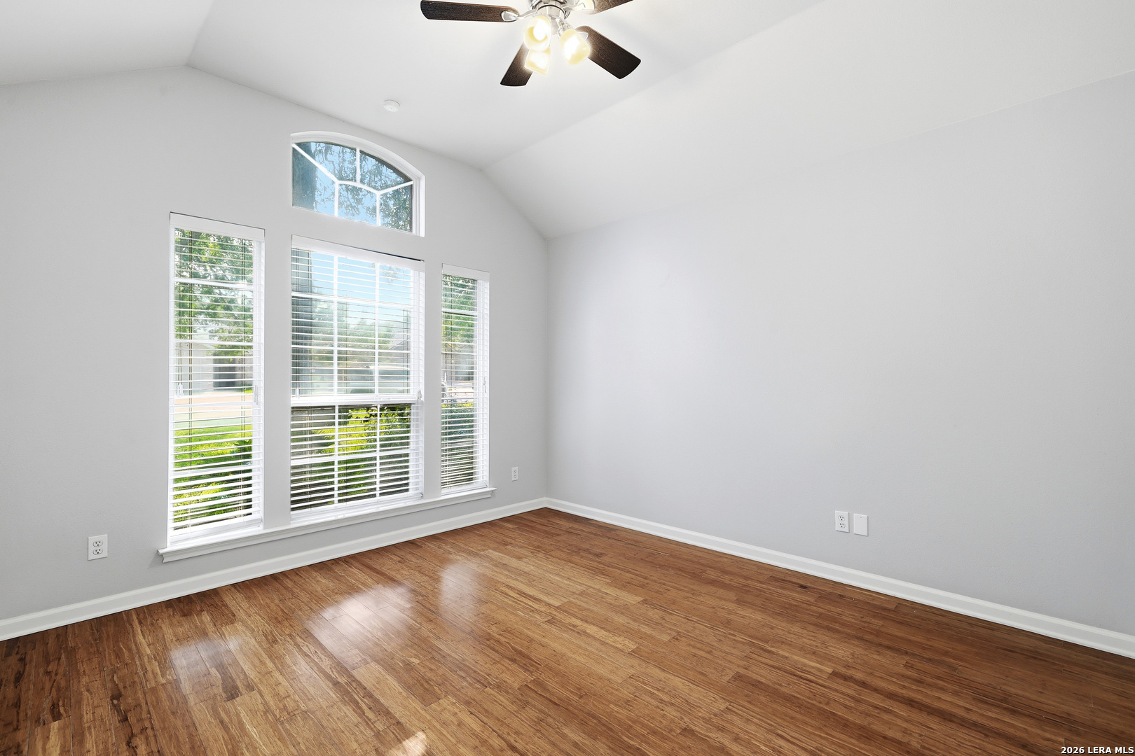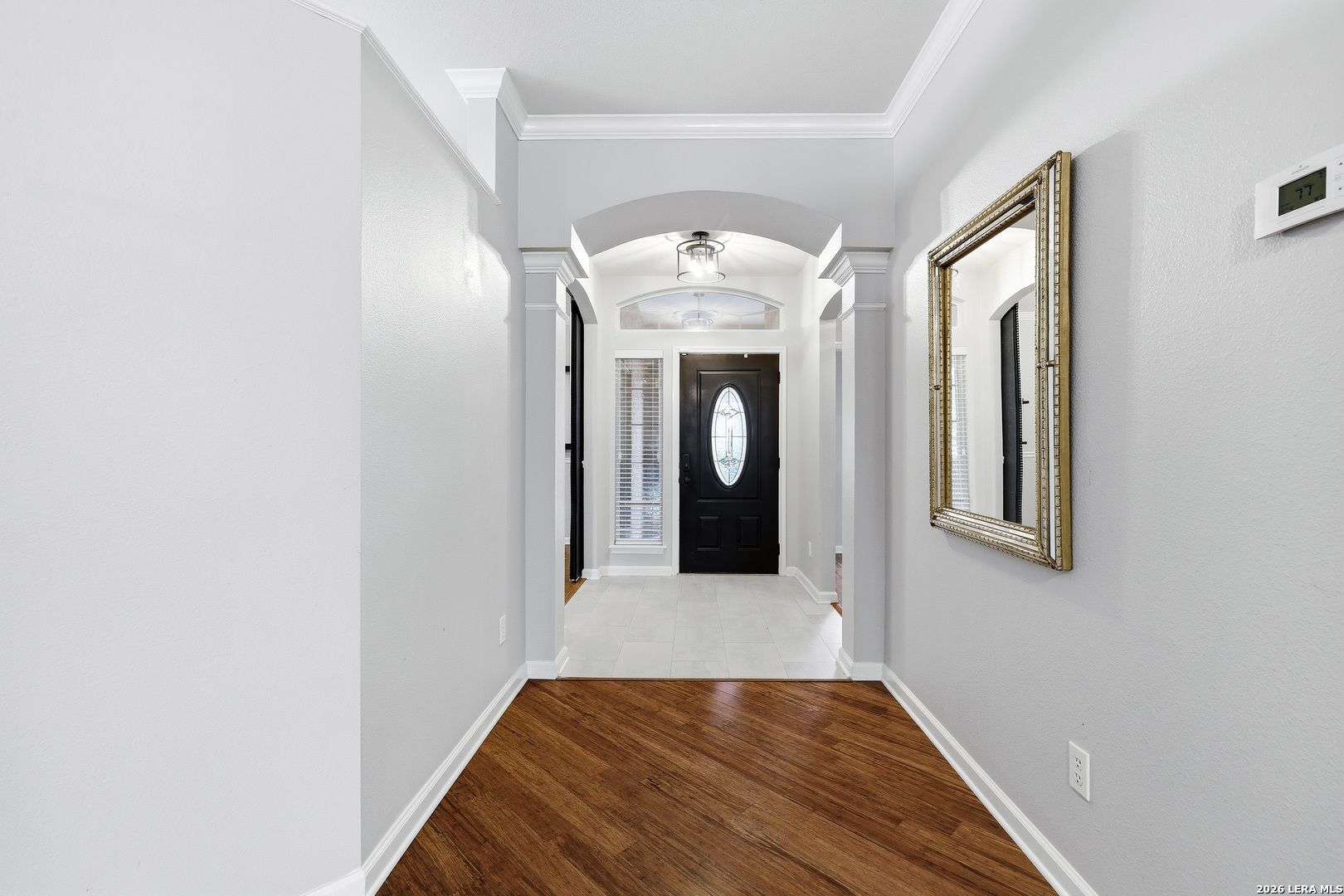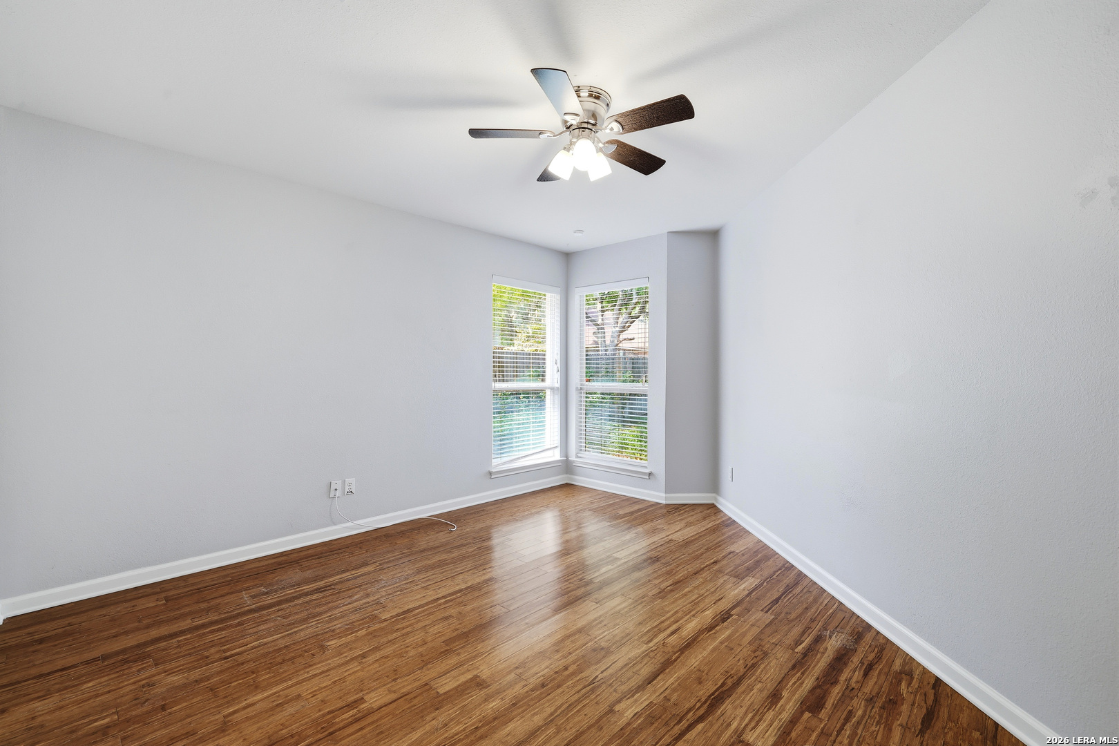 Welcome to this beautifully maintained 3-bedroom, 2-bath single-story home nestled in the highly sought-after gated community of Berry Creek. Thoughtfully designed for both comfort and style, this home offers a warm and inviting atmosphere from the moment you step inside the large entryway. The spacious family room serves as the heart of the home, featuring a cozy wood burning fireplace framed by modern stucco accents and a stylish accent wall-perfect for relaxing or entertaining. Elegant bamboo wood flooring, installed just four years ago, flows throughout the main living areas, while durable ceramic tile enhances all wet spaces. Additional upgrades include 2-inch wood blinds, updated crown molding, contemporary light fixtures, and refined finishes throughout. The private primary suite provides a peaceful retreat, complete with a generously sized ensuite bathroom featuring a seamless glass shower and a large walk-in closet. The home's functional layout also includes a convenient garage entry leading into an oversized pantry and laundry room with ample shelving for storage and organization. The kitchen blends practicality with style, offering stainless steel appliances, granite countertops, tile flooring, and a breakfast bar ideal for casual dining or hosting guests. Step outside to enjoy a spacious backyard designed for both relaxation and entertaining, featuring a large patio, mature trees. A full sprinkler system services both the front and back yards. The front yard features decorative stone. A 10x10 storage shed, with wood floor provides valuable additional space for hobbies or storage. Additional peace of mind comes with a roof inspection completed in 2023. Conveniently located just off FM 3009, this home offers an easy commute to Randolph Air Force Base and quick access to nearby shopping, dining, and entertainment. It is also served by the highly regarded Schertz-Cibolo-Universal City ISD. Enjoy being just a short drive from popular destinations such as New Braunfels, Gruene, Canyon Lake, the Guadalupe River, and Natural Bridge Caverns. Don't miss the opportunity to make this exceptional home yours!