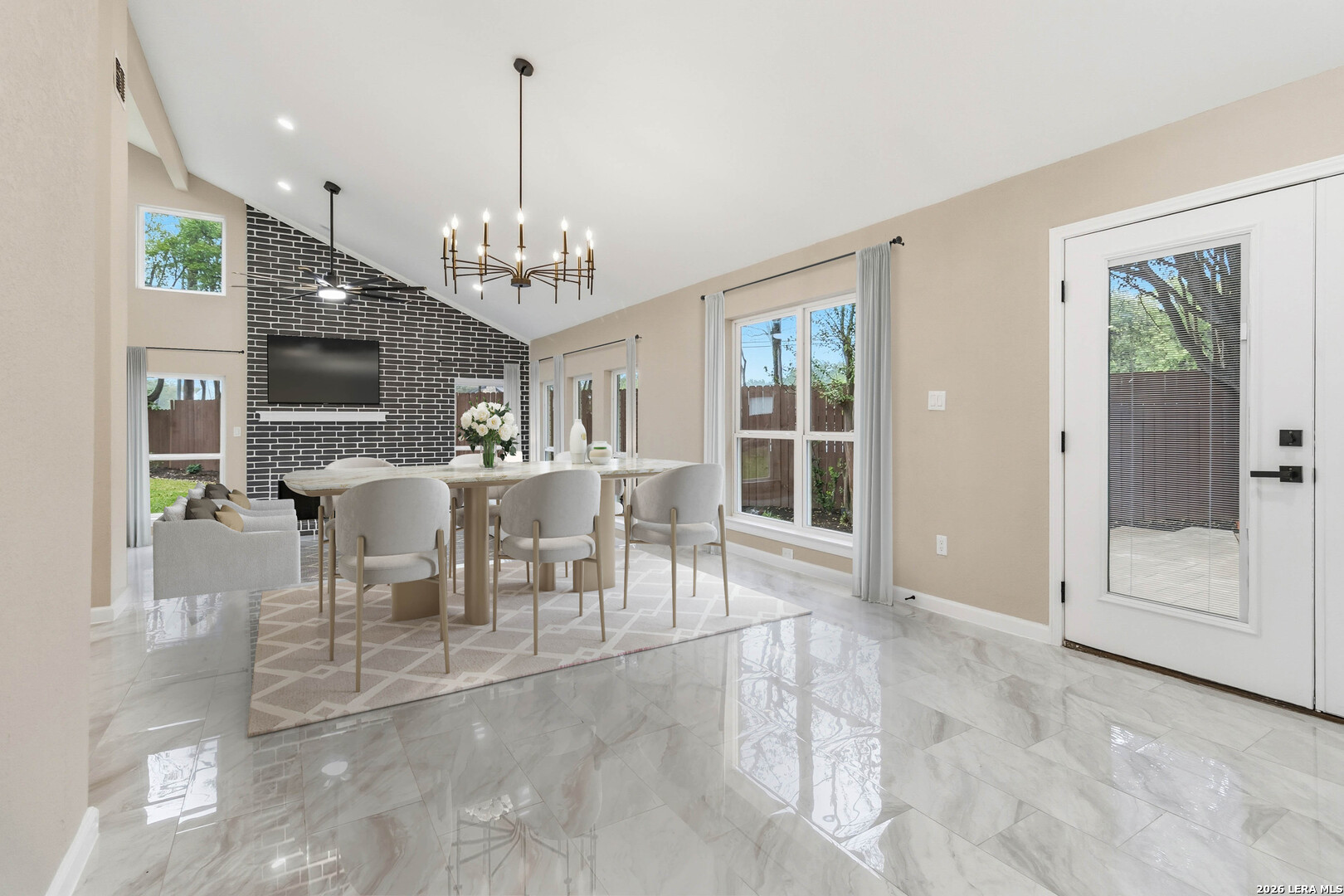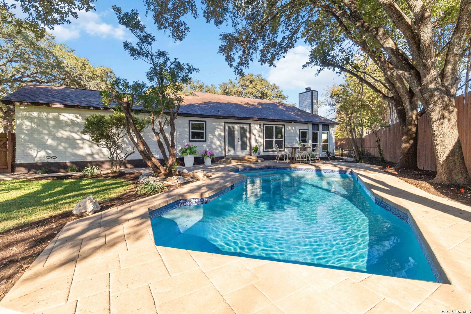 This residence has been completely reimagined through a full-scale renovation, fresh exterior paint, and a new roof, all of which signal the level of quality found throughout the home. Inside, new flooring, refined finishes, and a cohesive design palette create a polished, move-in-ready interior. The bathrooms have been fully remodeled with contemporary materials and thoughtful detailing. Situated on an oversized lot in an established community, this home delivers the rare combination of luxury finishes, distinctive design, and generous indoor-outdoor living. The heart of the house is the designer kitchen, featuring custom emerald-green cabinetry, modern fixtures, and a layout designed for both everyday living and upscale entertaining. A living room with architectural steps anchors the living area, a sought-after design element that adds dimension, sophistication, and a curated, on-trend feel. A fireplace and wet bar further enhance the home's entertaining appeal.- Fully renovated single-story home. -Approx. 2,064 sq ft | 3 Bedrooms | 2 Bathrooms -Large 0.34-acre lot -Private backyard with pool -New kitchen cabinetry, paint, and appliances -New roof -New interior and exterior paint -All-new flooring throughout -Fully remodeled bathrooms with modern finishes -Renovated fireplace and wet bar -Repainted classic brick exterior with attached fresh-floor garage