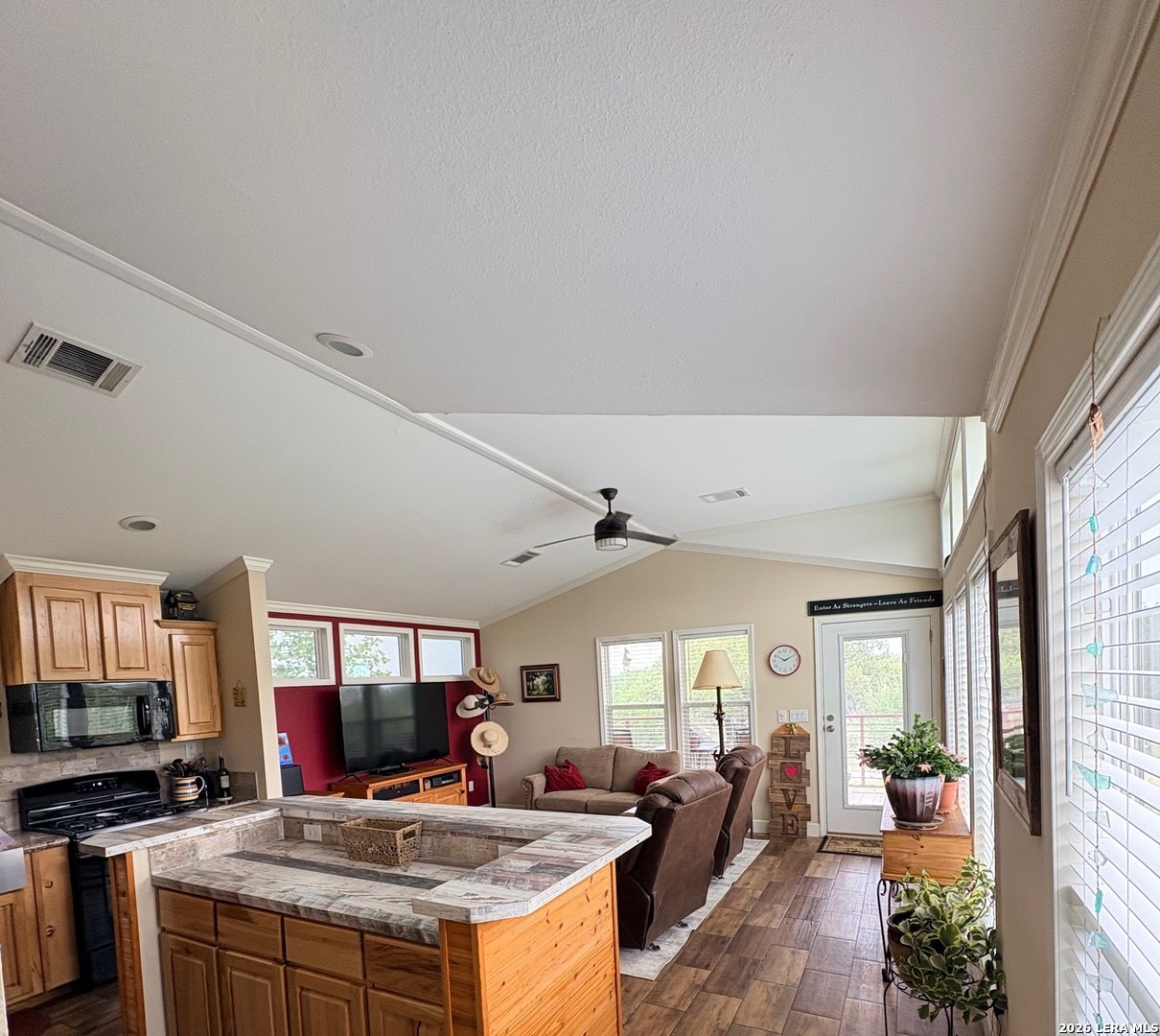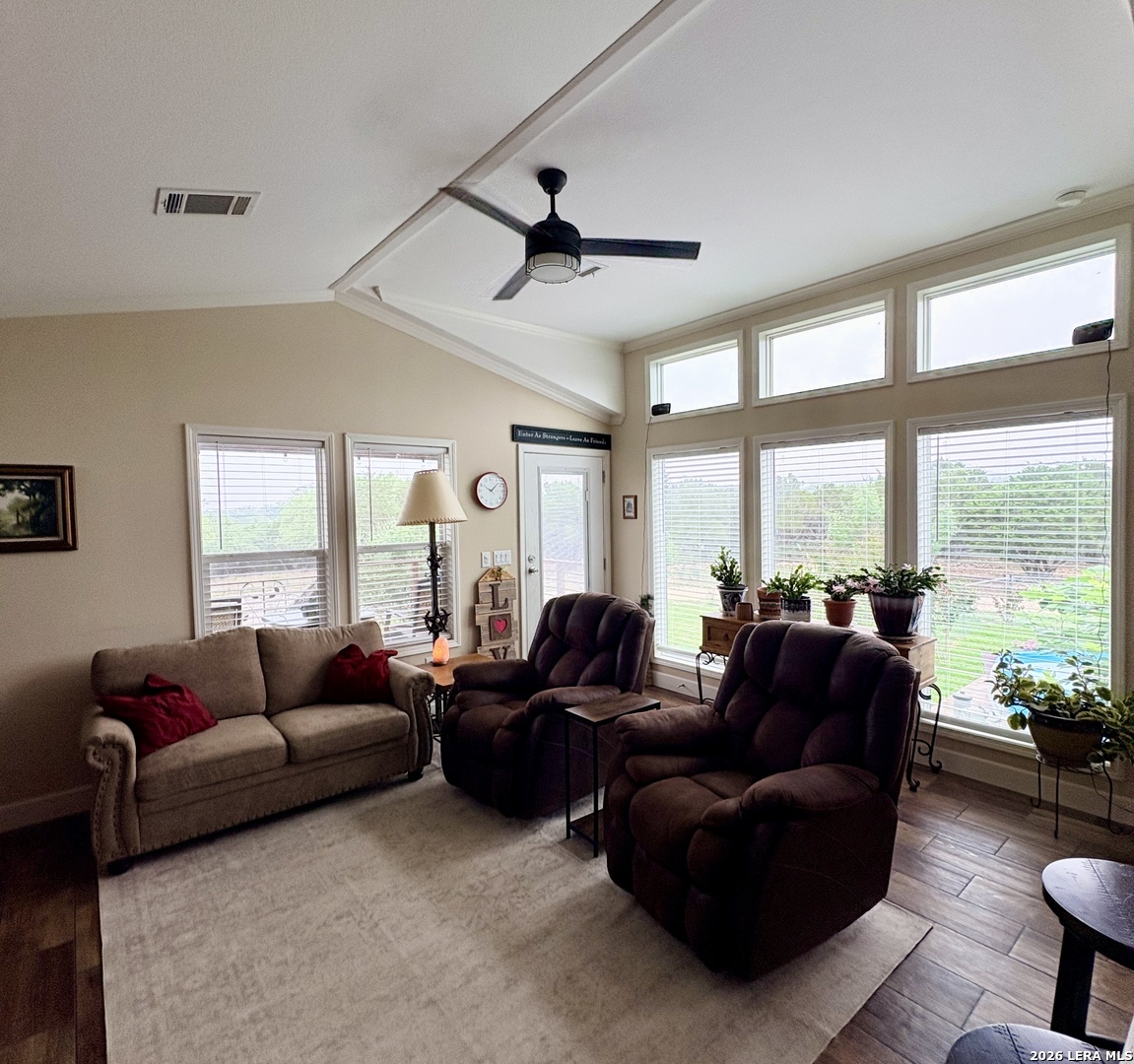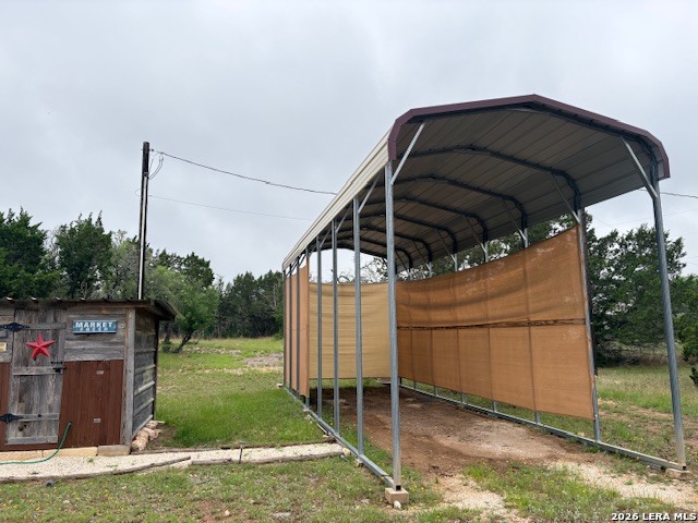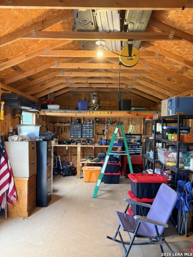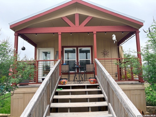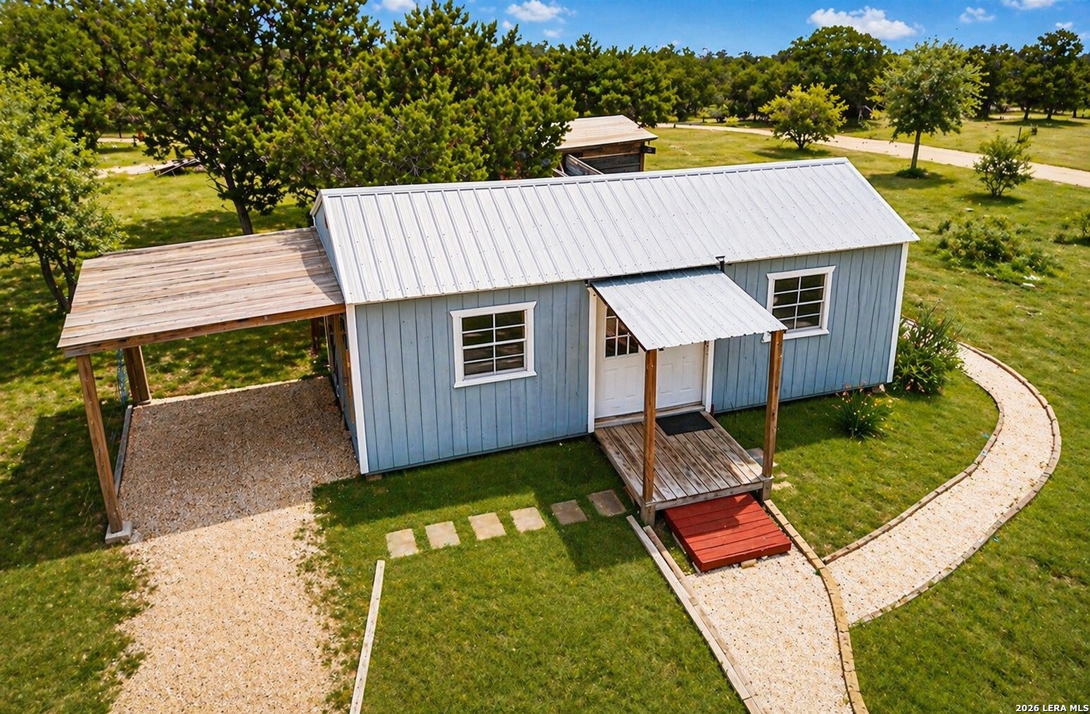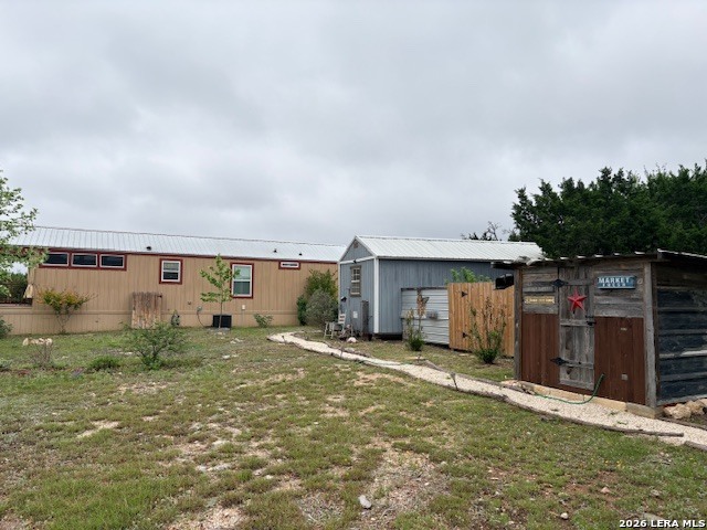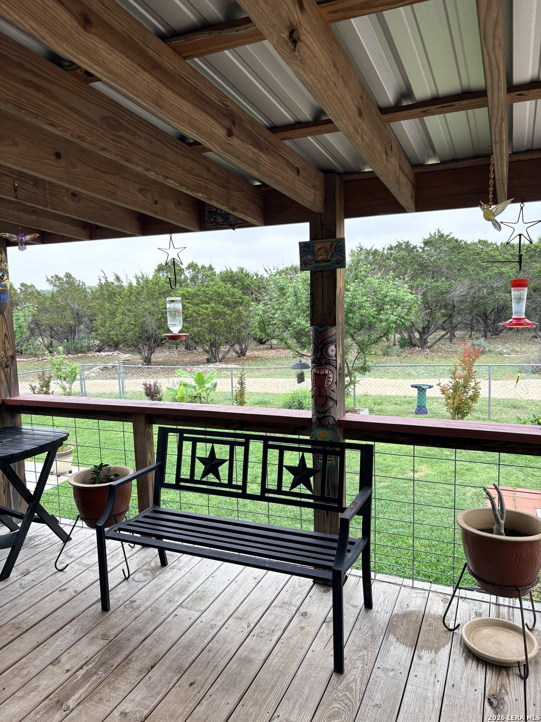 Escape to your own private retreat on 3 beautiful acres in Oak Hollow! This well-cared-for manufactured home offers a peaceful setting with mature trees, open space, and plenty of room to enjoy the outdoors. Relax on one of two decks, cool off in the above-ground pool, or start your dream garden with ready-to-use beds. Inside, the open floorplan is filled with natural light and features a spacious kitchen complete with a large island for eat-in style dining, abundant cabinetry, and an oversized metal sink. The home includes 2 bedrooms, 1 bathroom, and comes fully equipped with a refrigerator, propane stove, and stackable washer and dryer. The property is packed with functionality, including a 18x12 ft workshop/storage building with electricity, covered carport with extra storage space, and a large covered space for RV or boat parking. Additional highlights include a private well, chain link fencing around front area of the home, and a durable metal roof - just 5 years old. No HOA!! Located in Bandera ISD-this move-in ready property offers both comfort and flexibility. Come see this property TODAY!