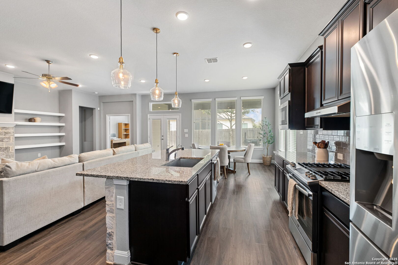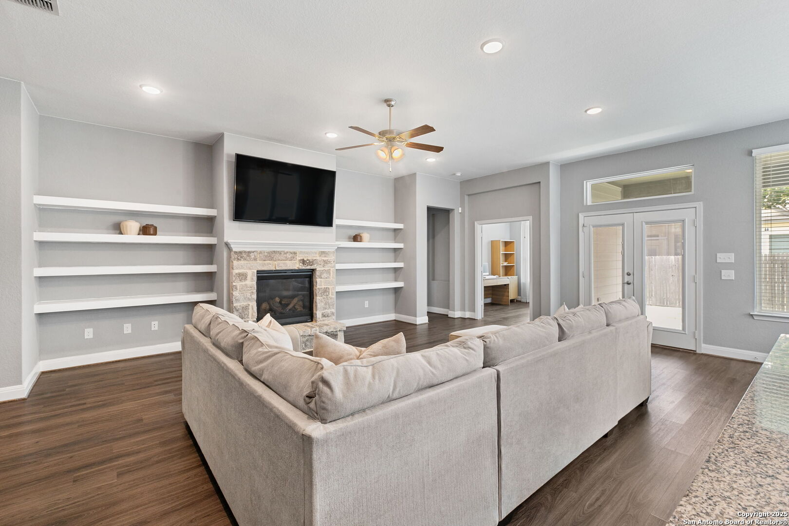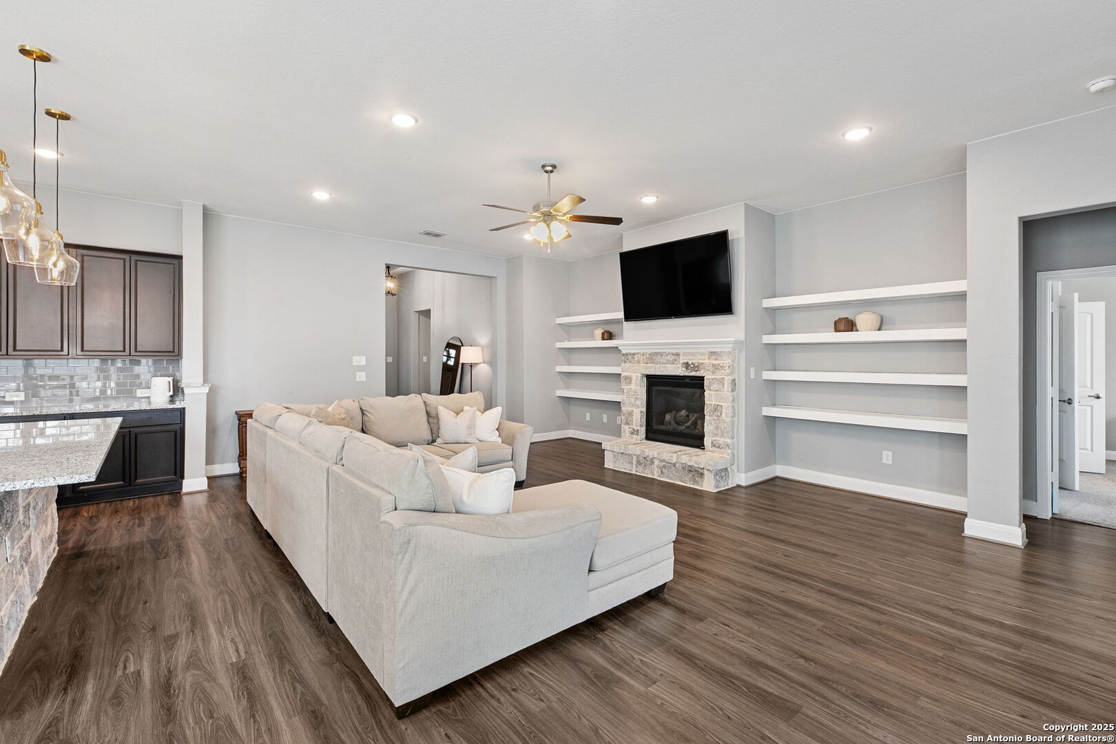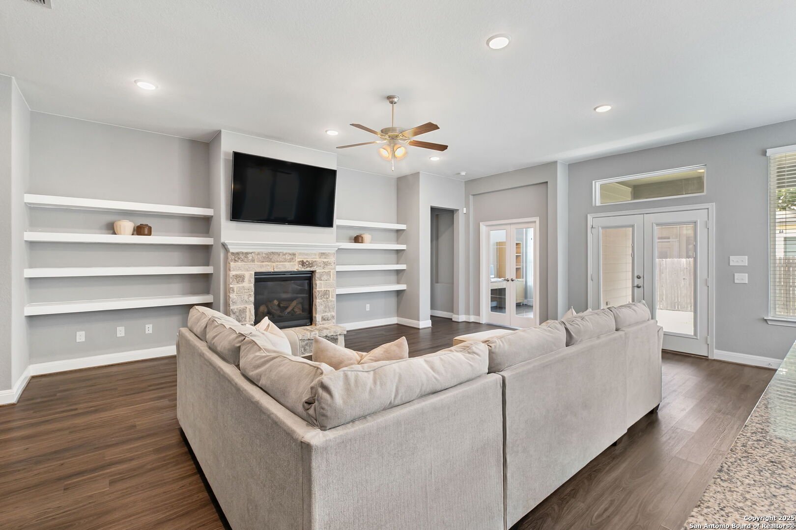 Beautiful, Bright, and Beyond compare, is what you walk into at this thoughtfully designed and stunning Cheshmar Home. With the added accent shelving and stylish design you get upgrades that make this home worth raving about and creates character and individuality. The cozy and inviting aspects come with the feeling of "there's no place like home." But before you relax for the day... leave your coat, shoes, or bags at the easy accessible mud space or take a turn and leave in the laundry. The ample living space leaves room to create any furniture design that boasts your taste. Anchoring the open-concept living space is the stunning focal point fire place adding year round luxurious detail and an inviting atmosphere. Step into a breathtaking open-concept kitchen designed for effortless entertaining and everyday living. The oversized island, with its gleaming countertops and stylish seating, serves as the social centerpiece, inviting guests or family to gather while you cook. Abundant natural light floods the space, accentuating the high-end finishes and creating a bright, welcoming atmosphere. With a seamless flow into the living and dining areas, you'll never be separated from the conversation. This is more than a kitchen-it's the heart of a home built for making memories. The primary bedroom privately situated at the back of the home has a spa like ensuite with separate (not dual) vanities, oversized soaking tub, large walk-in shower, and generously sized walk-in closet for you wardrobe, storage or organizing options. Location, Location, Location, is the staple of all real estate and this home checks the boxes. Easy access to IH-35, just minutes from Randolph Air Force Base, and Fort Sam Houston. highly rated schools and sought-after SCUCISD schools: John A. Sippel Elementary, Schlather Intermediate, Dobie Junior High, Steele High School, and the new School of Science and Technology. Shopping nearby includes Schertz Station, H-E-B Plus, Walmart Supercenter, Parkway Village Shopping Center, and The Forum at Olympia Parkway. Go North minutes to New Braunfels, Gruene, and the Guadalupe or Comal river. Just another hop and skip to South Austin. Take a trip South and see Downtown San Antonio, the Pearl District, River walk and more. This is a must see!